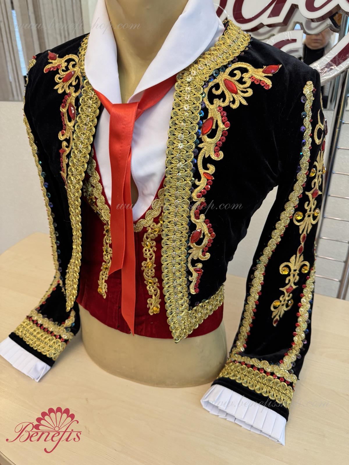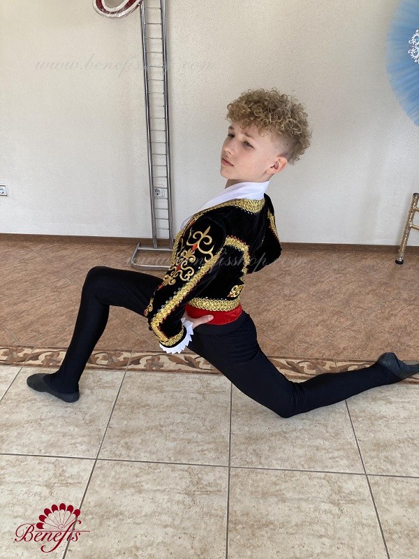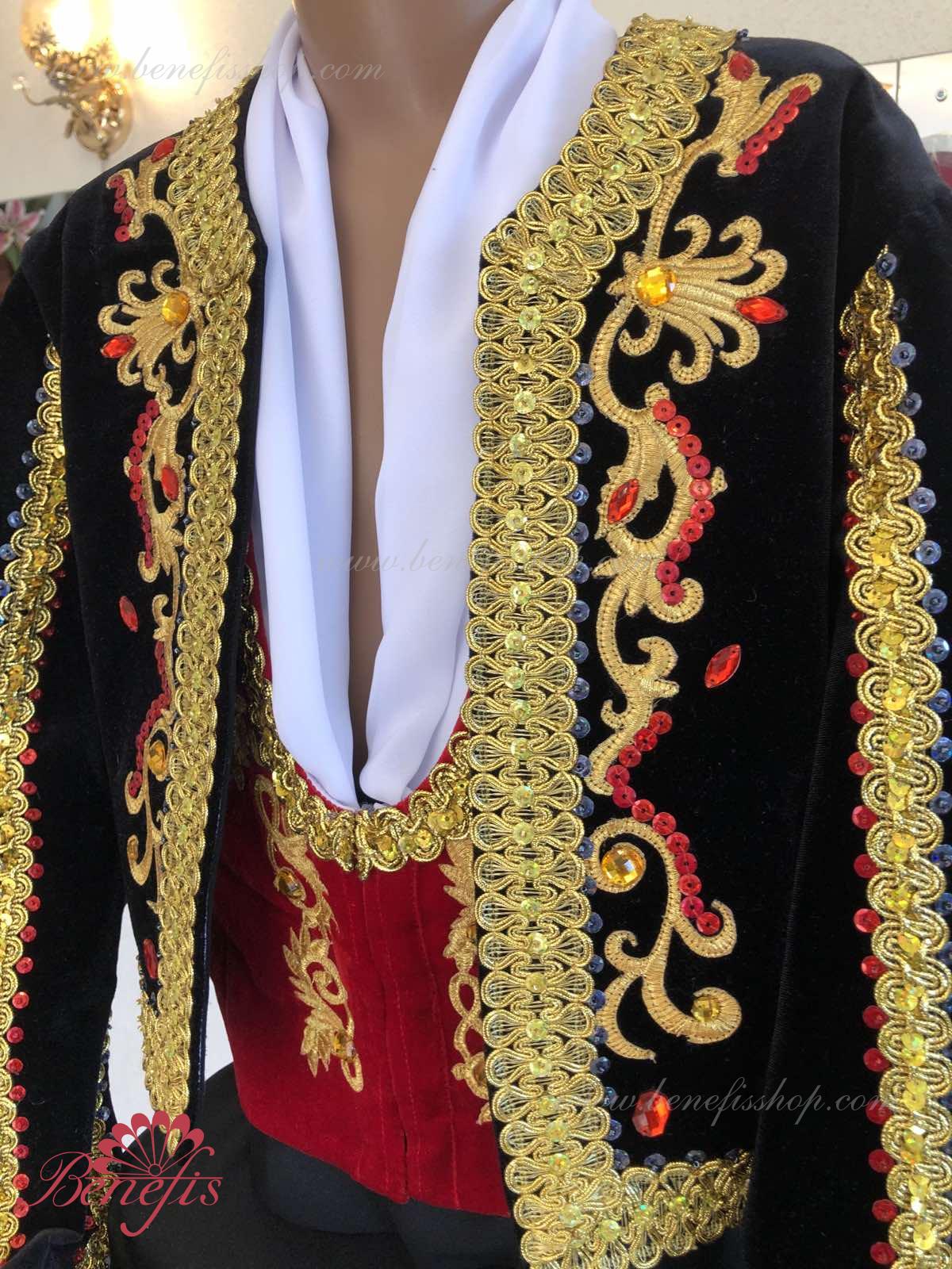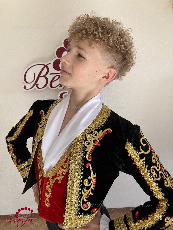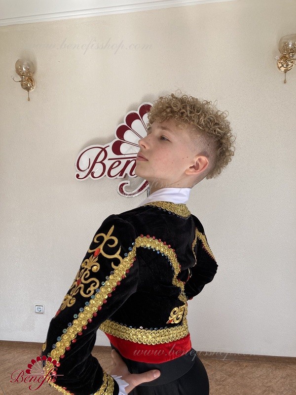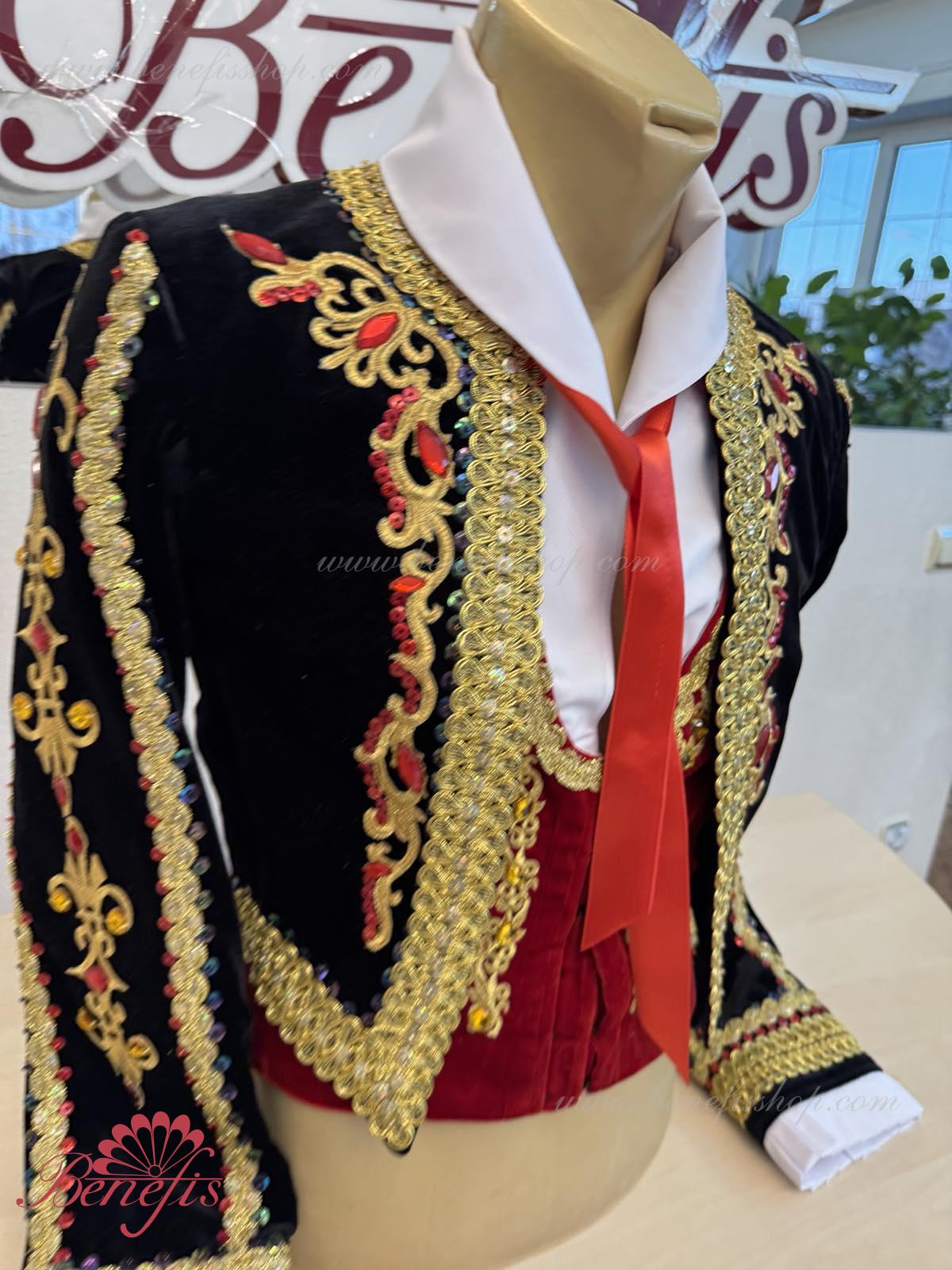 Details:jacket,footed tightst .It is a professional stage costume, which is made of black dense stretch velvet on a lining and has a short silhouette in the Spanish style traditions.