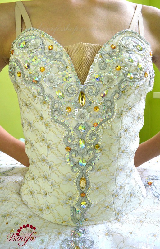 The bodice has two rows of hooks for comfortable adjustment, and an inner cord closes the bodice in the chest area.