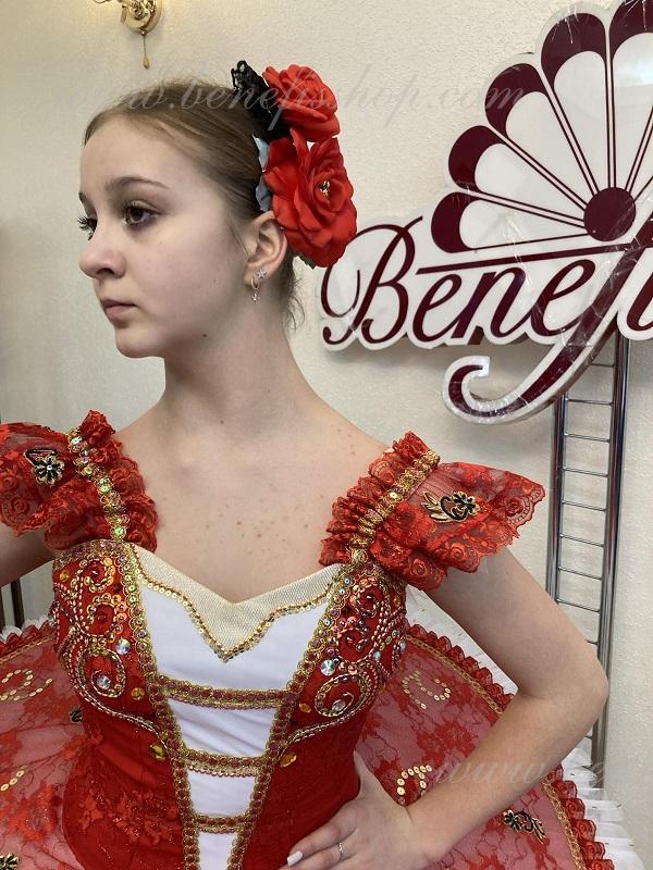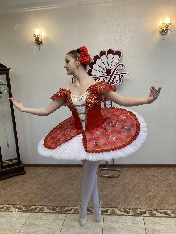 It is a professional stage costume, which is made on the basis of the professional basic tutu #T0001B (see section “Basic tutus”).