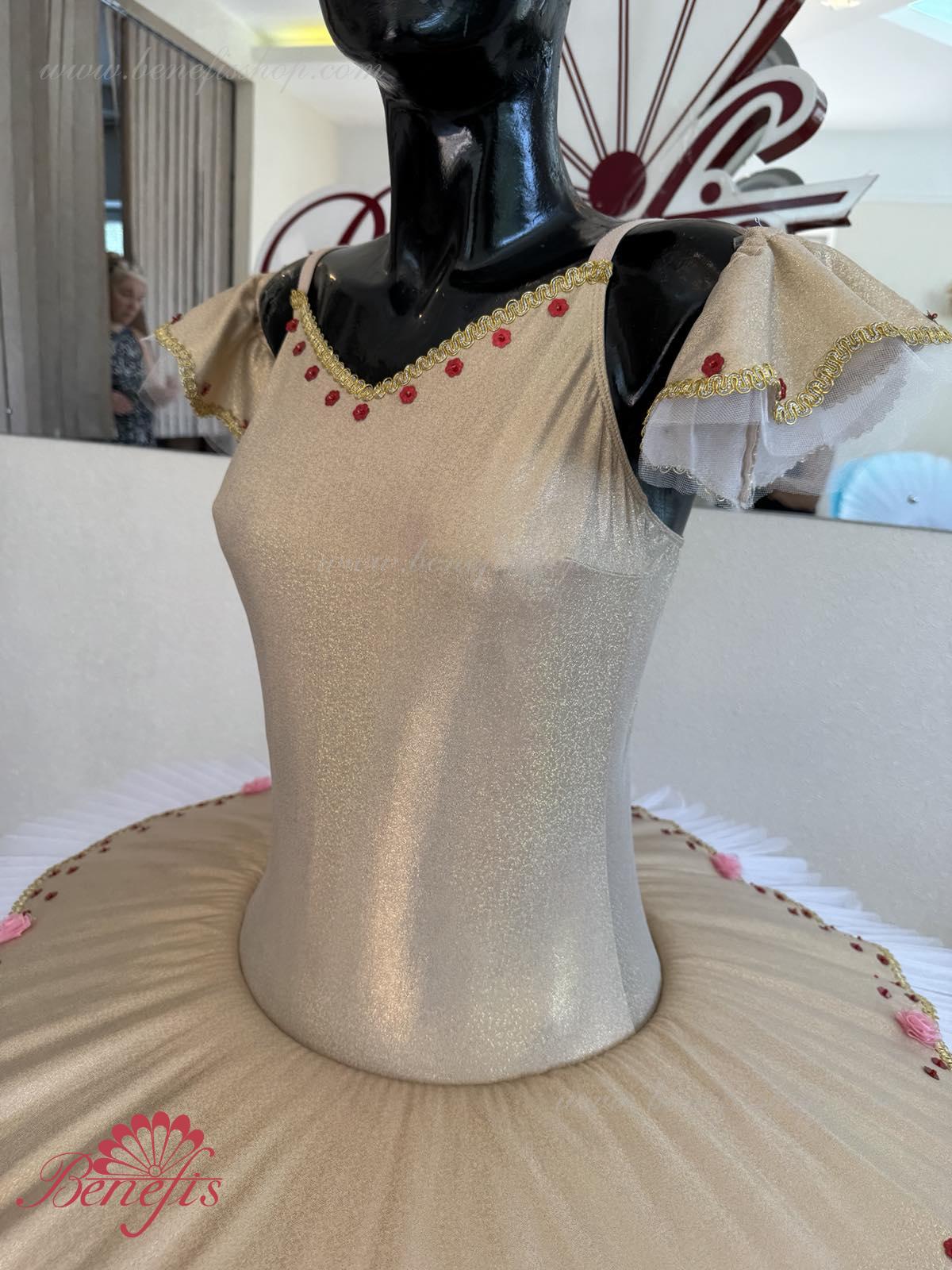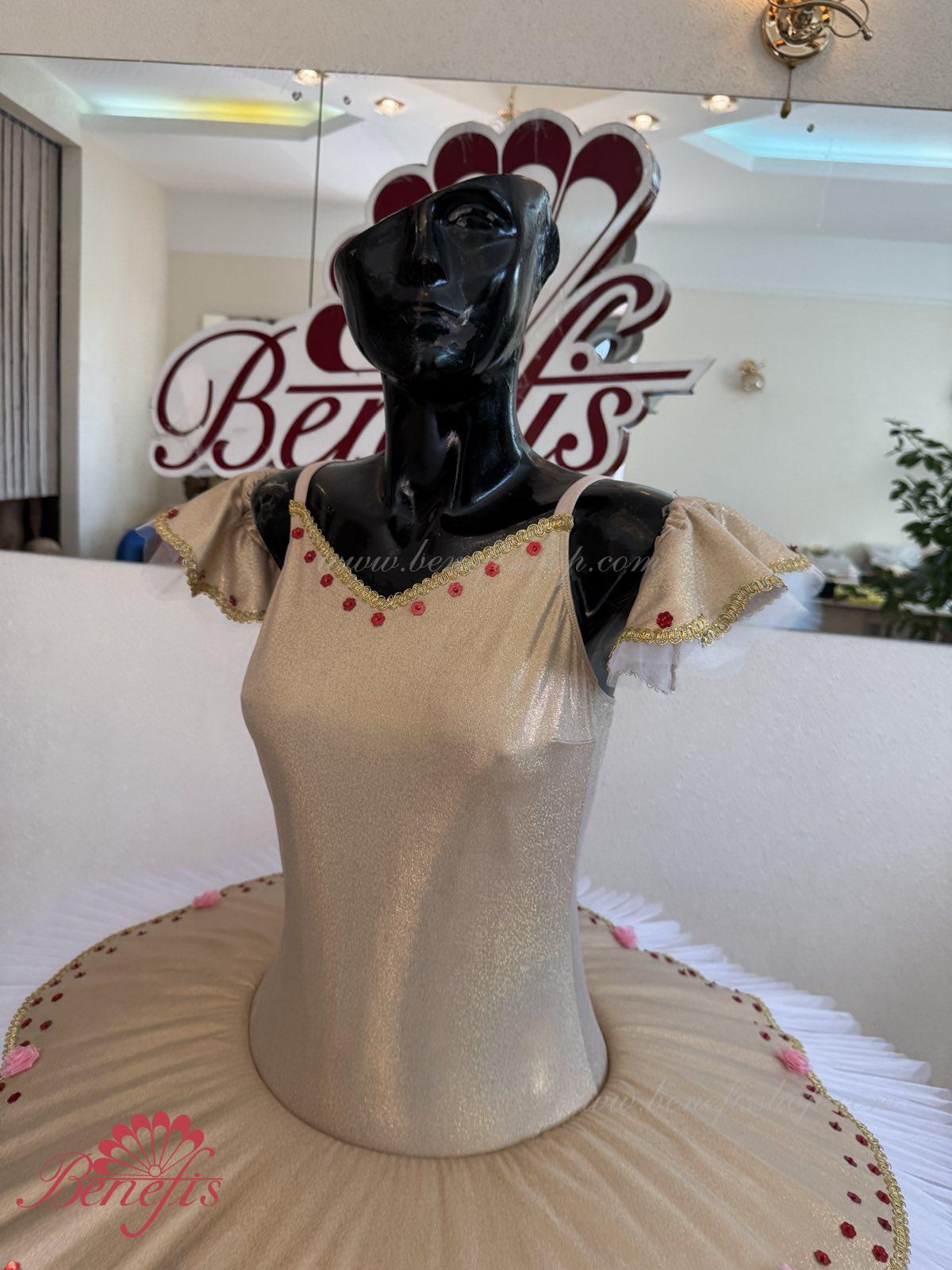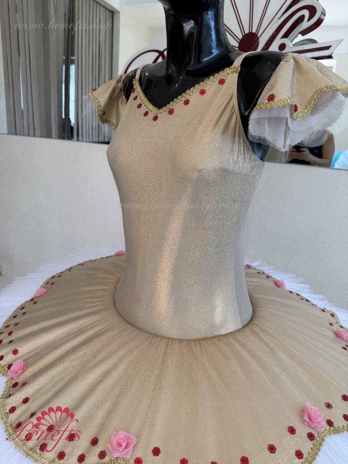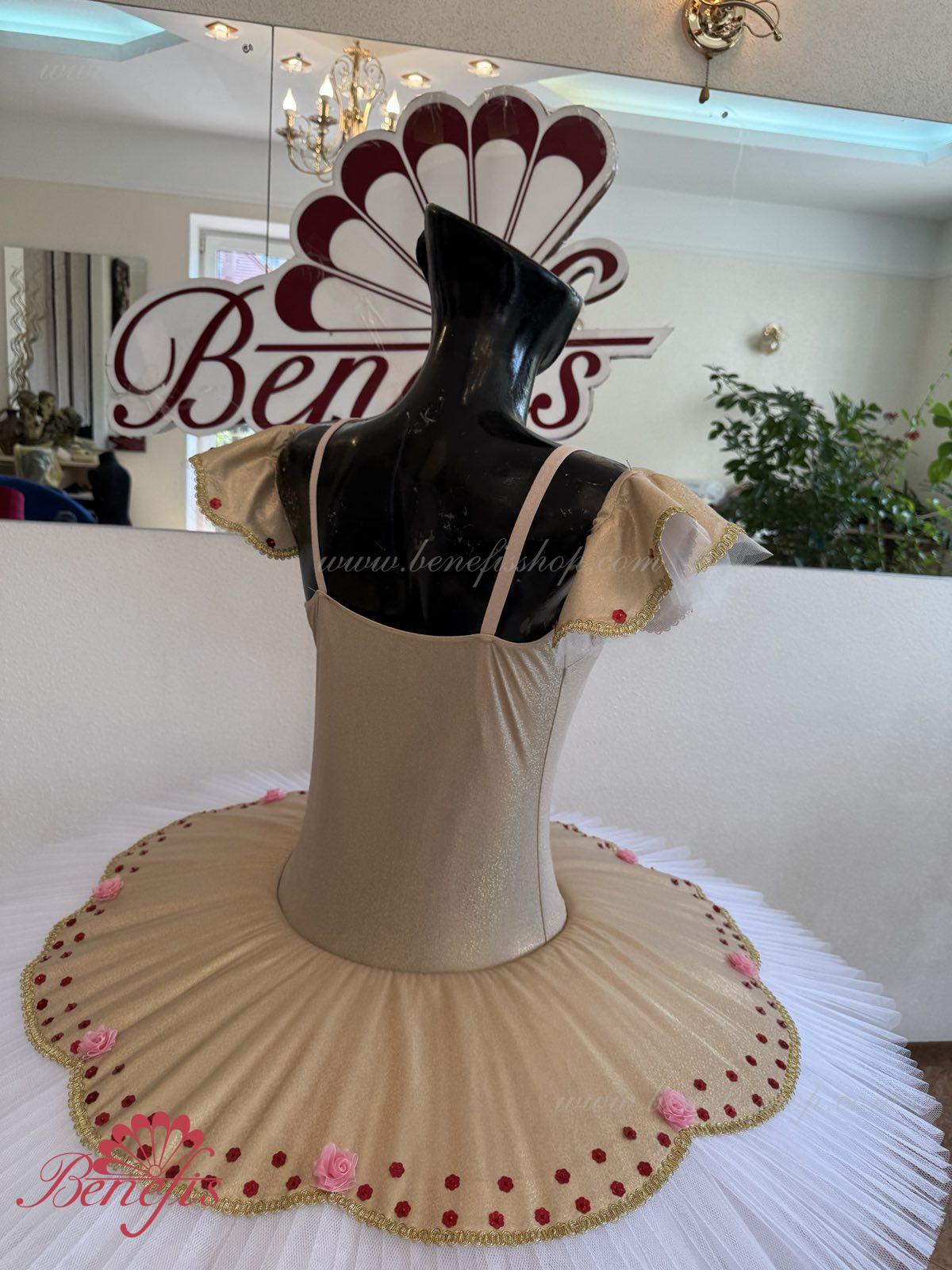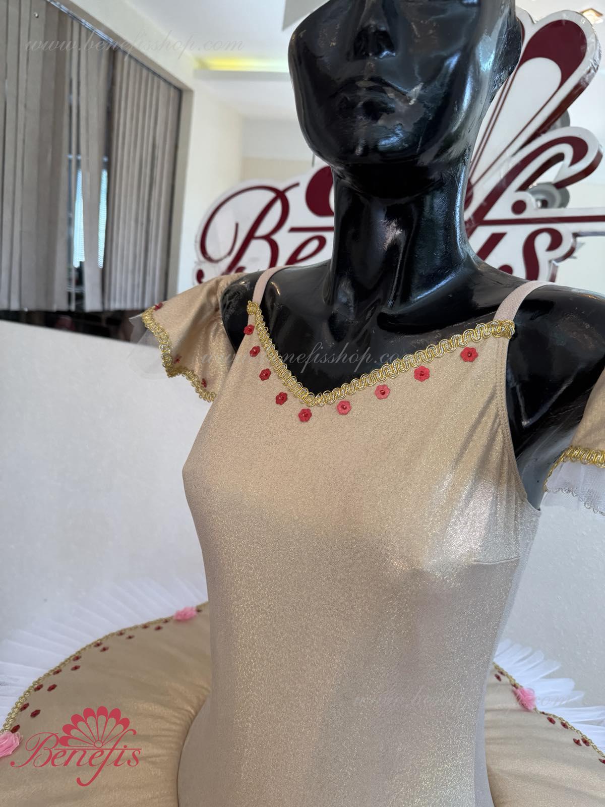 Details: costume. Leotard A0001A with white briefs, the base is made of 5 layers of tulle, the top is hard, the rest is soft,1 crinoline. The leotard is made of biflex fabric (100% lycra).The tire and sleeves are decorated with sequins with beads and braid.