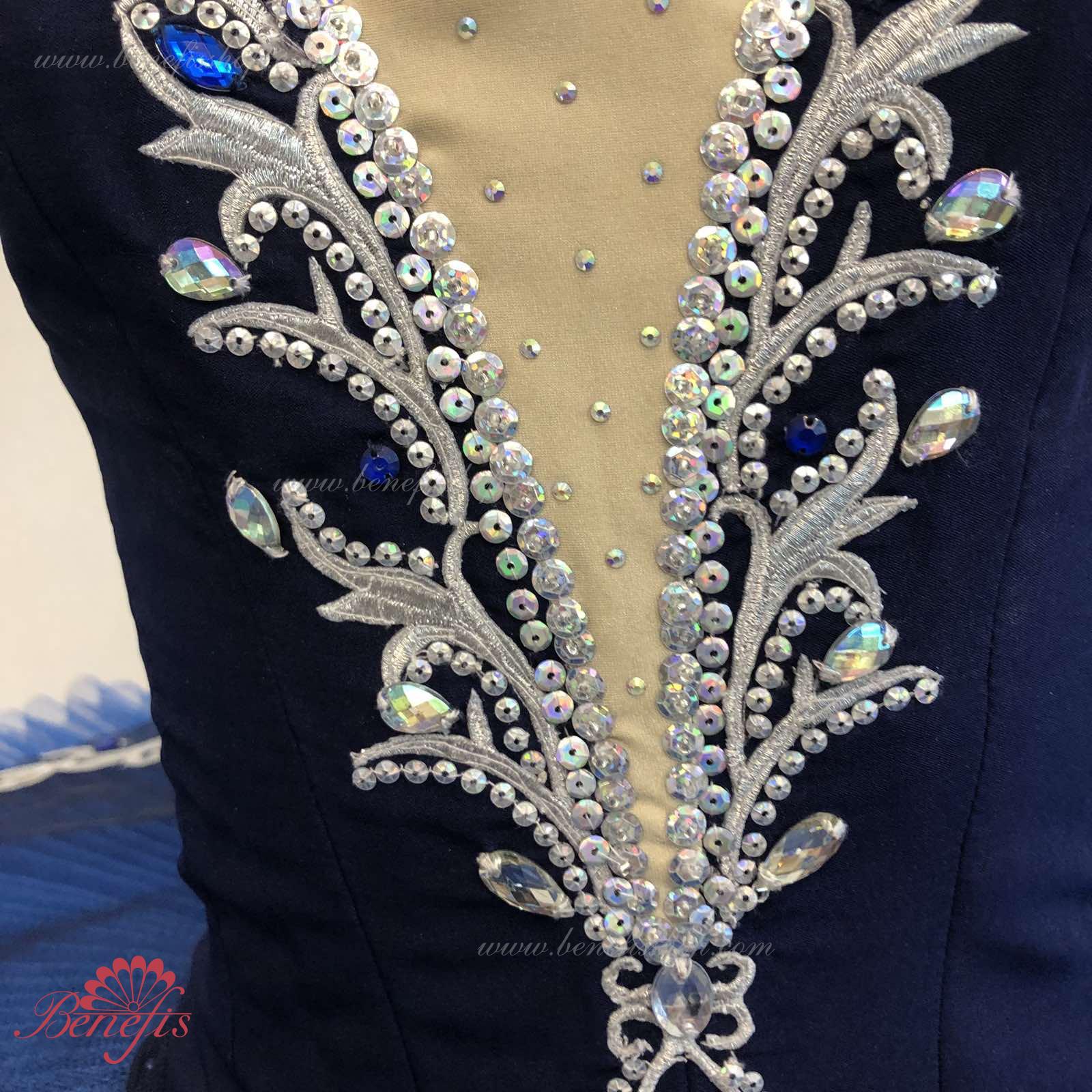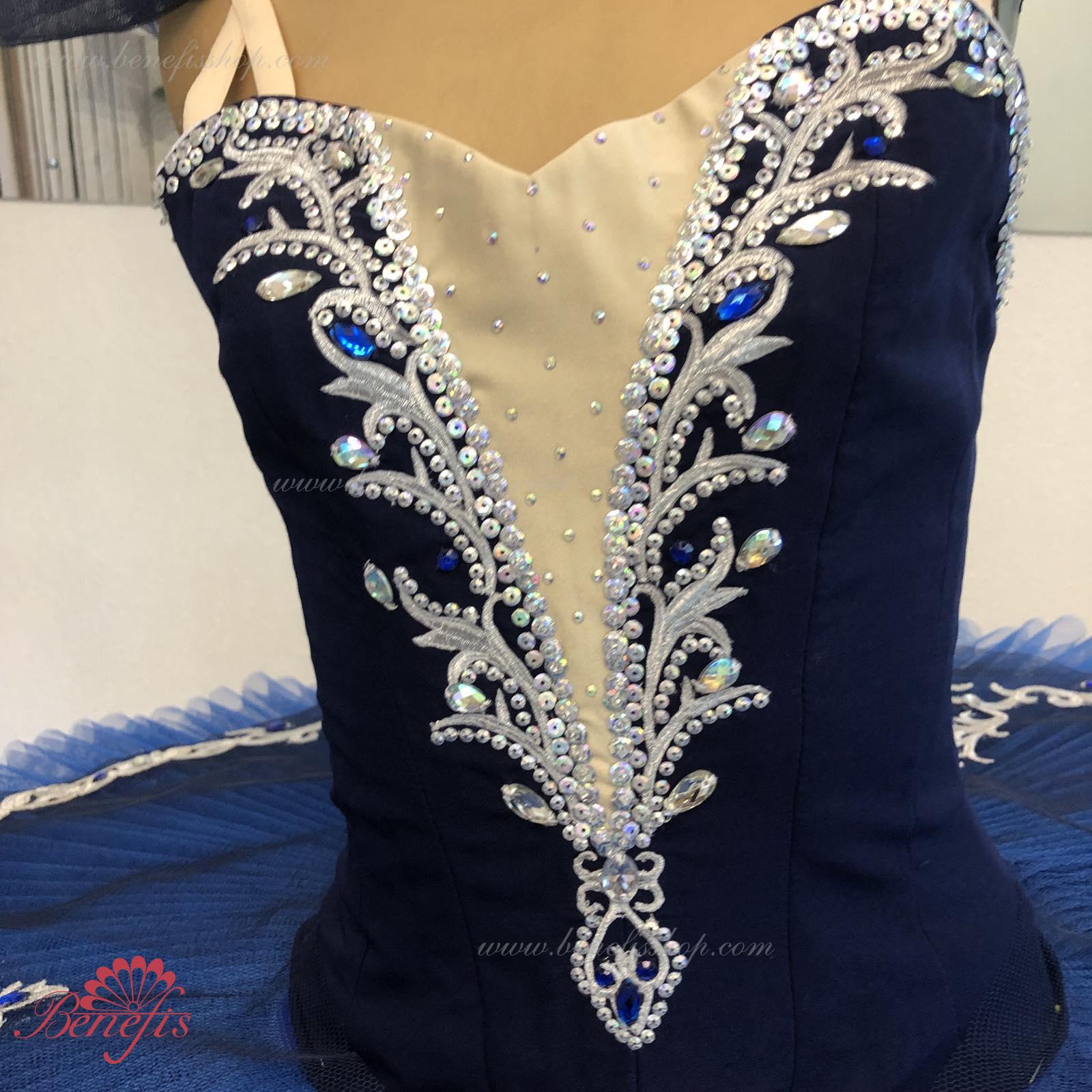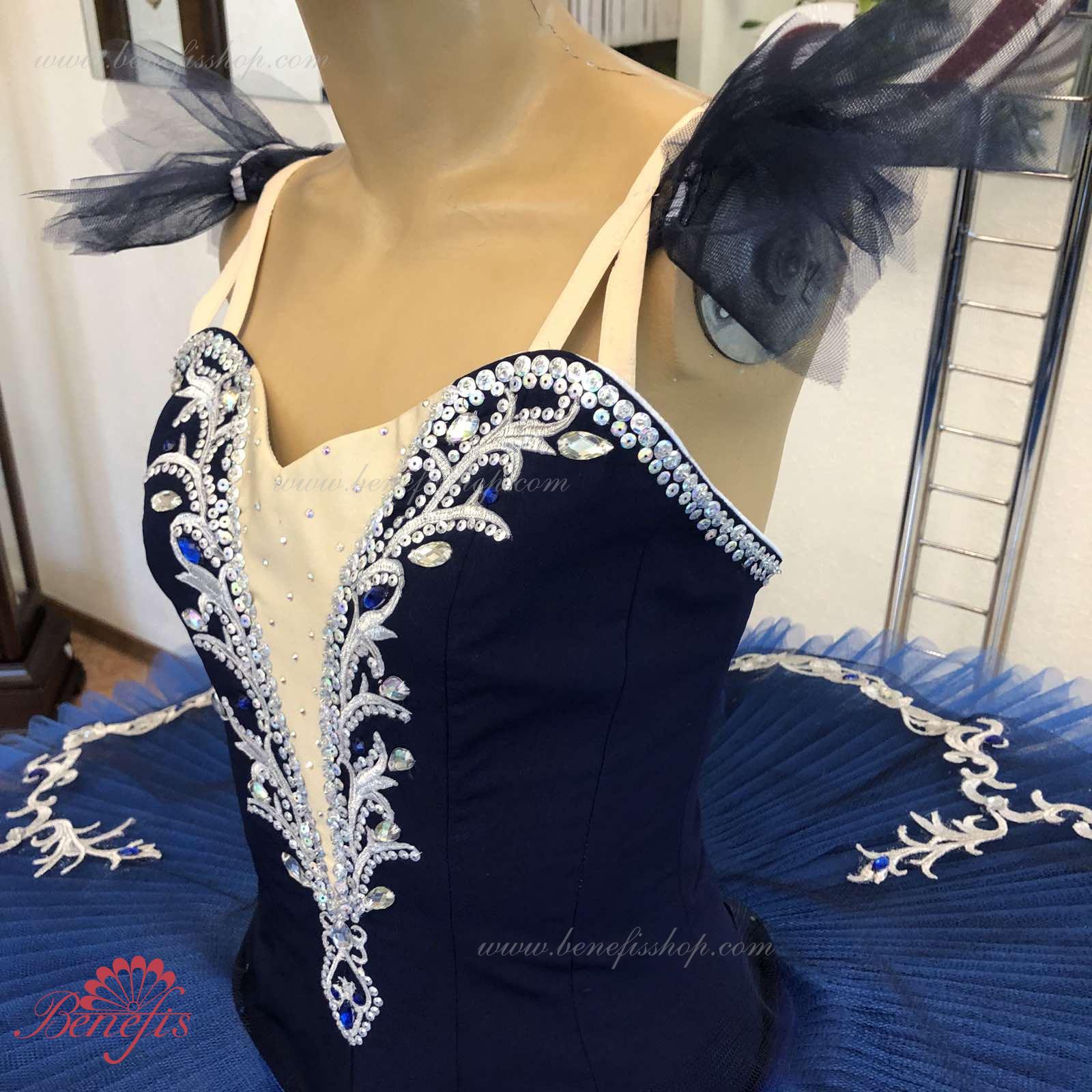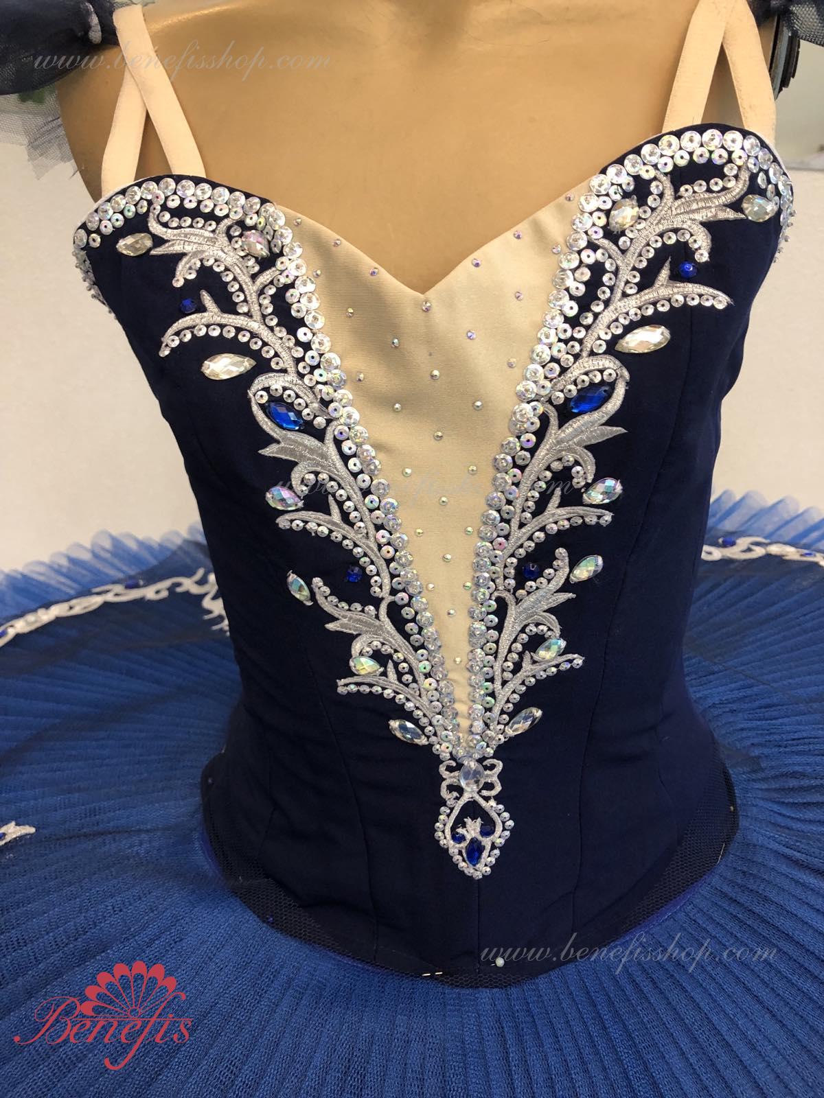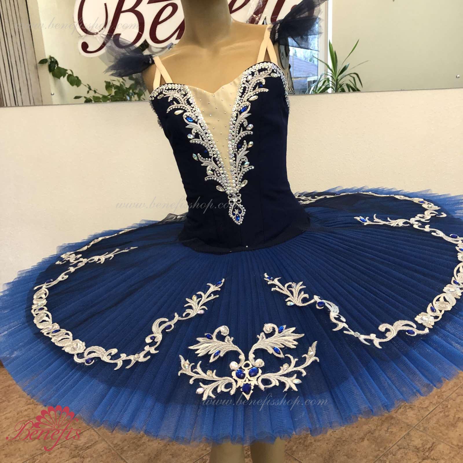 Tutu- Eight pleated graduated layers of semi-soft tulle- seven long and one short with tulle panties with a 10 cm bascque attached to an elastic waistband. Two crinoline hoops are sewed in the middle layer with two additional short frills at the edges. The length of the top layer of the tutu is 36-38 cm, each next layer is shorter with 4 cm than previous . The tutu is fastened at the back with 6 large hooks and loops.