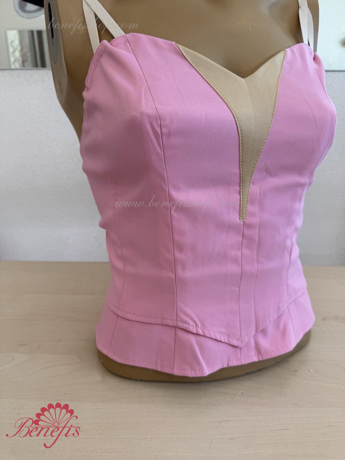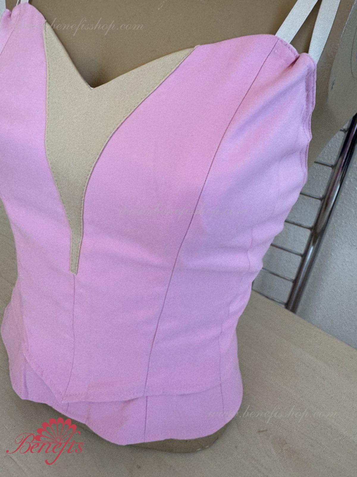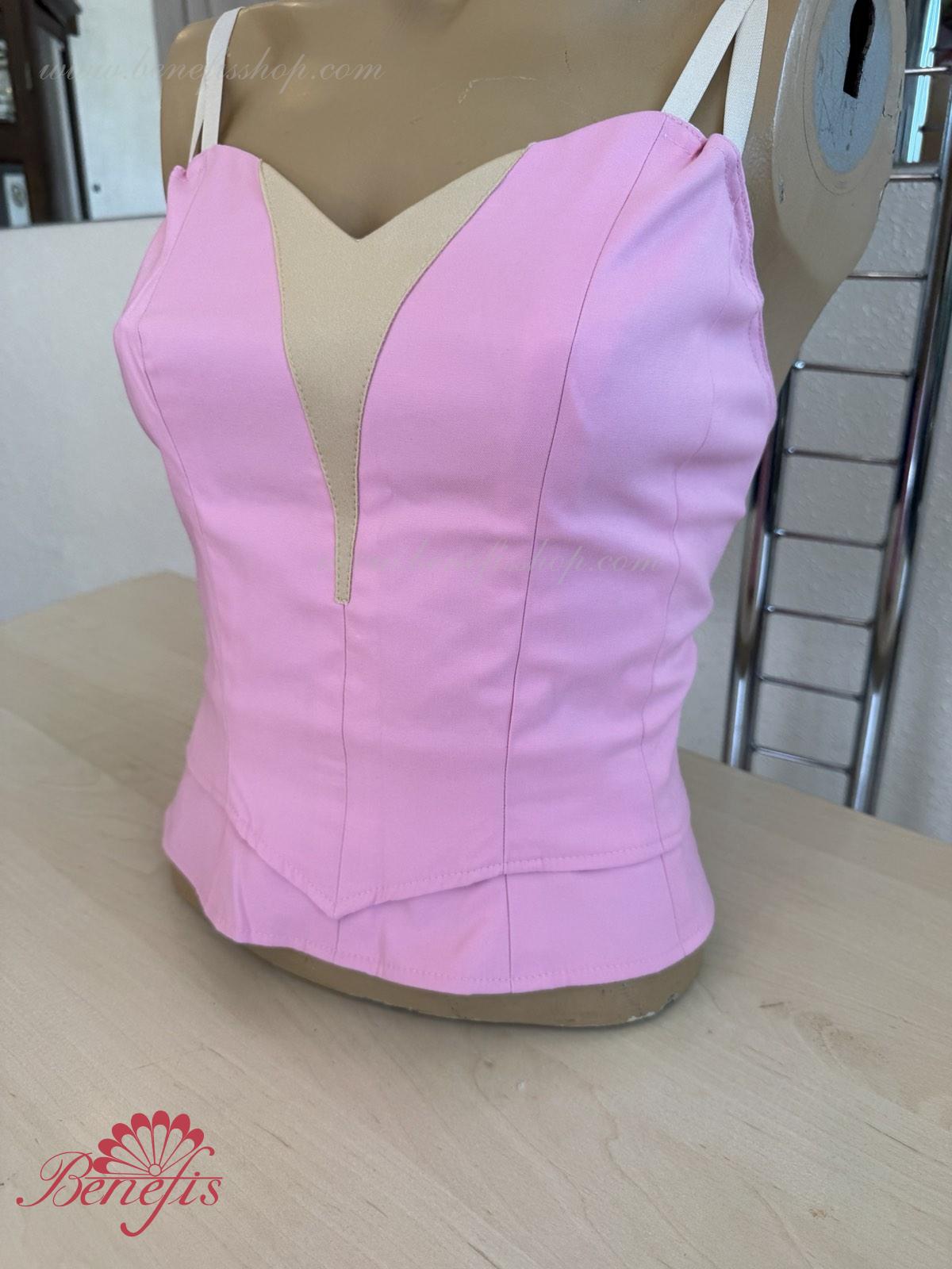 The bodice on flesh-colored straps can be made of the semi-stretched dense fabric of velvet or taffeta. This model is made of two parts which are connected with rubber bands on the waist area. The lower part is attached to the tutu, or skirt. The upper part is superimposed on the bottom part, what allows adjusting the length of the bodice, depending on the ballerina’s height, and makes it more flexible.