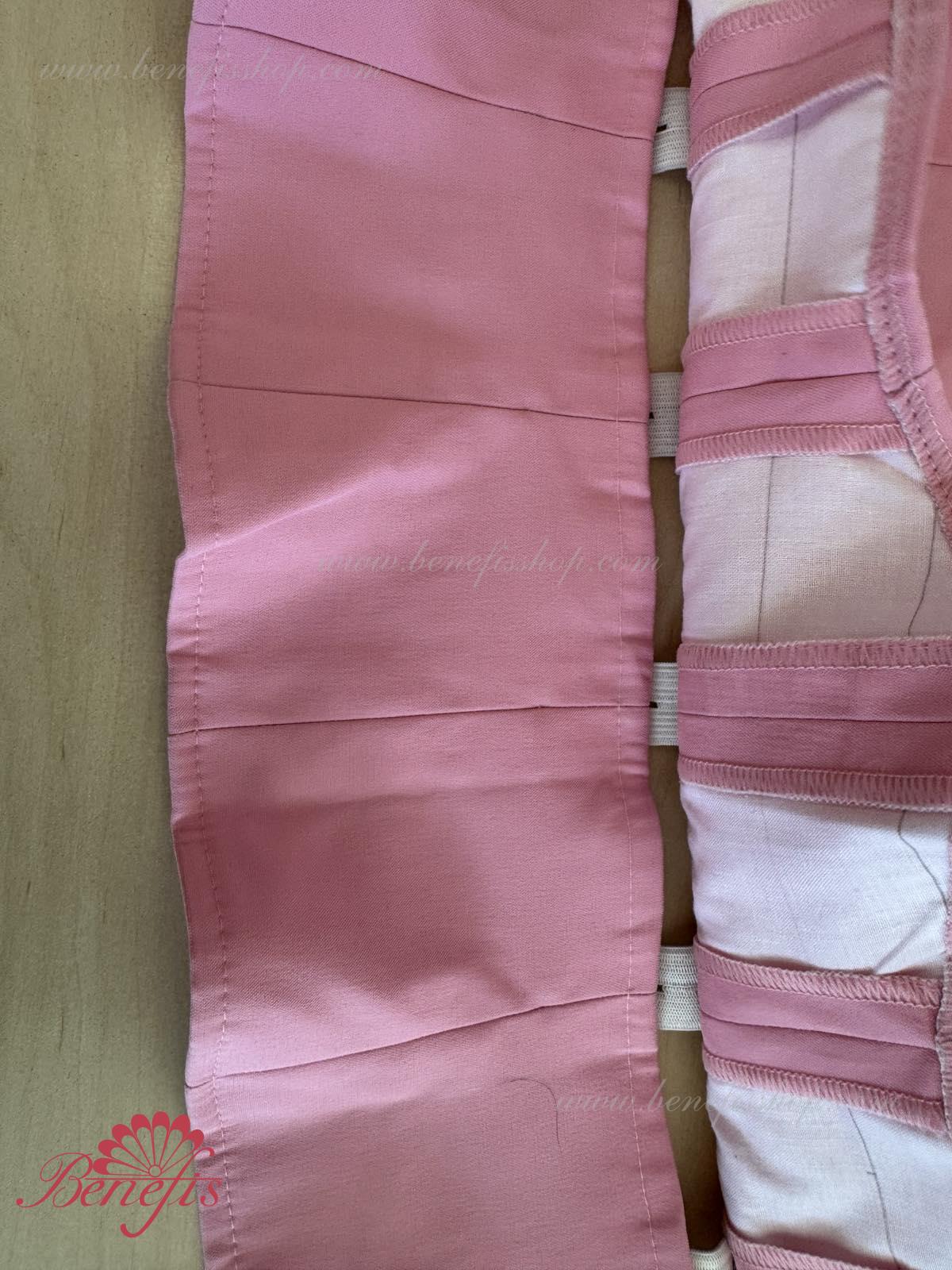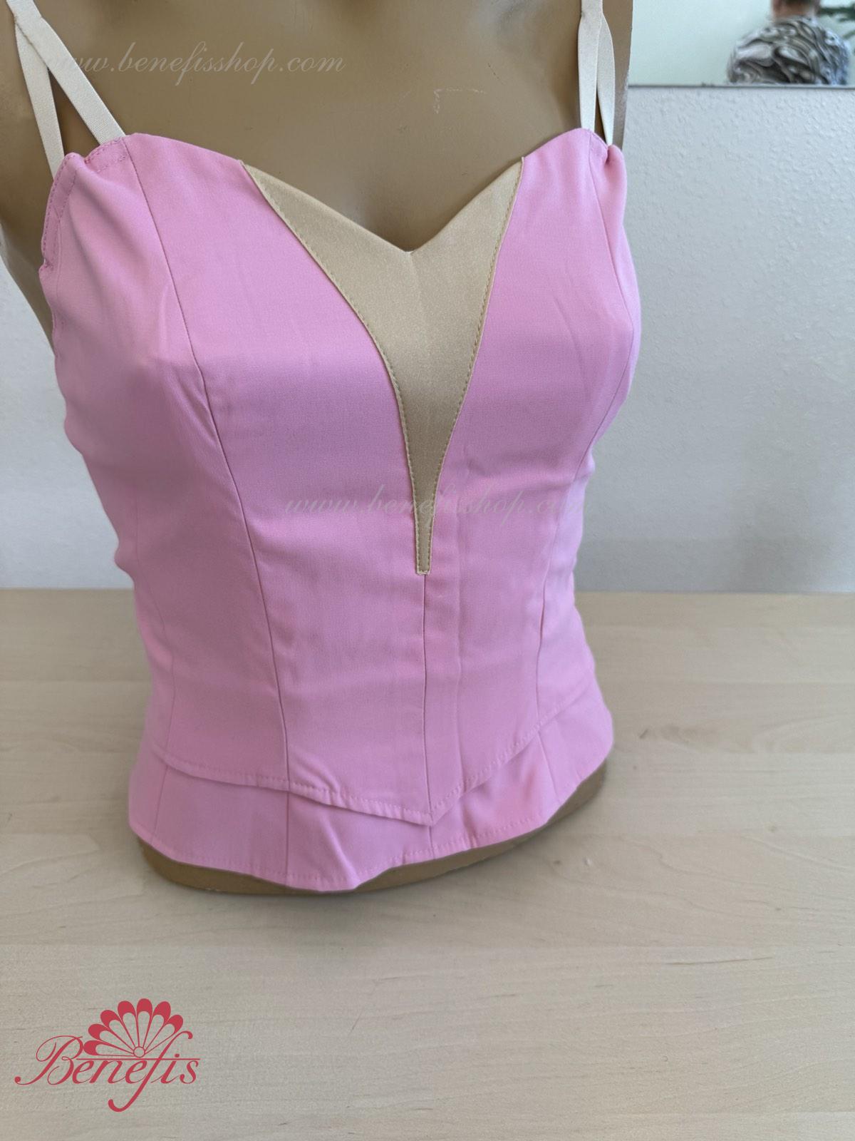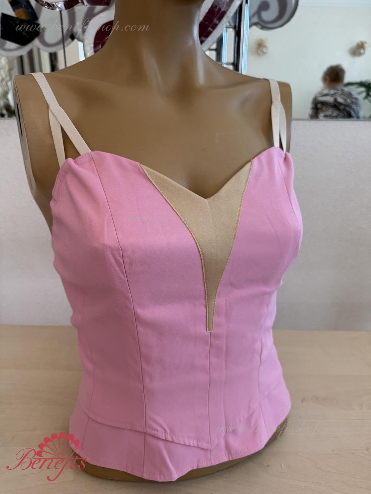 The bodice on flesh-colored straps can be made of the semi-stretched dense fabric of velvet or taffeta. This model is made of two parts which are connected with rubber bands on the waist area. The lower part is attached to the tutu, or skirt. The upper part is superimposed on the bottom part, what allows adjusting the length of the bodice, depending on the ballerina’s height, and makes it more flexible.