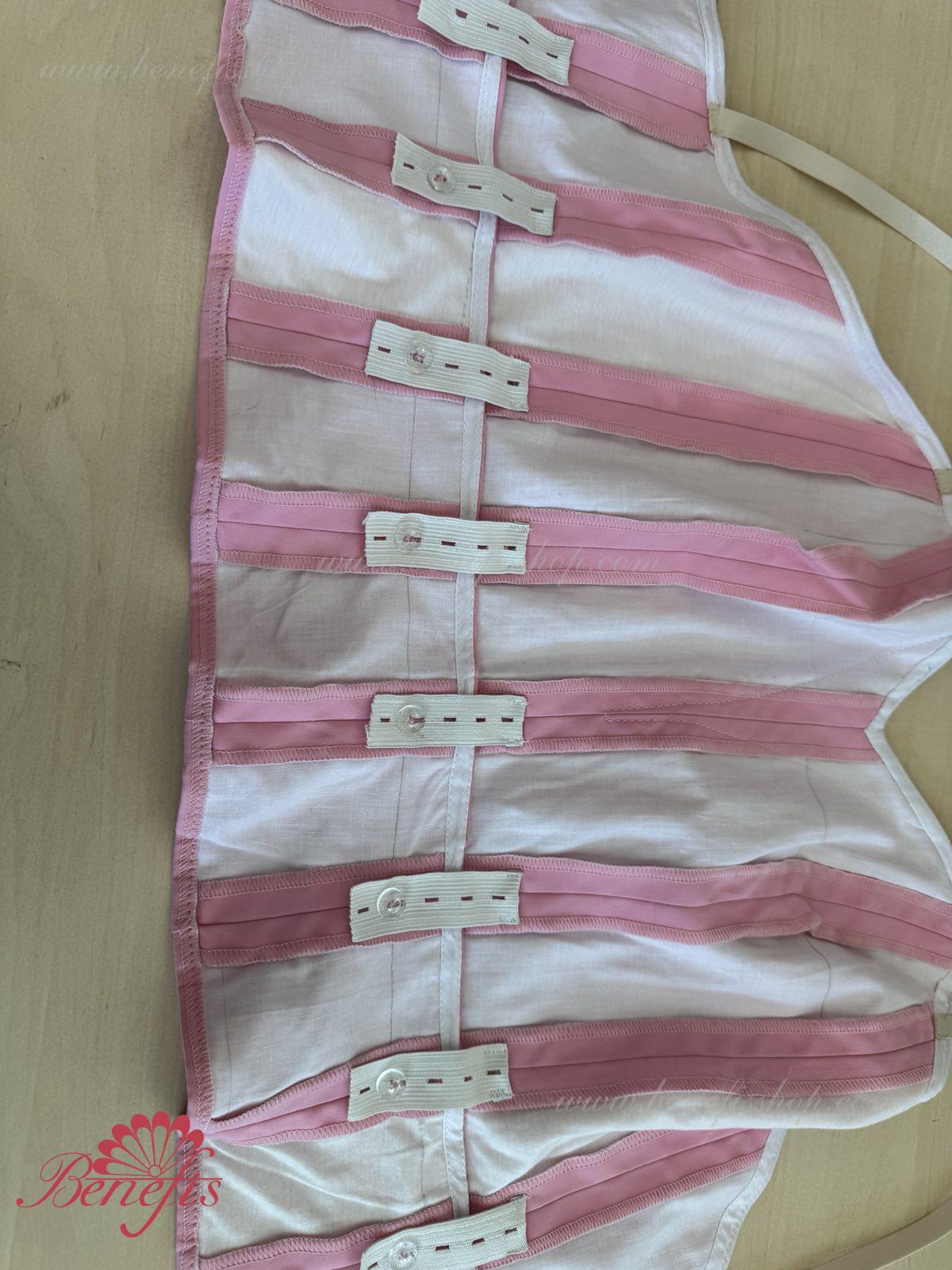 There are two rows of hooks and an inner cord for comfortable adjustment and tightening the bodice at chest level.