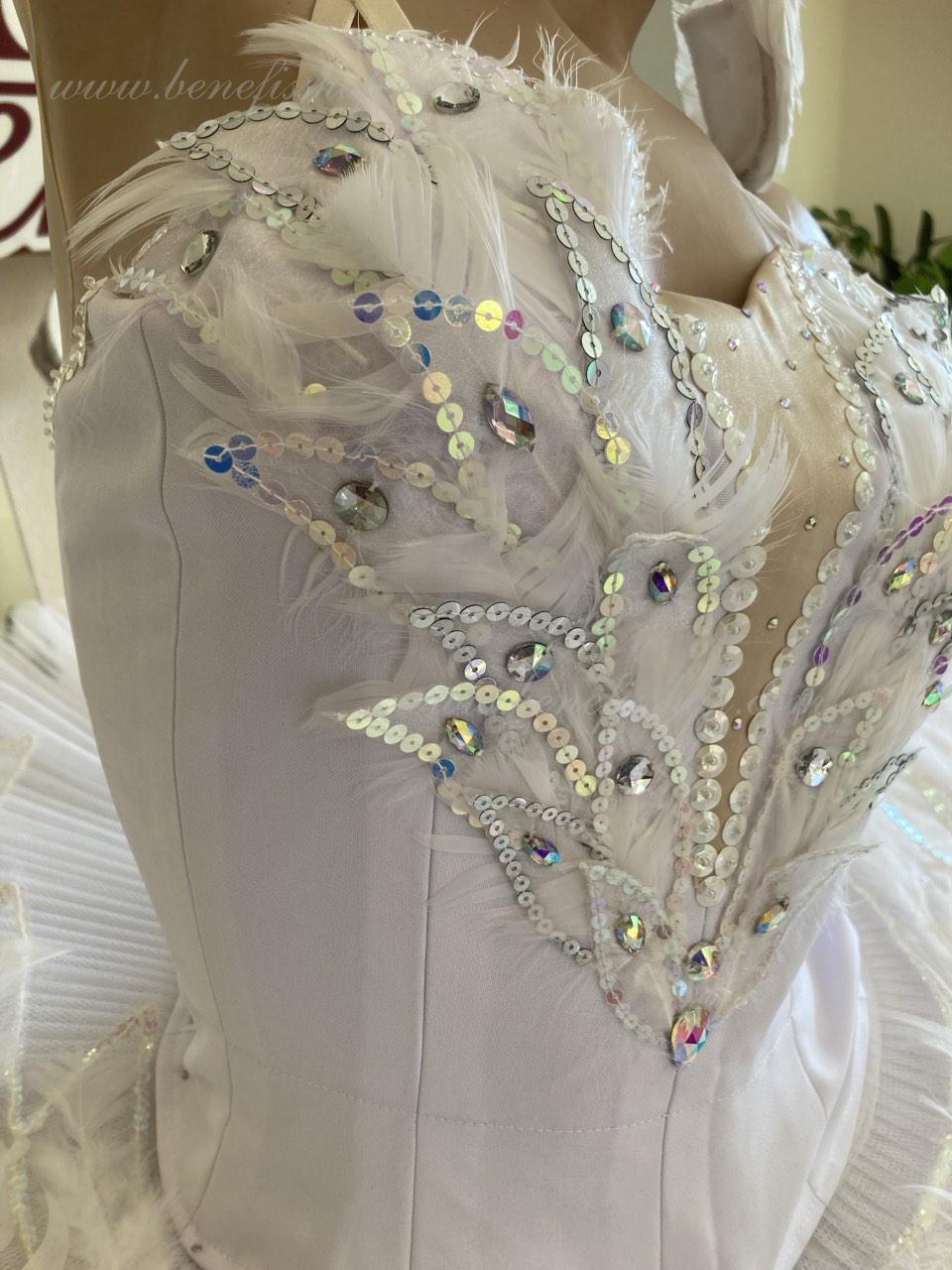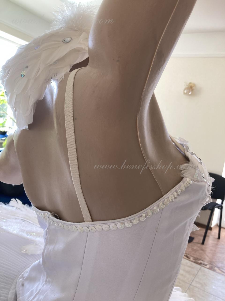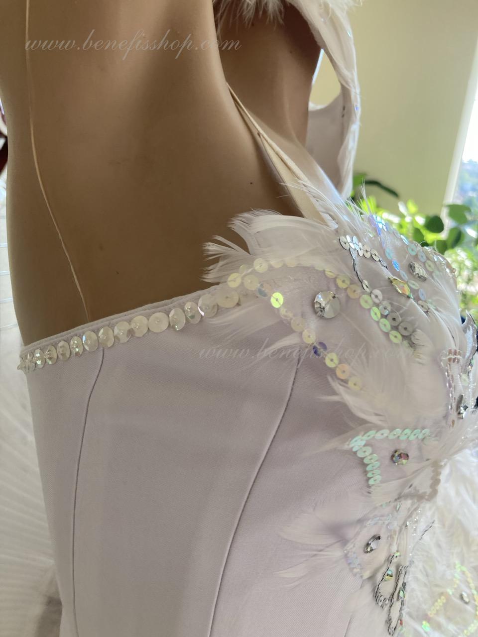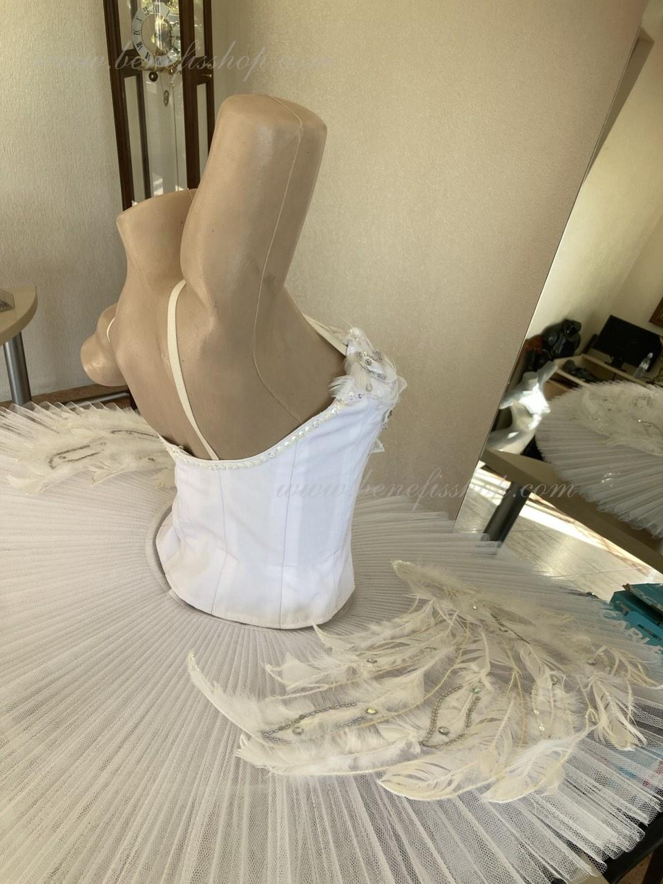 This stage ballet tutu is meant for the leading part of Odette in the “Swan Lake” ballet and can be also used in the ballet miniature by the music of Sen-Sans “Dying swan”.