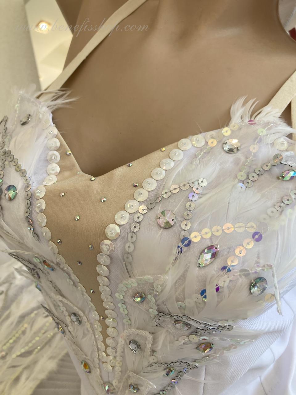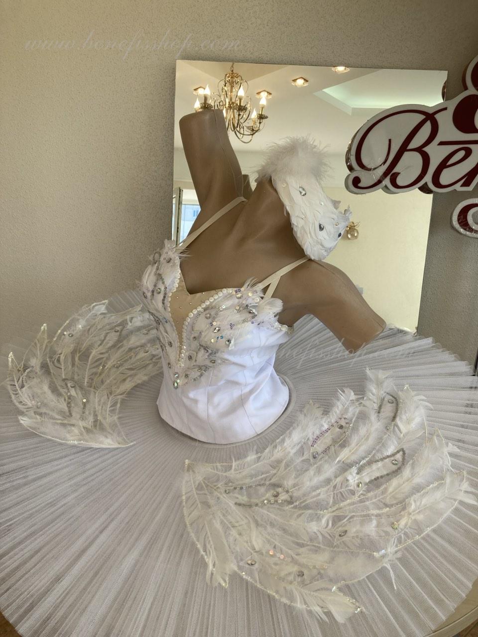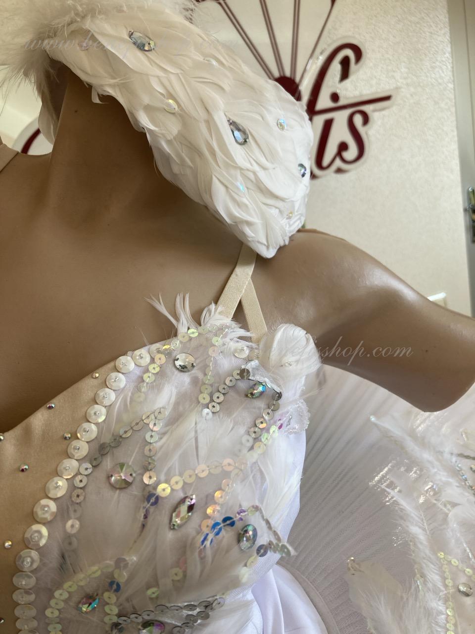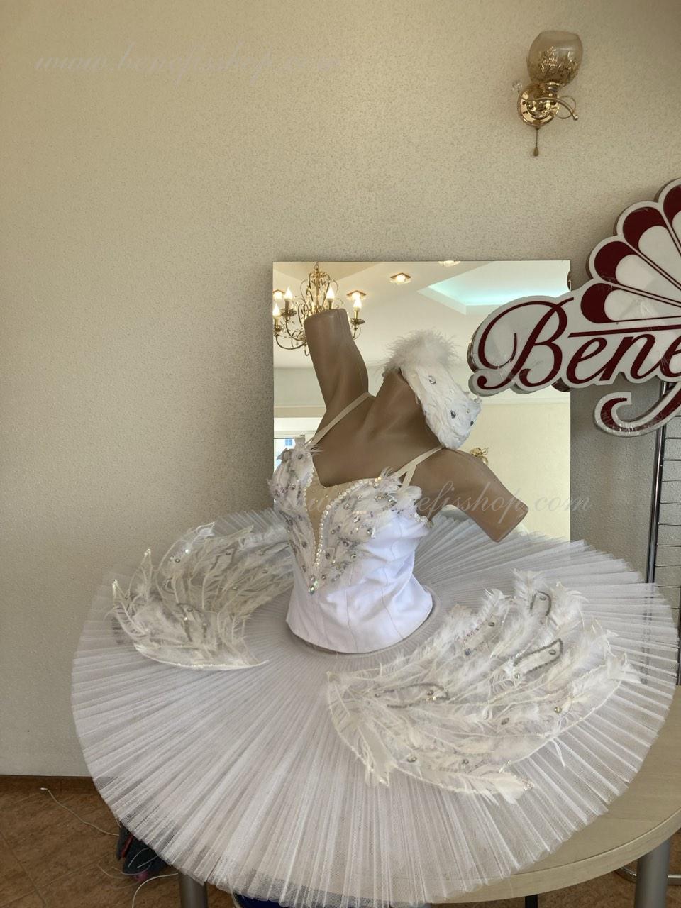 This stage ballet tutu is meant for the leading part of Odette in the “Swan Lake” ballet and can be also used in the ballet miniature by the music of Sen-Sans “Dying swan”.