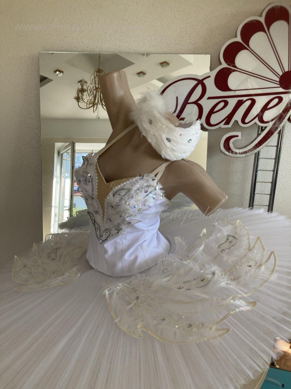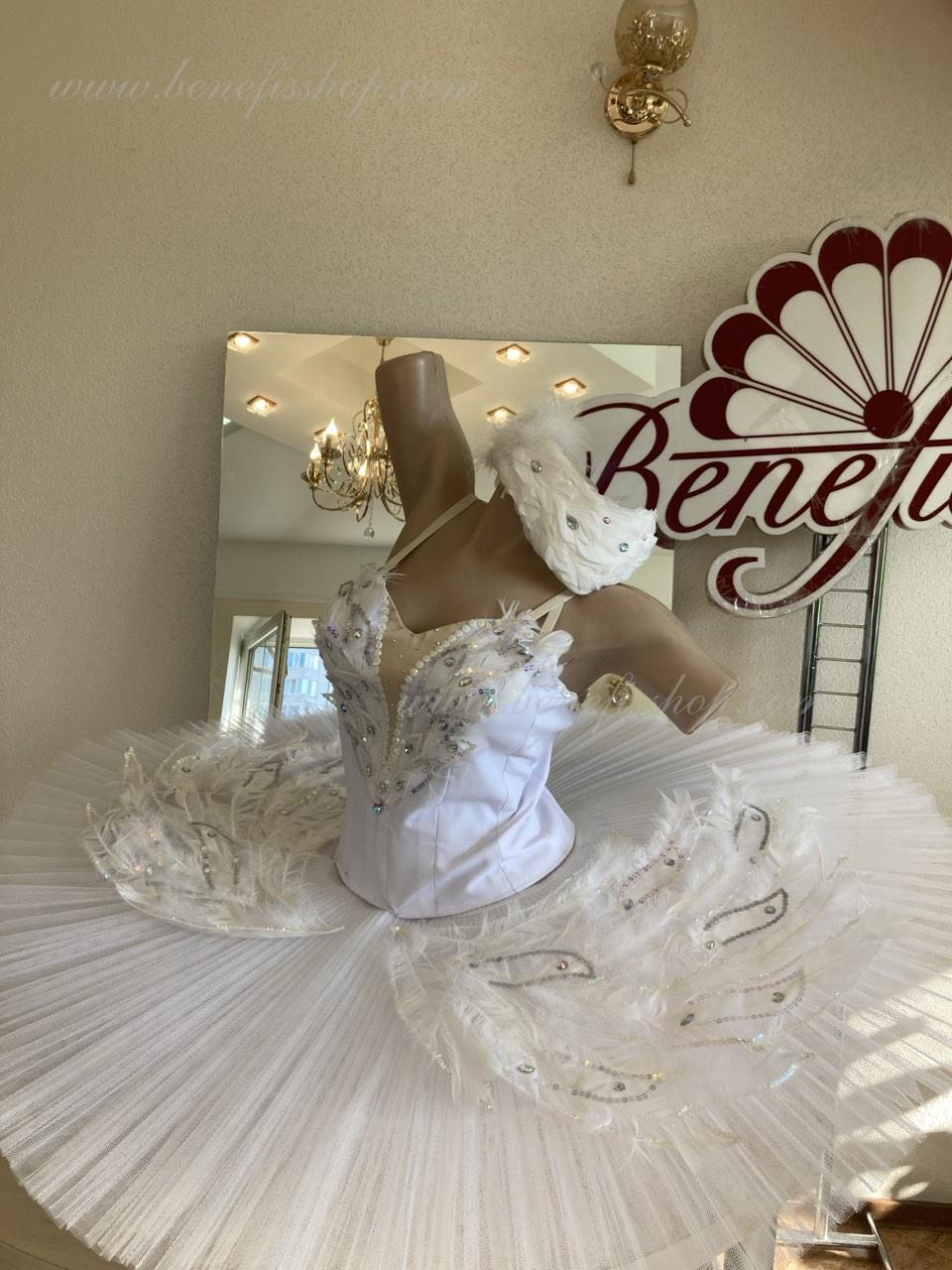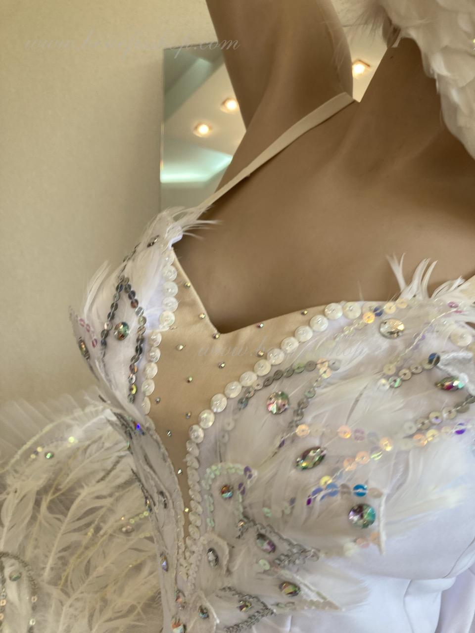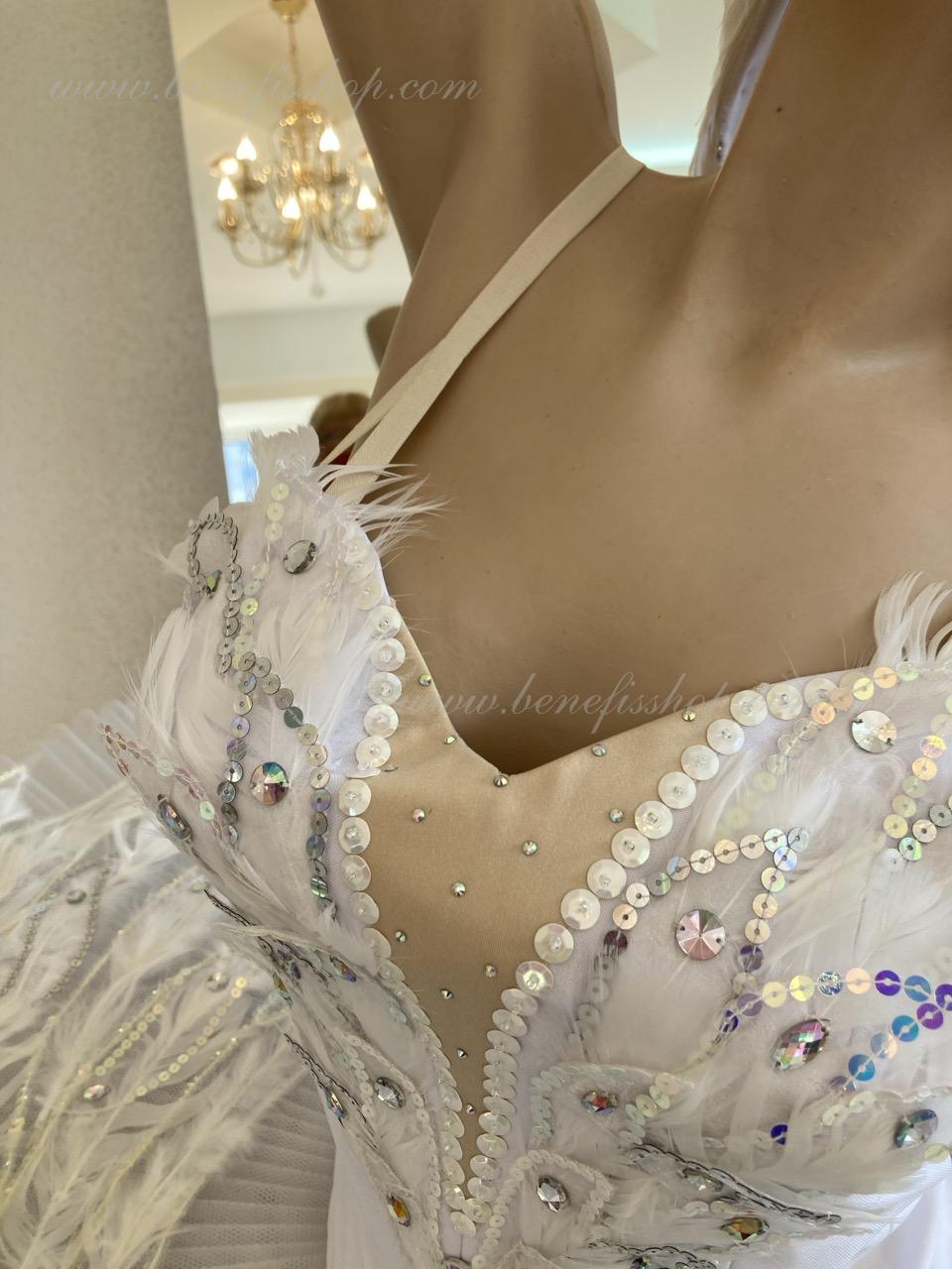 This stage ballet tutu is meant for the leading part of Odette in the “Swan Lake” ballet and can be also used in the ballet miniature by the music of Sen-Sans “Dying swan”.