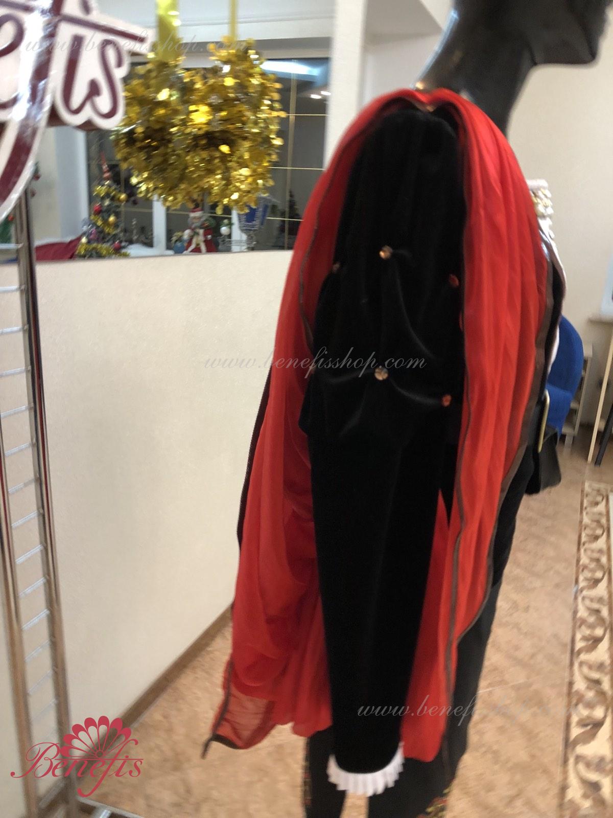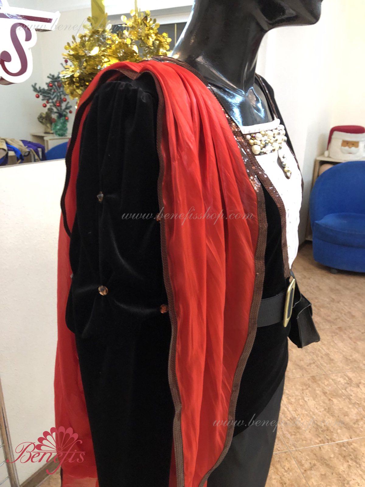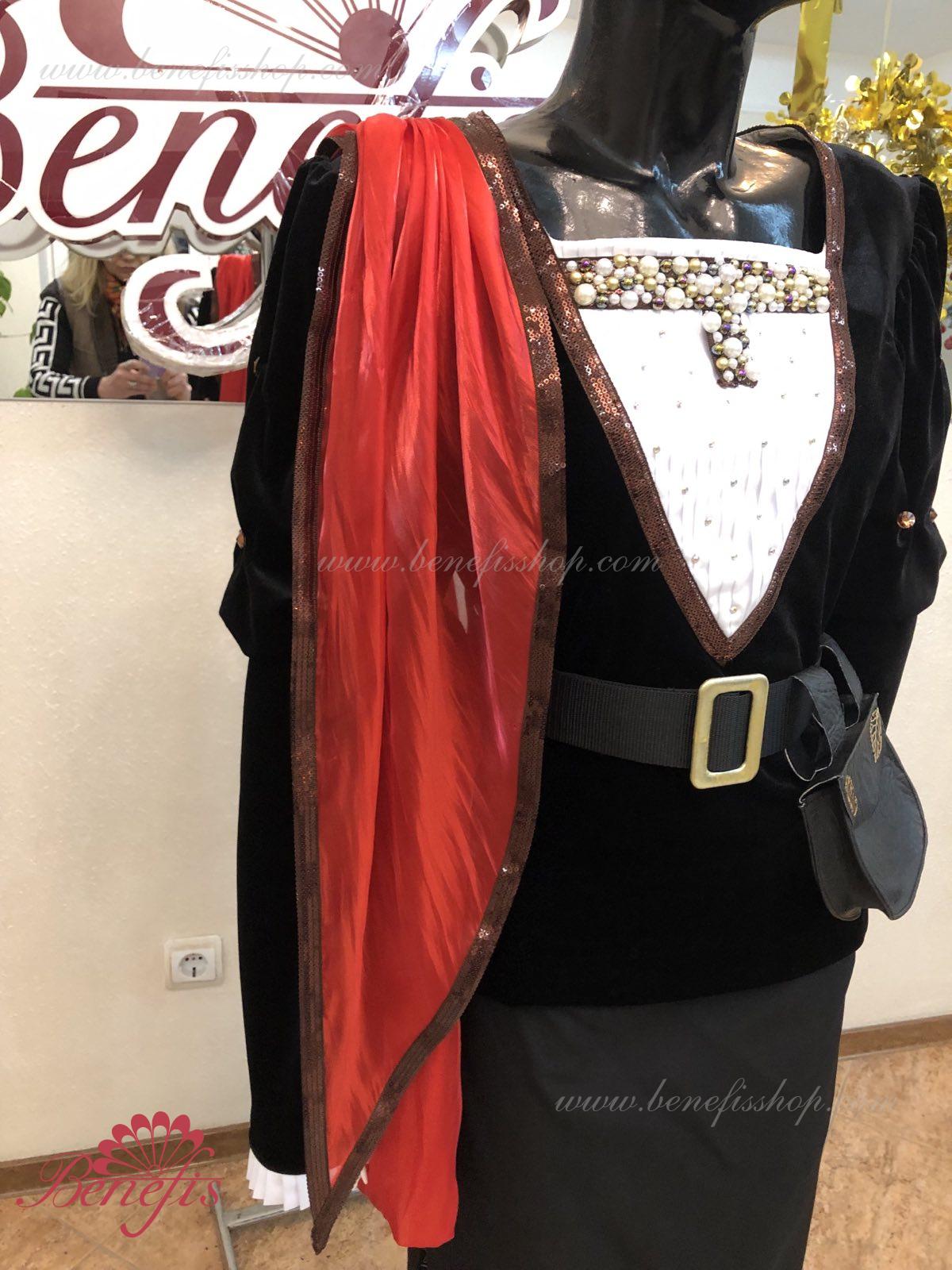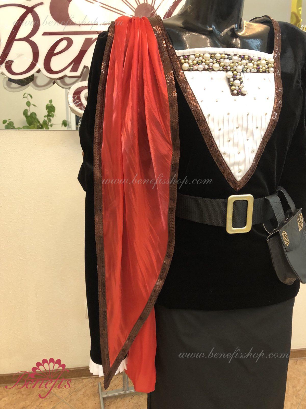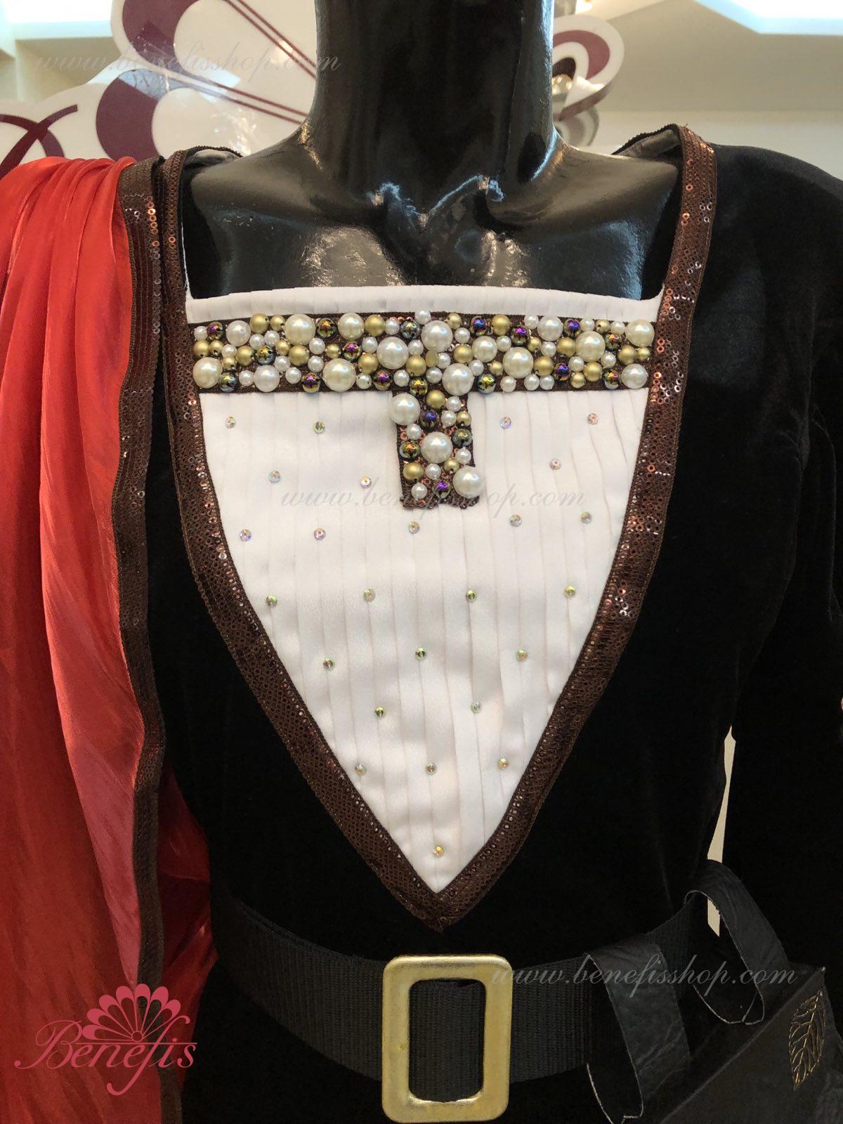 Details: tunic, cape. This is a professional stage costume made of dense semi-elastic fabric. The tunic fastens at the back with hooks and loops. Rhinestones, sequins, a belt, and a handbag are used as decorations, colette is ahead. The costume can be made in any color at the customer's choice. Only professional seamstresses and designers work on the product.