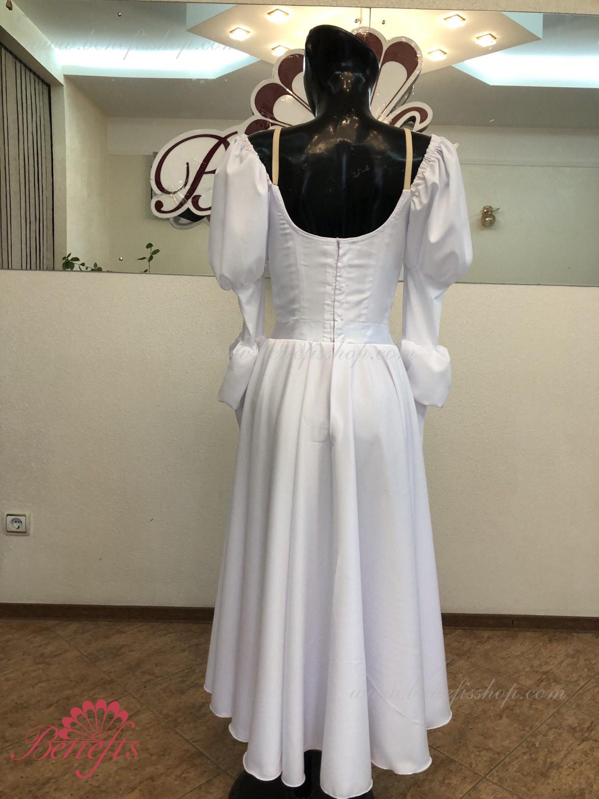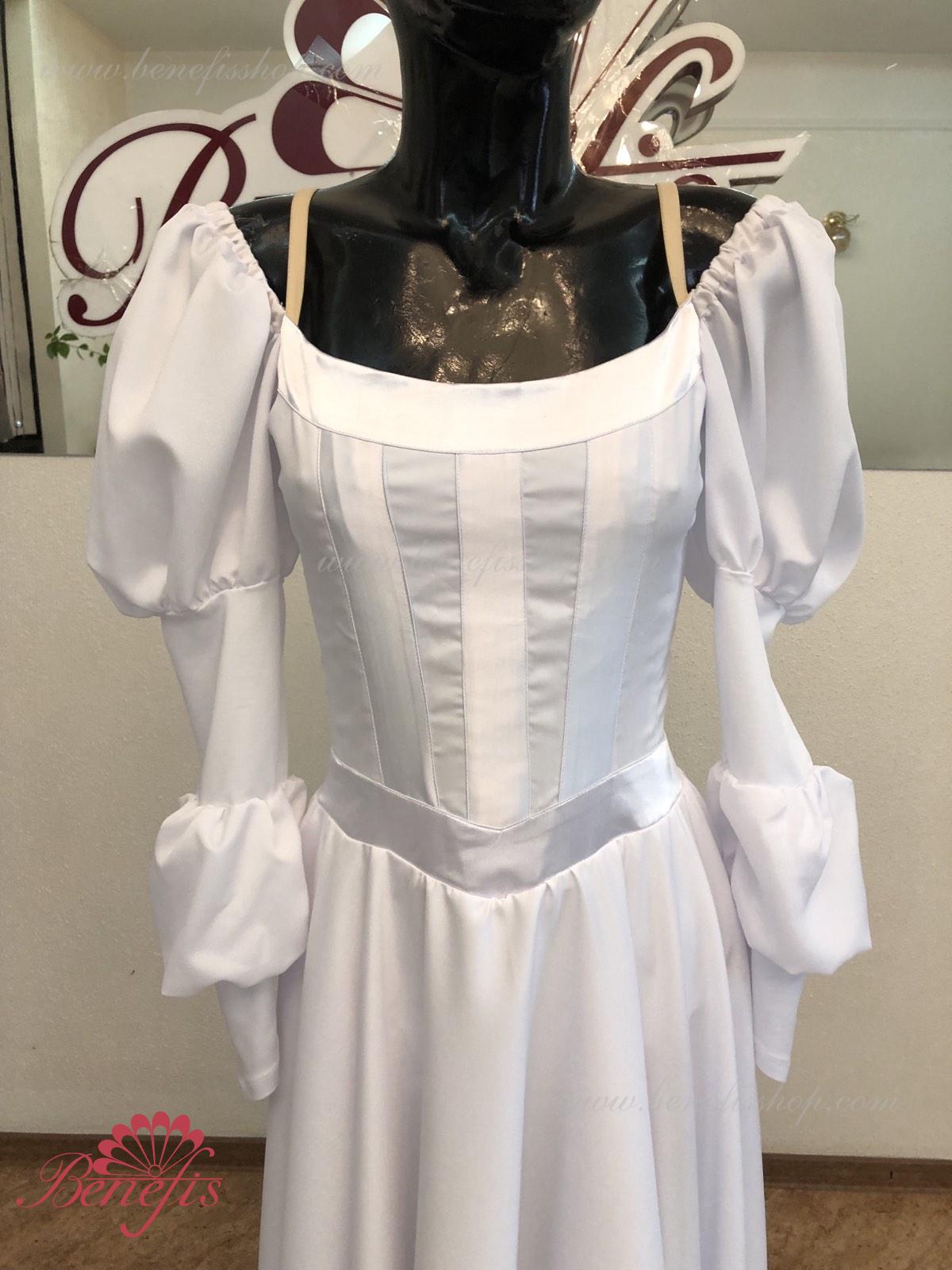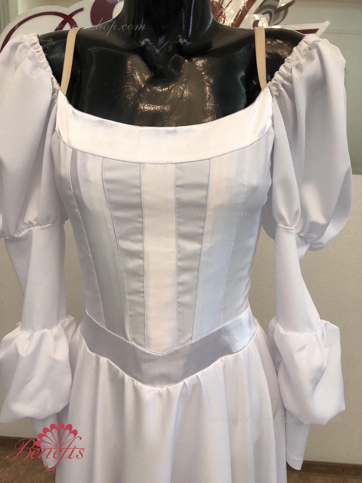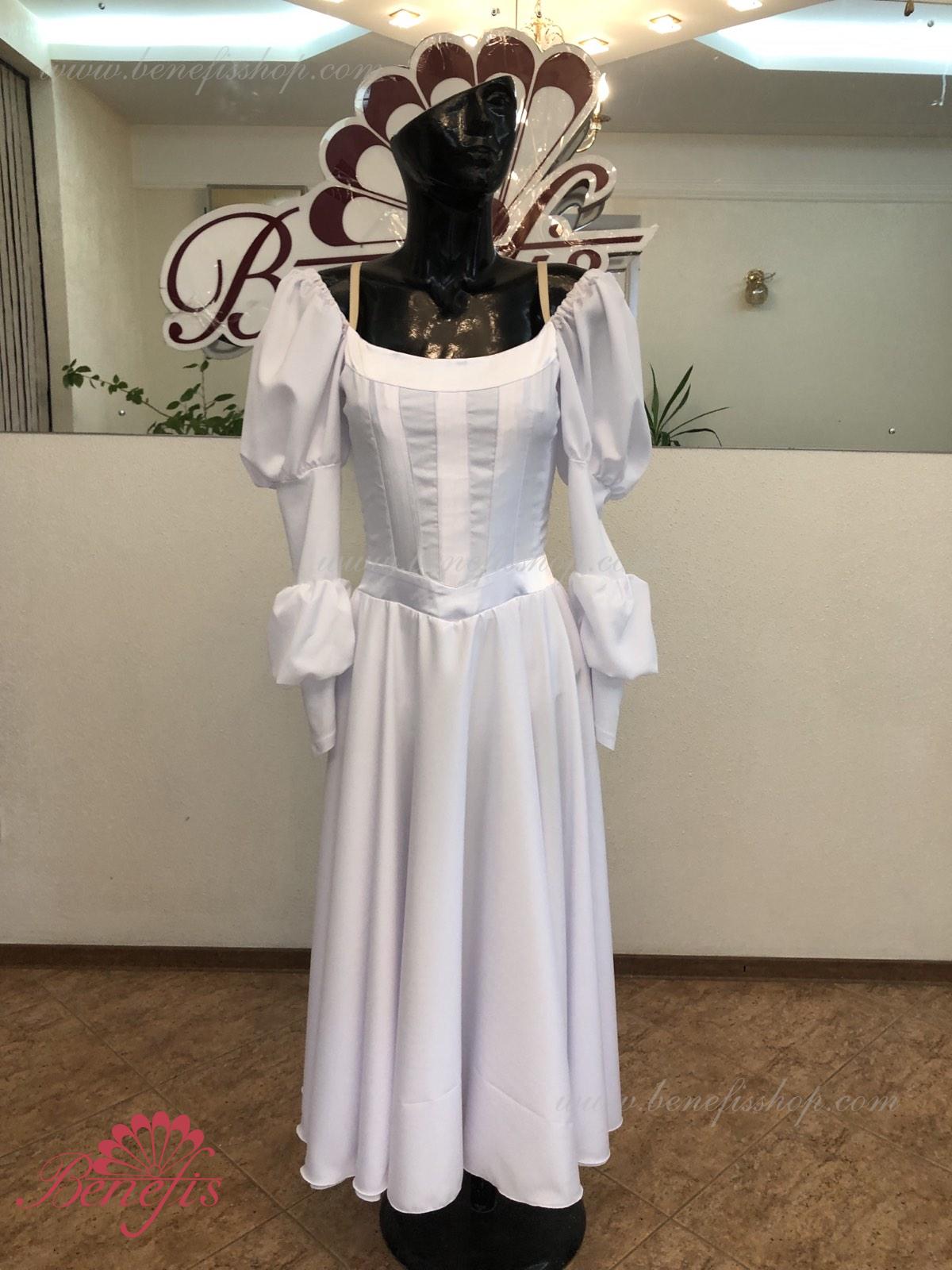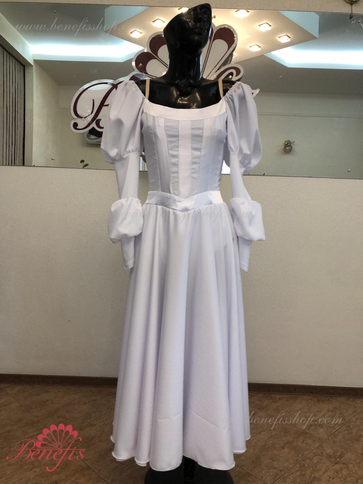Gentle ballet dress is made out of light chiffon, and the semi-stretched dense fabric, with long sleeves. The bodice on the elastic straps. The dress fastens on hooks.