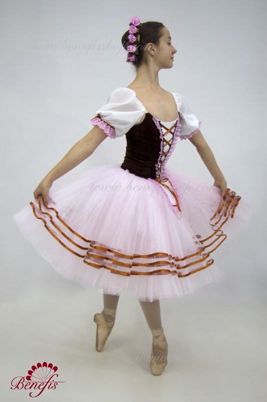 Details-dress. This professional stage ballet costume is made of semi-elastic dense fabrics, light tulle. The bodice is fastened at the back with two rows of hooks .for convenience, the bodice is equipped with an internal cord in the chest area. The side model of the bottom of the product is T0003. Only professional designers and tailors work on the costume. The suit can be made in any color at the request of the customer.