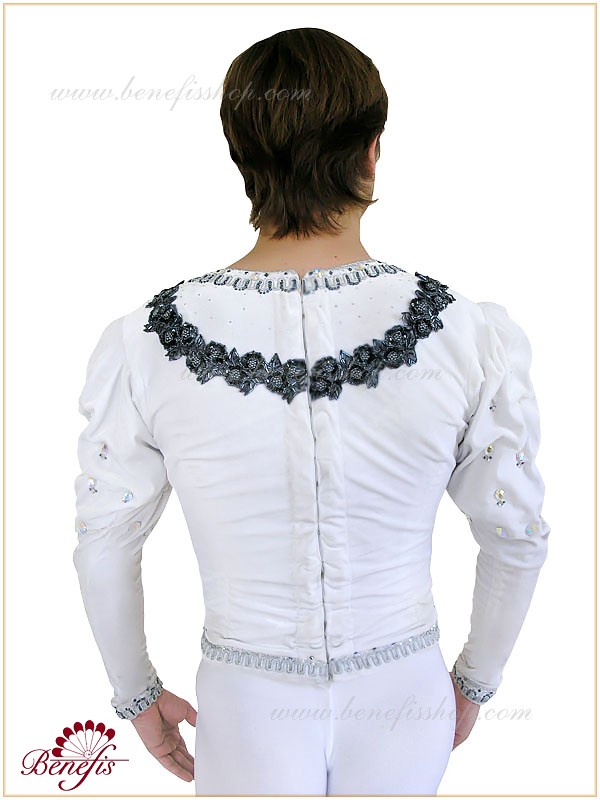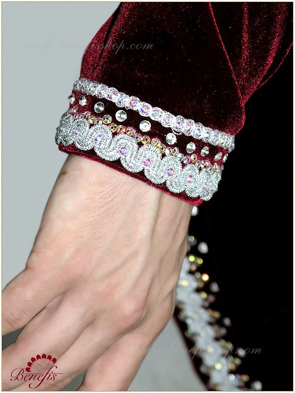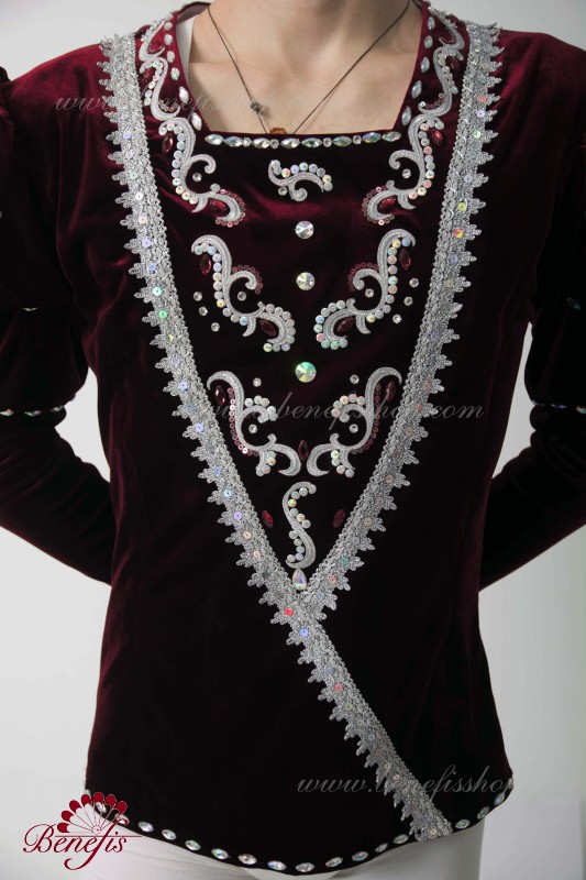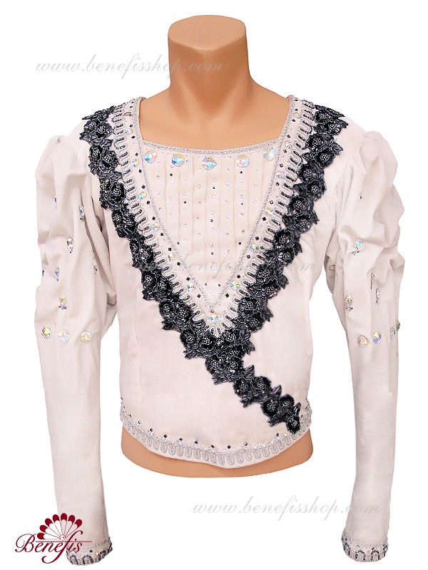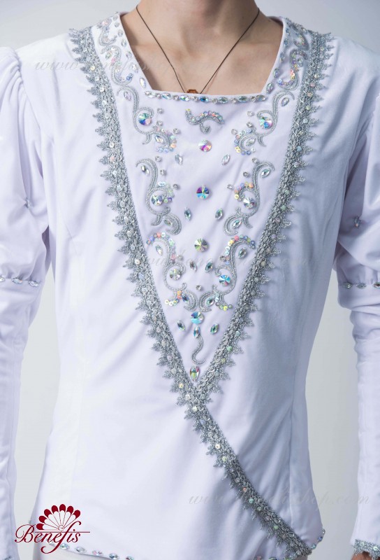 The tunic is decorated with large and small crystals and sparkles in rock crystal color and is embroidered with beads and bugles in metallic color.
