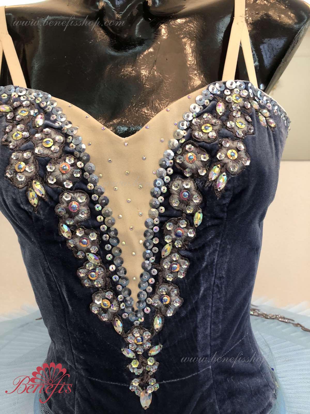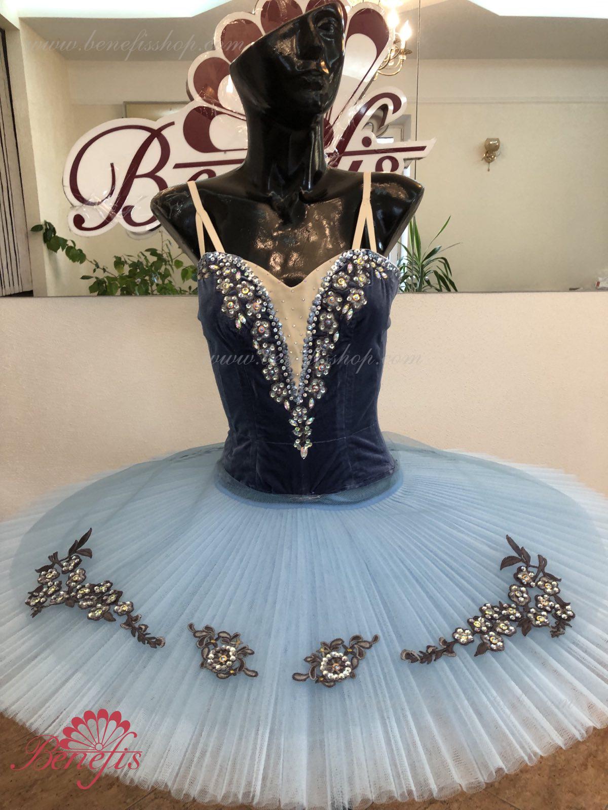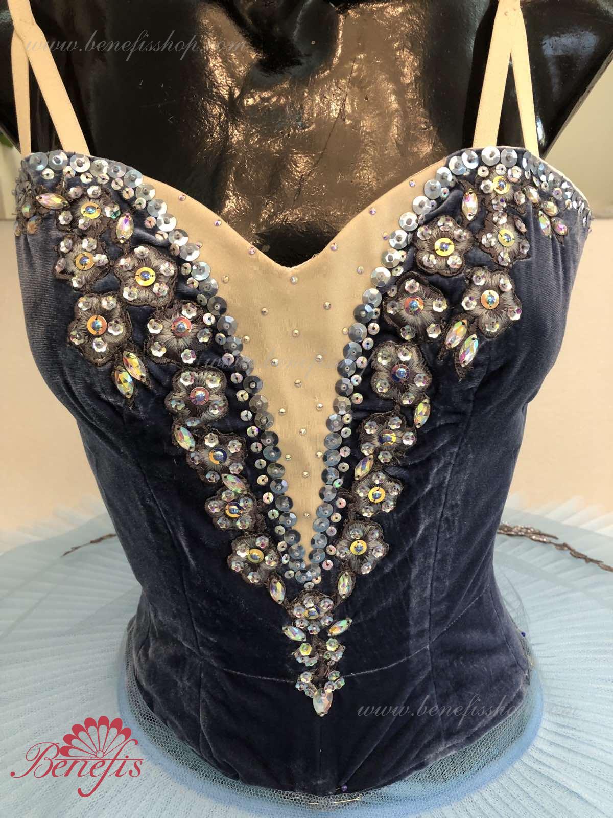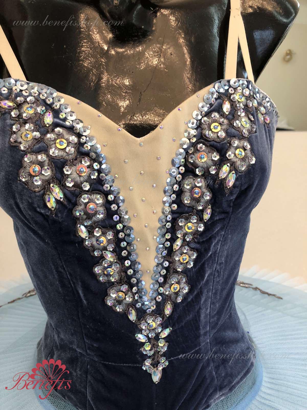 Tutu- Eight pleated graduated layers of semi-soft tulle- seven long and one short with tulle panties with a 10 cm bascque attached to an elastic waistband. Two crinoline hoops are sewed in the middle layer with two additional short frills at the edges. The length of the top layer of the tutu is 36-38 cm, each next layer is shorter with 4 cm than previous . The tutu is fastened at the back with 6 large hooks and loops.