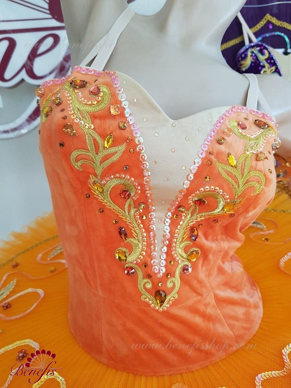 It is a professional stage costume, which is made on the basis of the professional basic tutu #T0001B (see section “Basic tutus”).