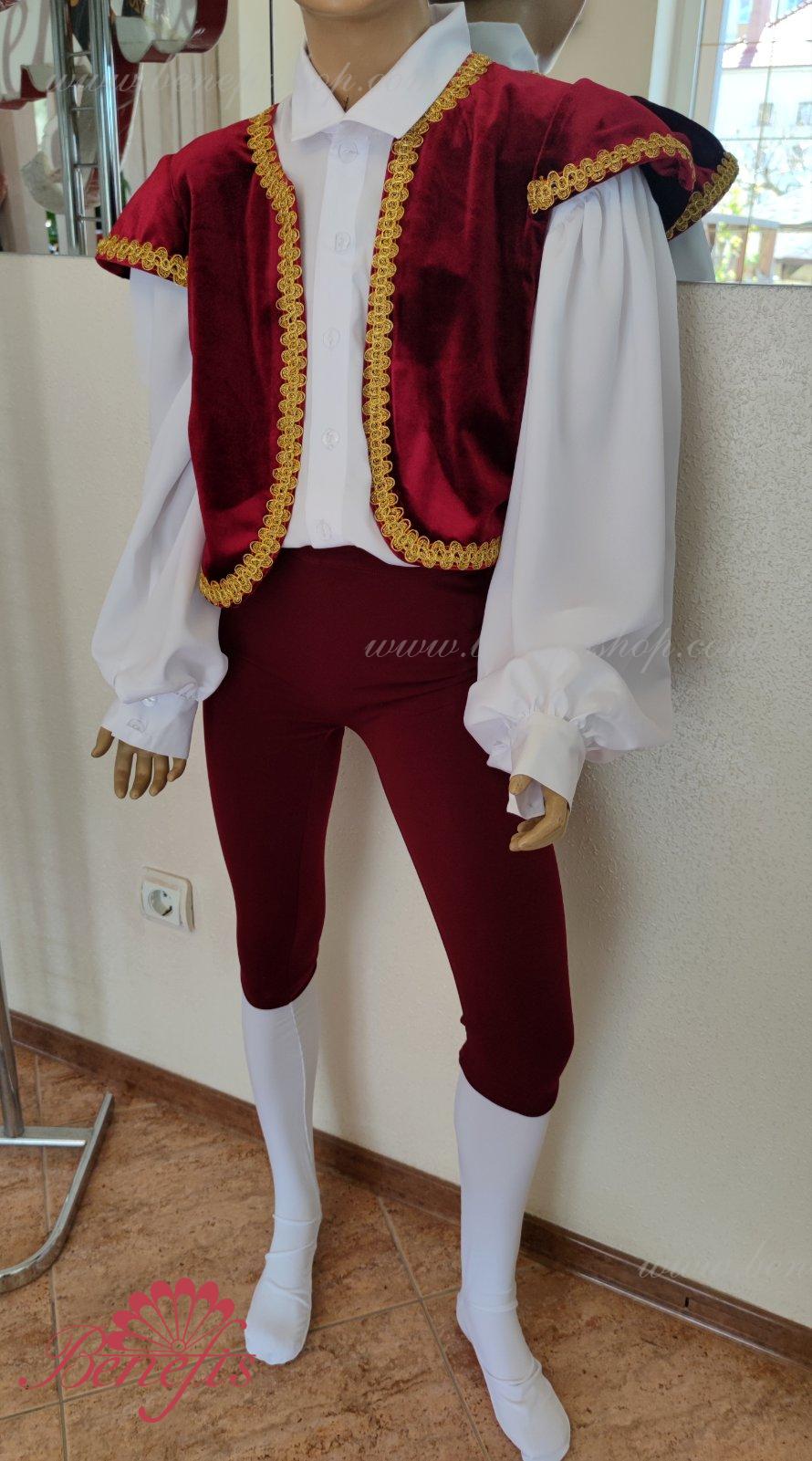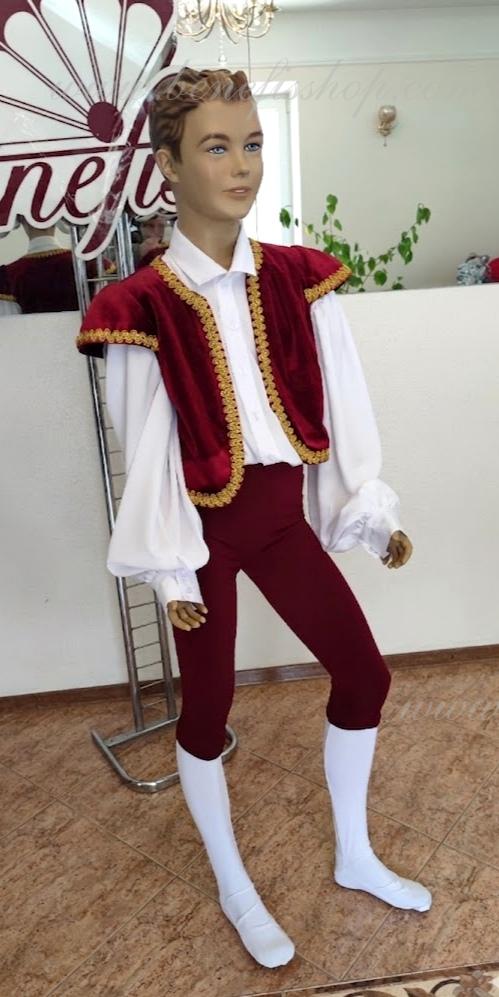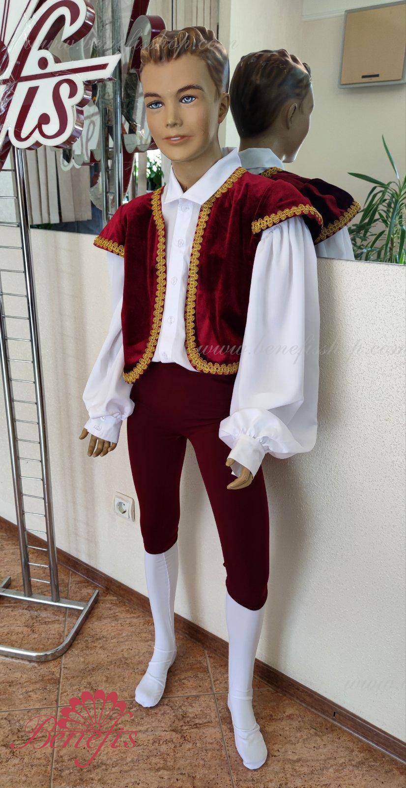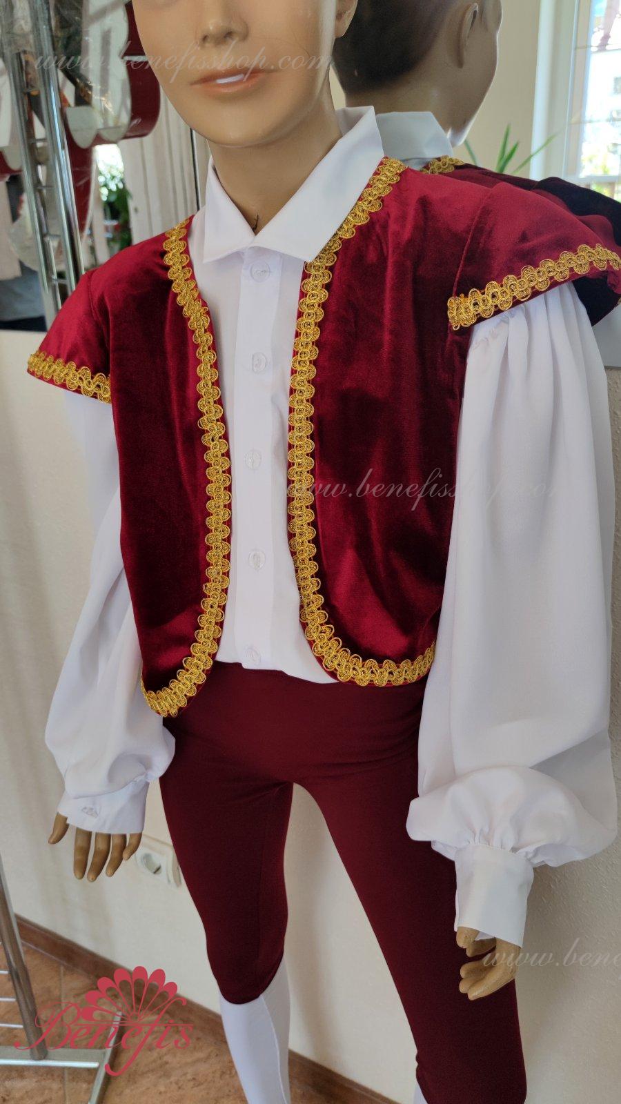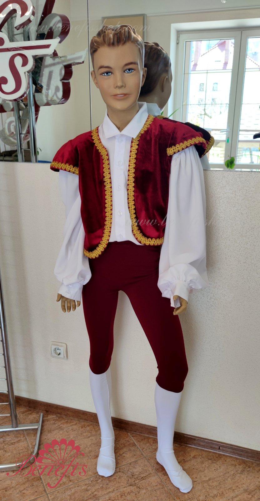 Tights - made of 2 types of elastic fabric, the upper part of the velvet, the lower part of biflex.The vest is made of velvet, with a lining decorated with braid.