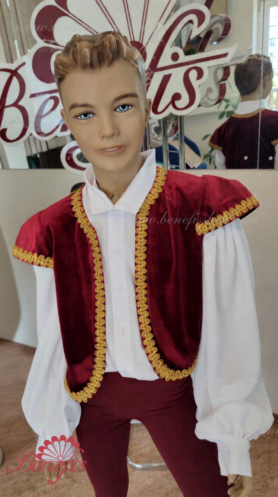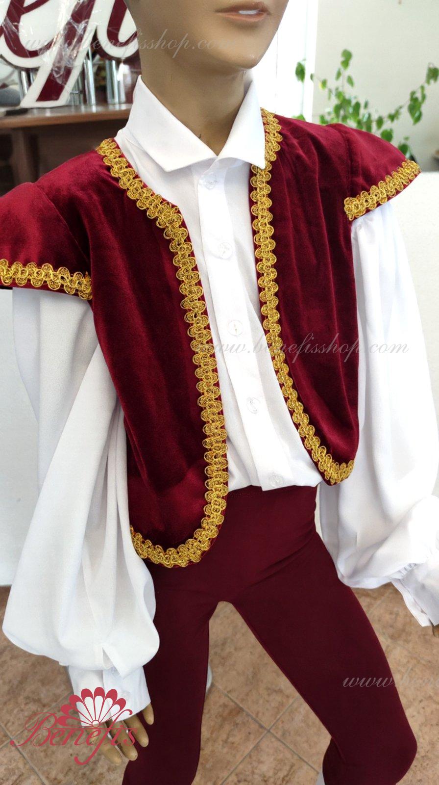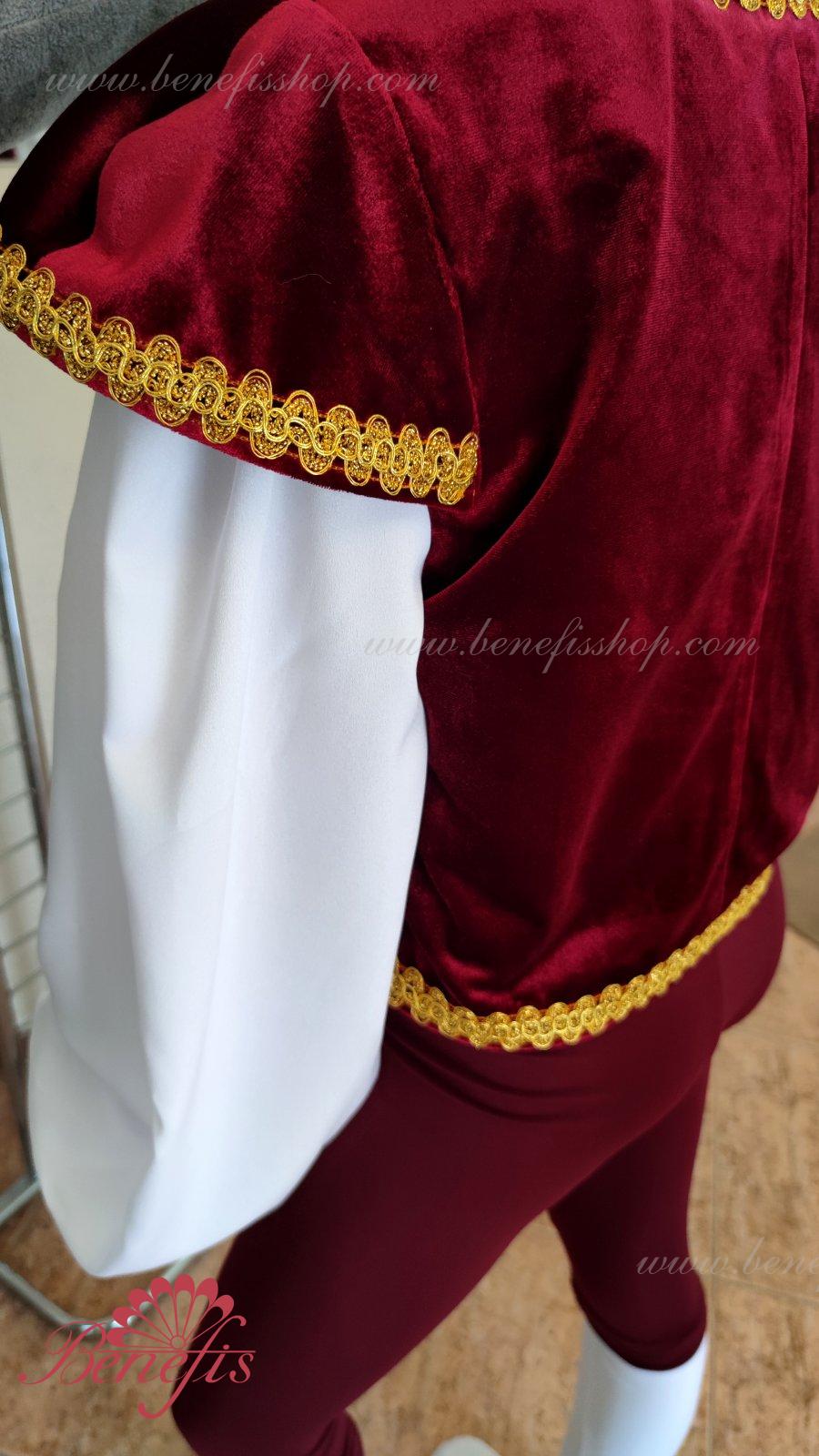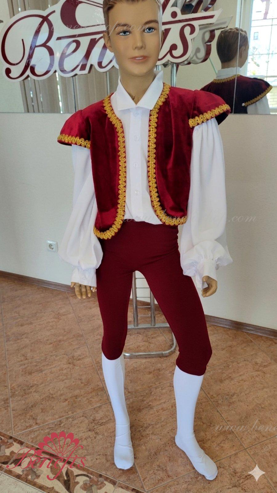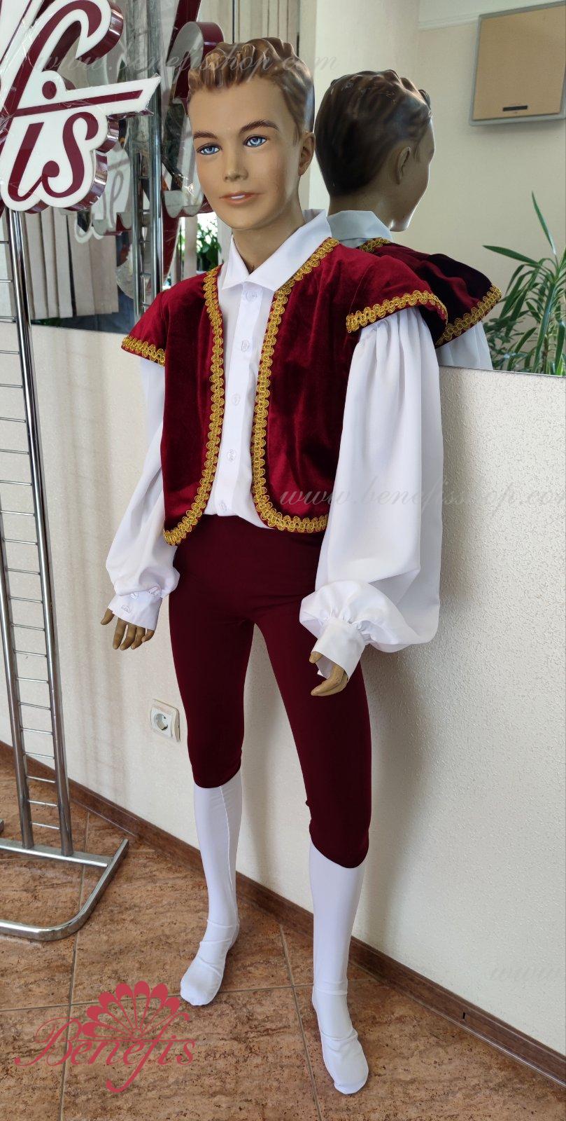 Tights - made of 2 types of elastic fabric, the upper part of the velvet, the lower part of biflex.The vest is made of velvet, with a lining decorated with braid.