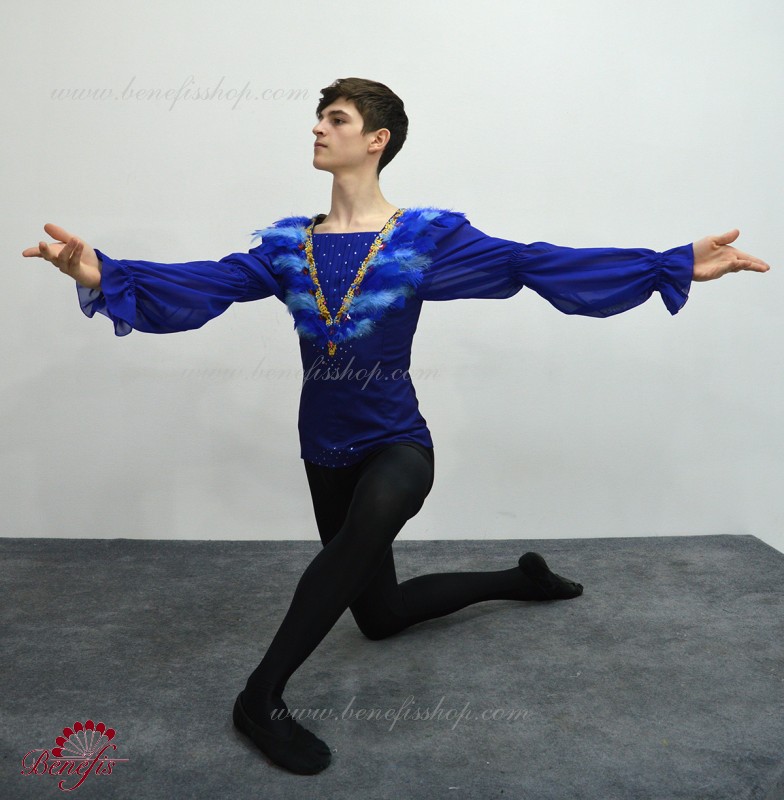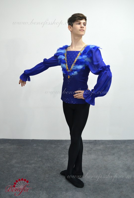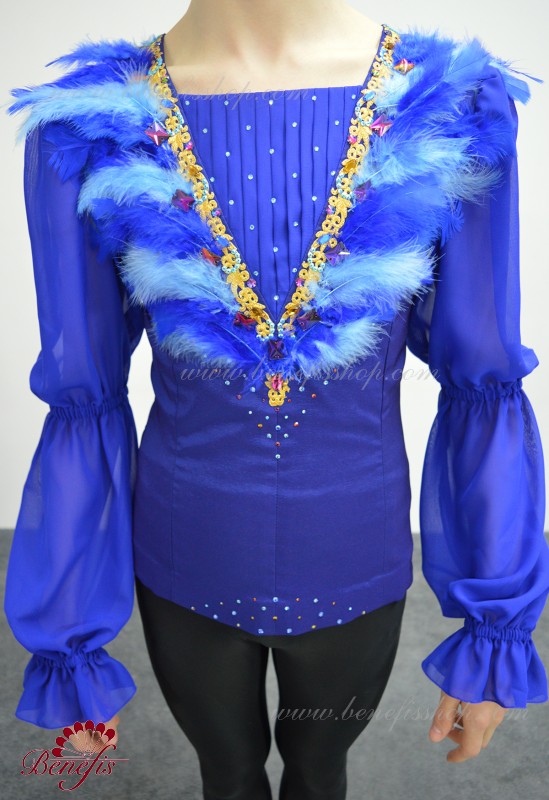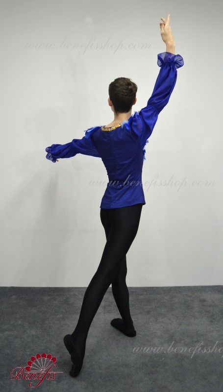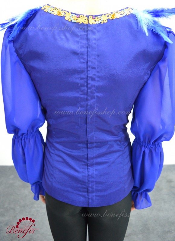 The cleave is made out of semi-elastic fabric (taft). The clasp is on the back with two rows of hooks. On the front side there is a chiffon appliqué with folding. The sleeves are made out of chiffon and are regulated with a drawstring.