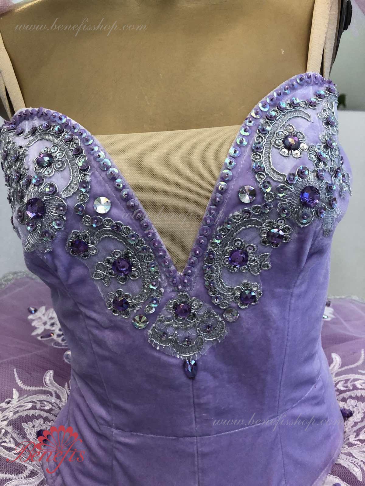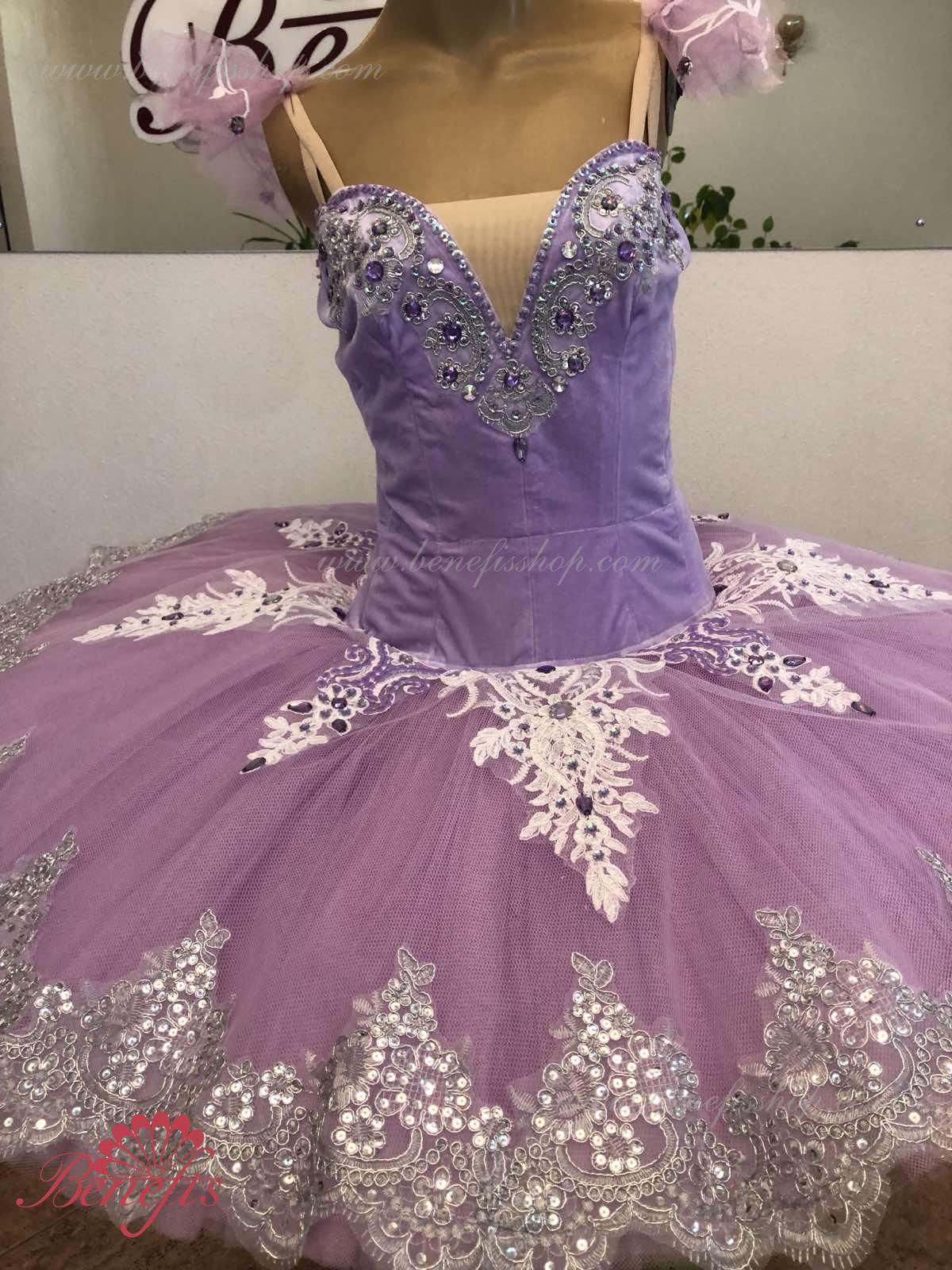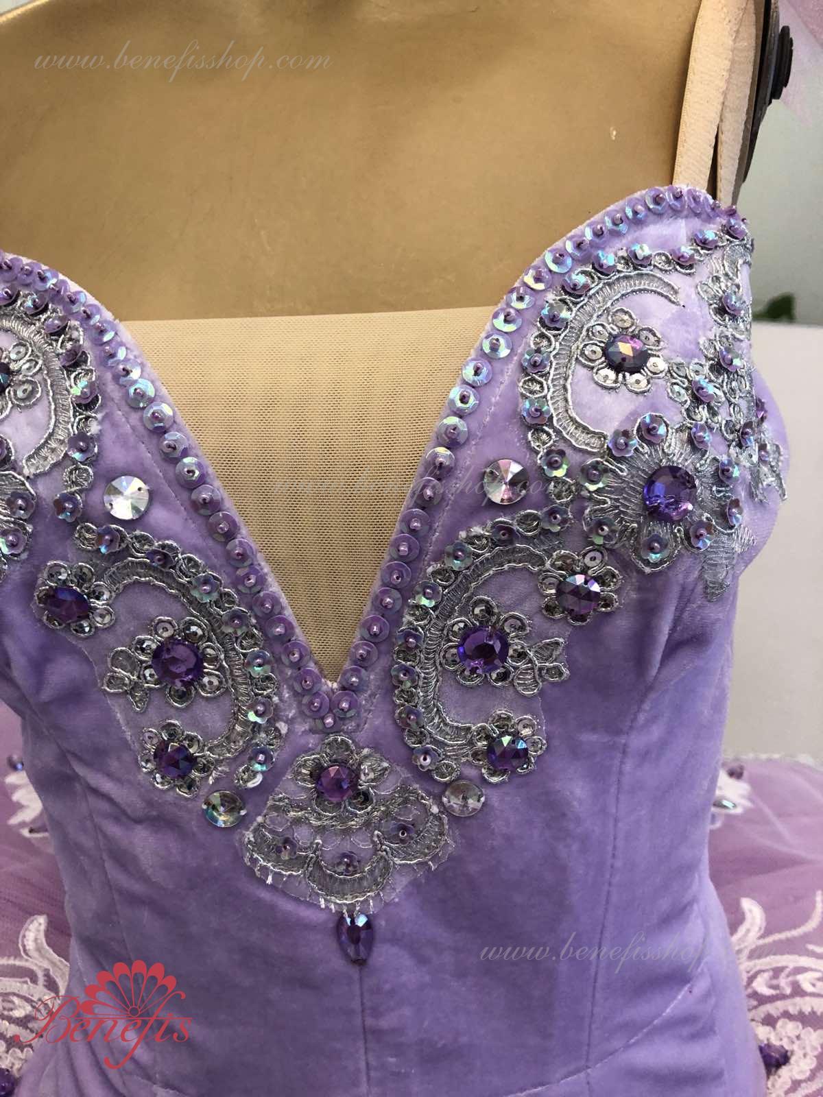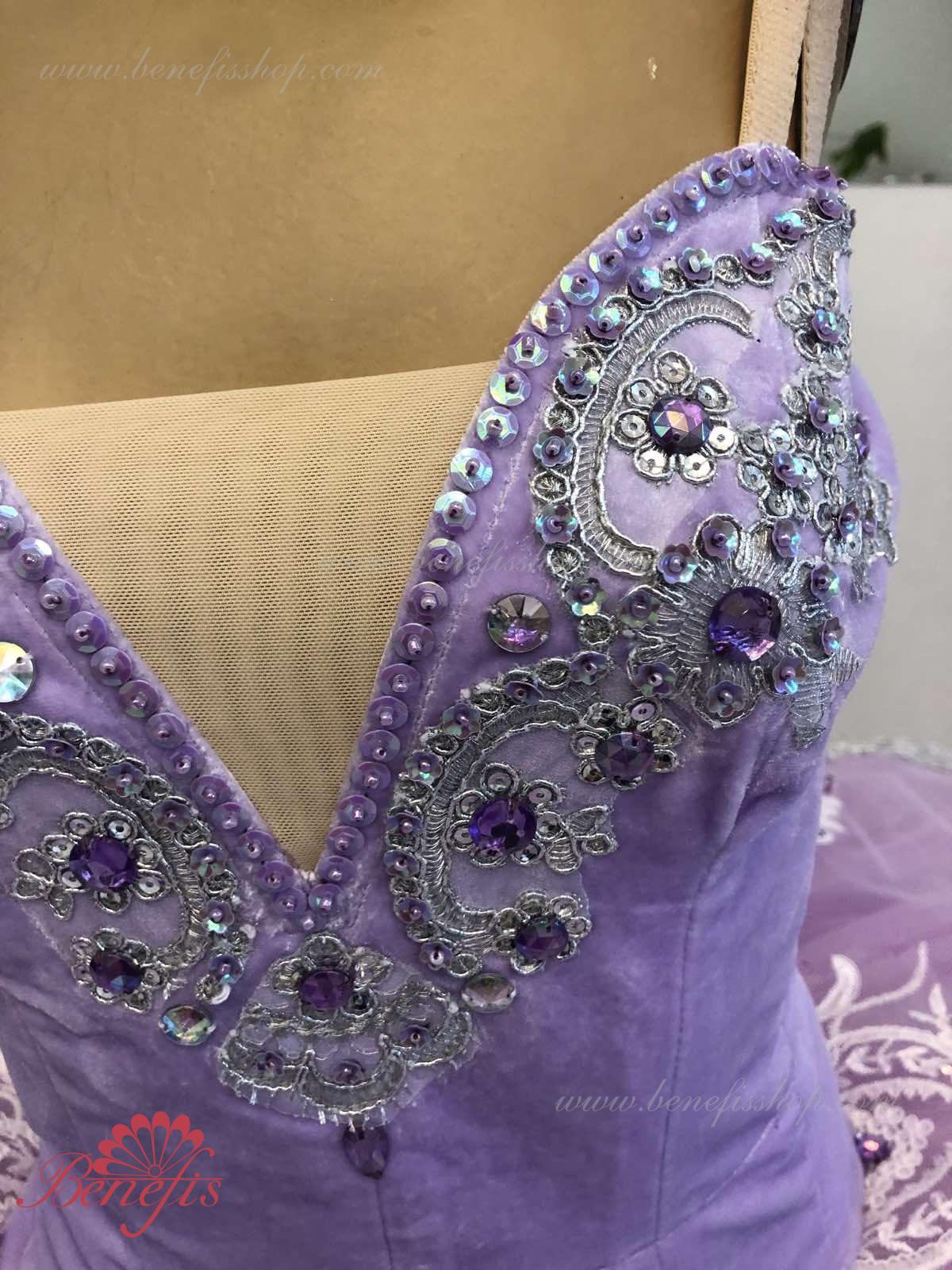 Details: costume, tire and sleeves. The bodice, with elastic straps and a flesh insert on the chest, is made of velvet. The bodice is fastened with hooks in two rows for easy adjustment, the inner cord is used to tighten the bodice in the chest area.Tutu skirt. It is made of 9 layers of soft and hard tulle with 1 crinoline. The edge of the pack is 38-42 cm. Applications, rhinestones, and sequins are used as decorative elements. The originality of the costume lies in the skillful handwork. At the request of the customer, the suit can be made in a different color.