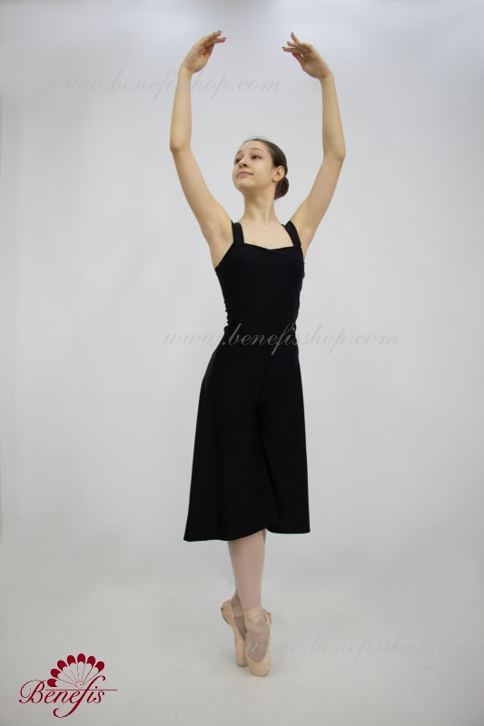 Details: overalls, trousers. Jumpsuit with straps made of biflex. The bottom of the product is wide trousers.