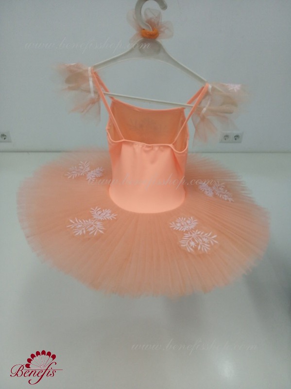 Details: tutu on an elastic bodice, sleeves. It is a professional stage ballet costume based on the A 0001 leotard made of elastic supplex. The swim costume has original embroidery. Leotard is connected with a tutu, which in turn consists of 5 layers of soft tulle. The crinoline is embedded in the middle seam, which gives the shape of the tutu. There are appliques along the top layer of the tutu. Only professional designers and seamstresses work on the product. The costume can be made in any color at the customer's choice.