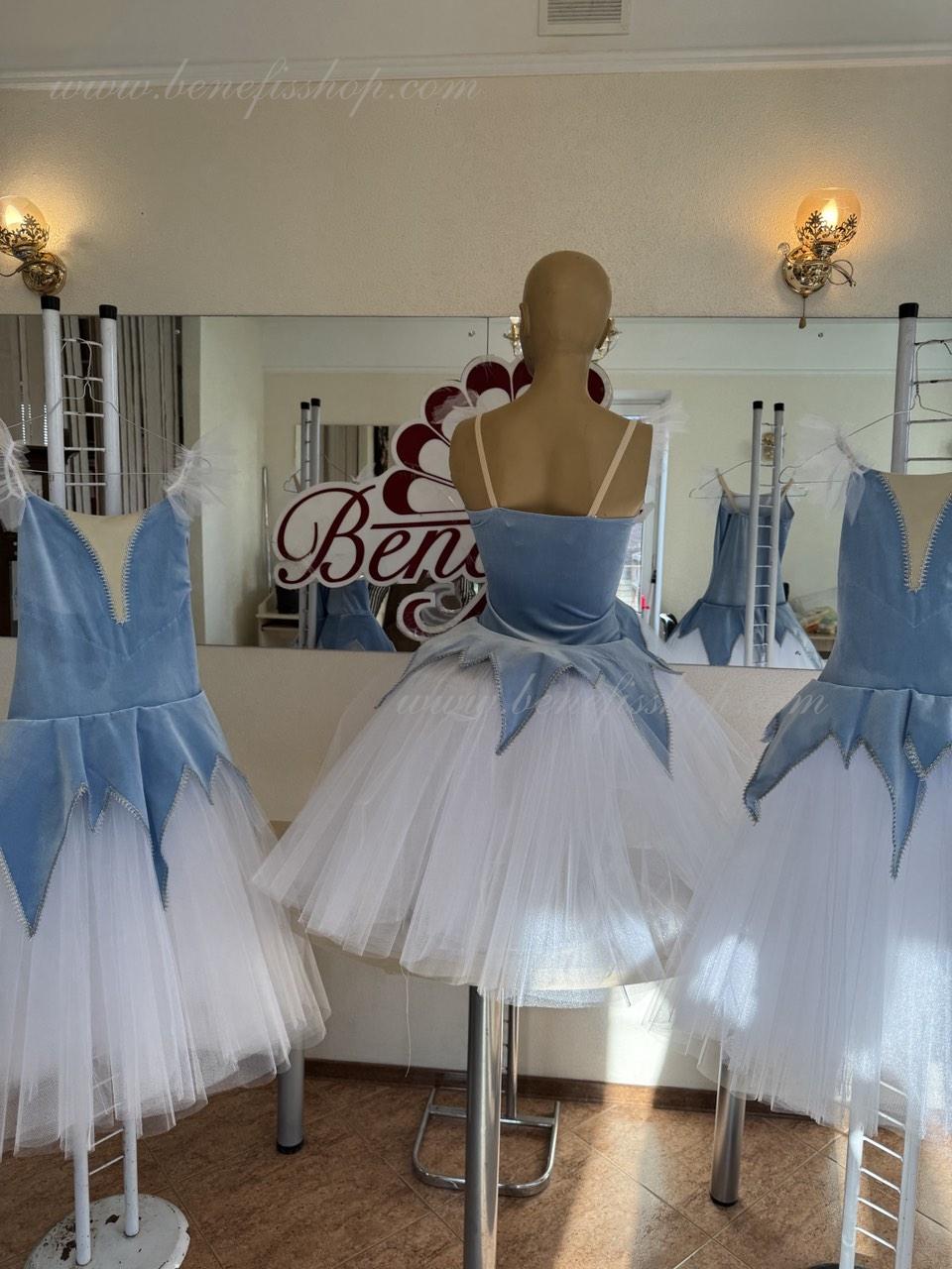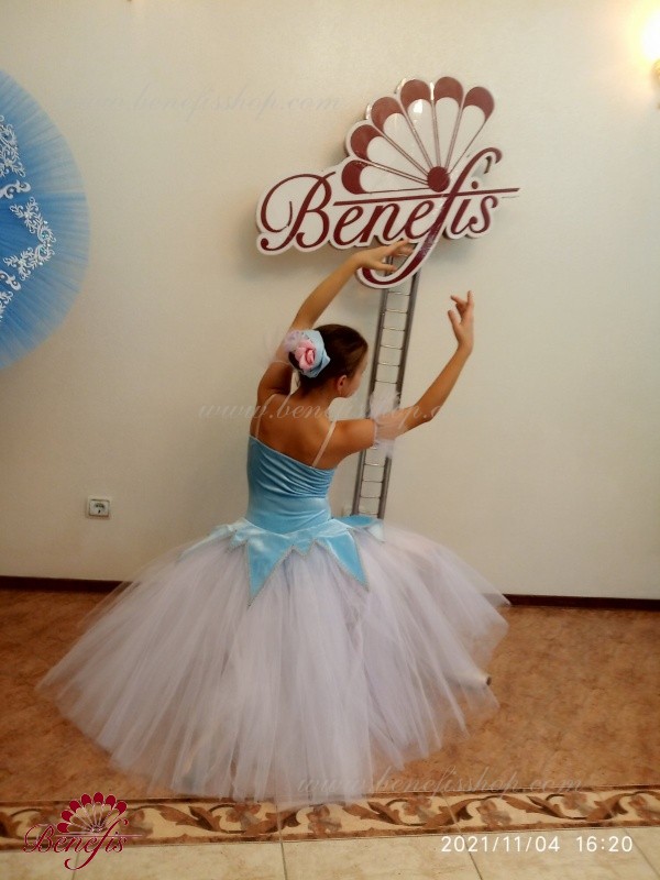 The skirt is made from 4 layers of tulle sewed to the unitard.