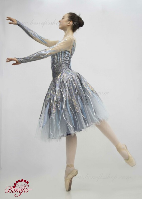 This is a professional stage ballet costume. Made of semi elastic dense hologram spandex fabric.