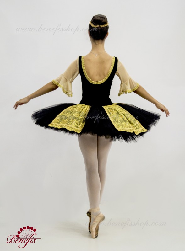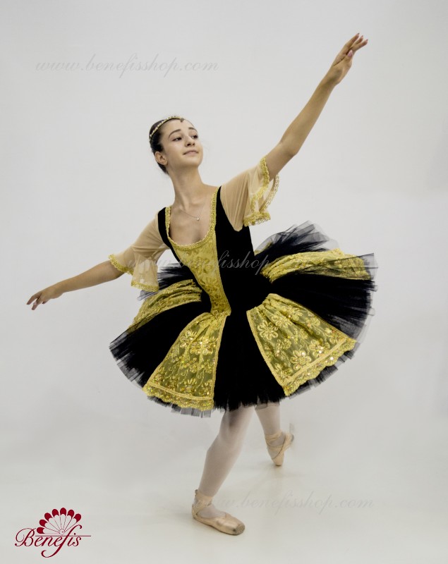 Details: costume. This is a professional, stage, ballet dress. Made of semi-elastic velvet combined with mesh and lace. The bottom of the product is based on the basic tutu T0001R. A braid and a lace coupon are used as decoration. The product can be made in any color at the customer's choice. Only professional designers, seamstresses and decorators work on the product.