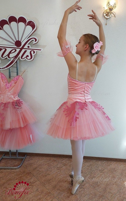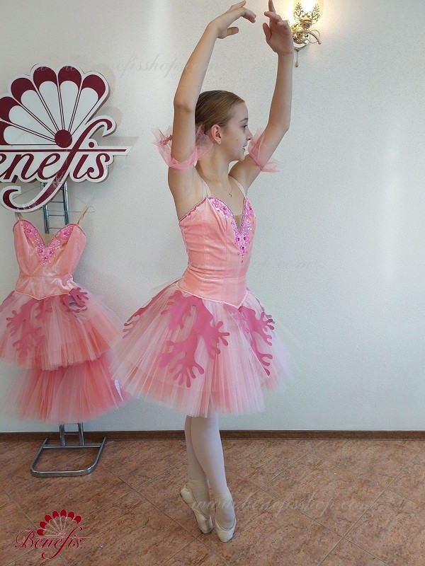 Details: dress + sleeves. This is a professional, ballet, stage costume. Based on the basic model T0009 and T0003.It is made of semi-elastic dense velvet.Applications, sequins, rhinestones, beads are used as decor.