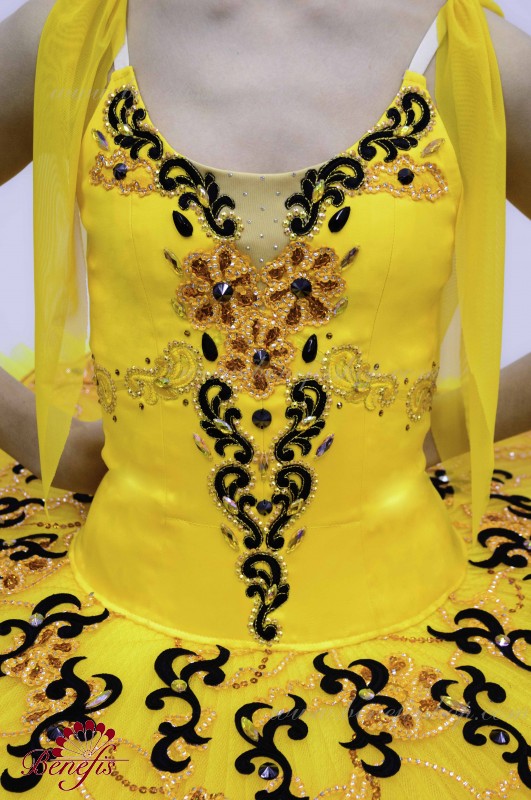 The bottom of the product is based on a basic T001B bundle of semi-rigid tulle. As decor are used guipure, applications, sequins, stones and rhinestones.