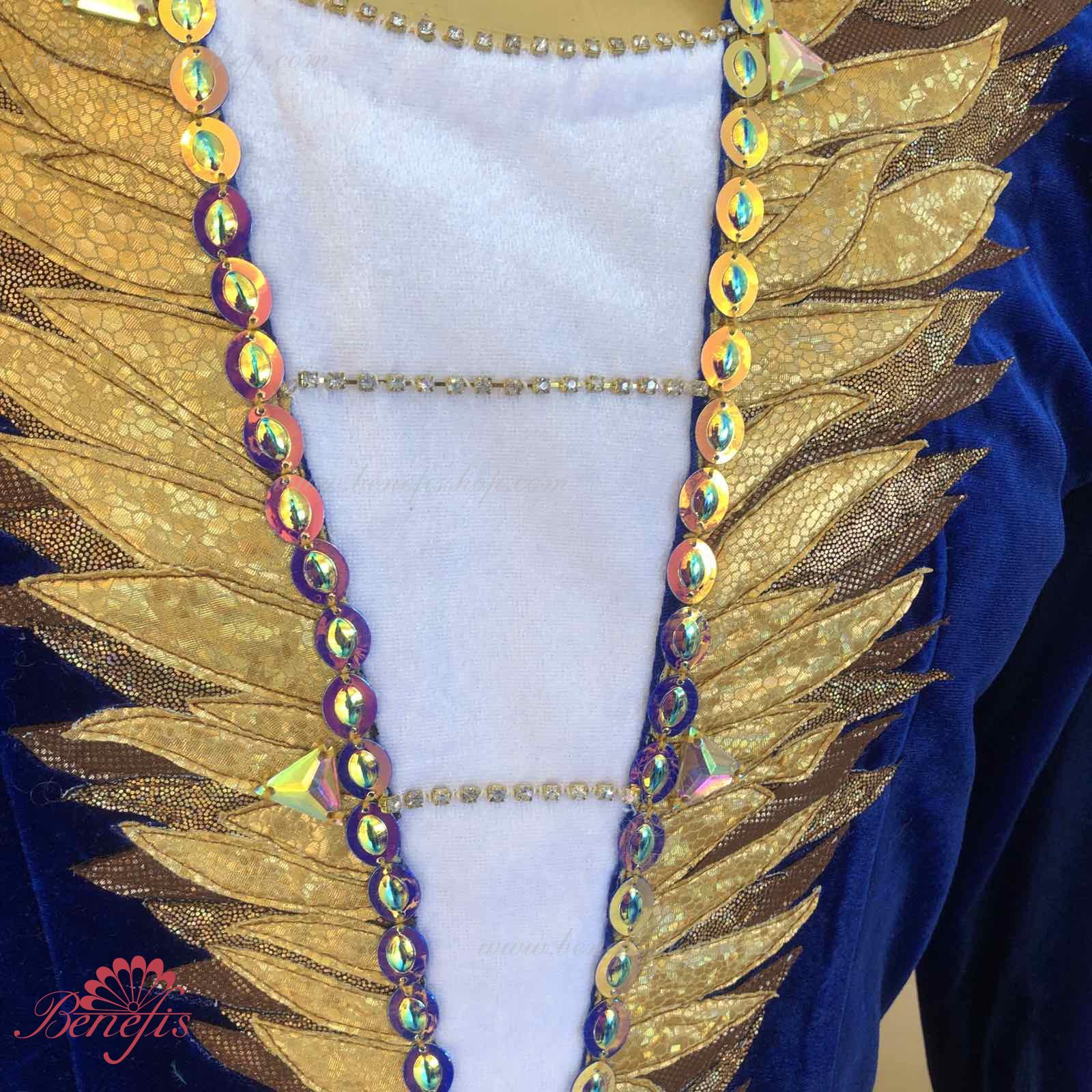Details: tunic. It's made of velvet. It is decorated with elements of laser biflex, sequins and rhinestones.