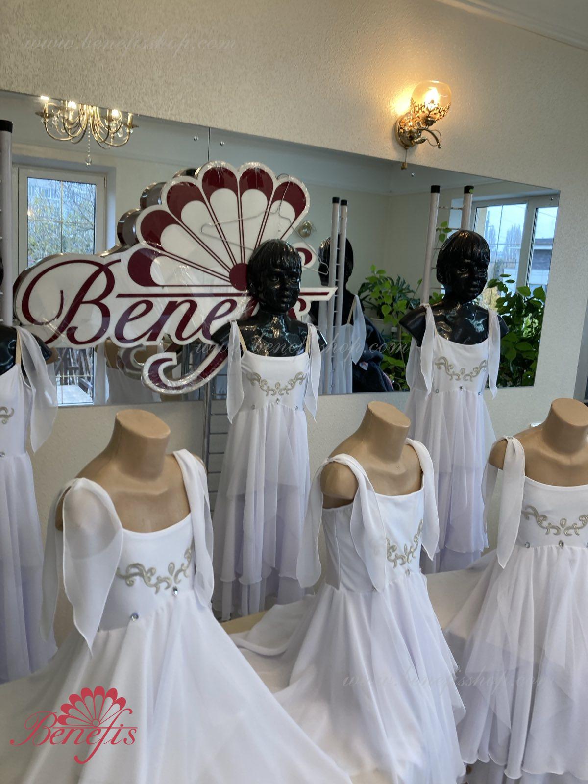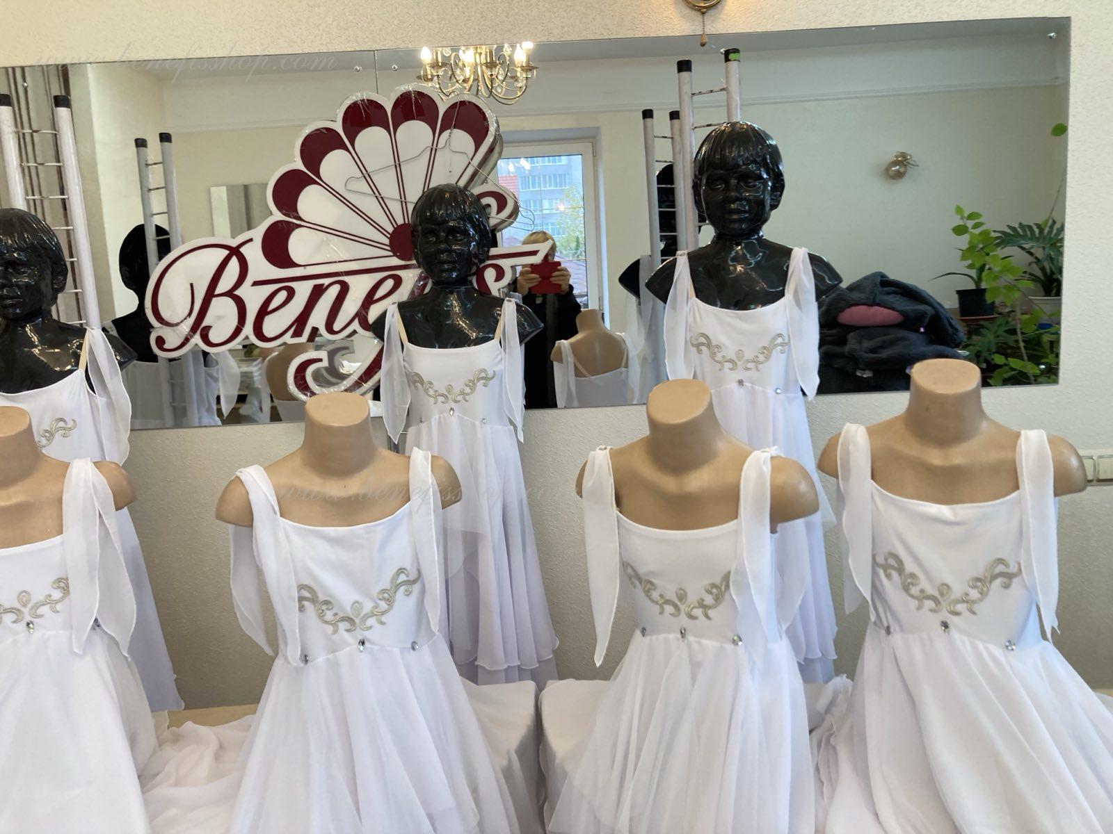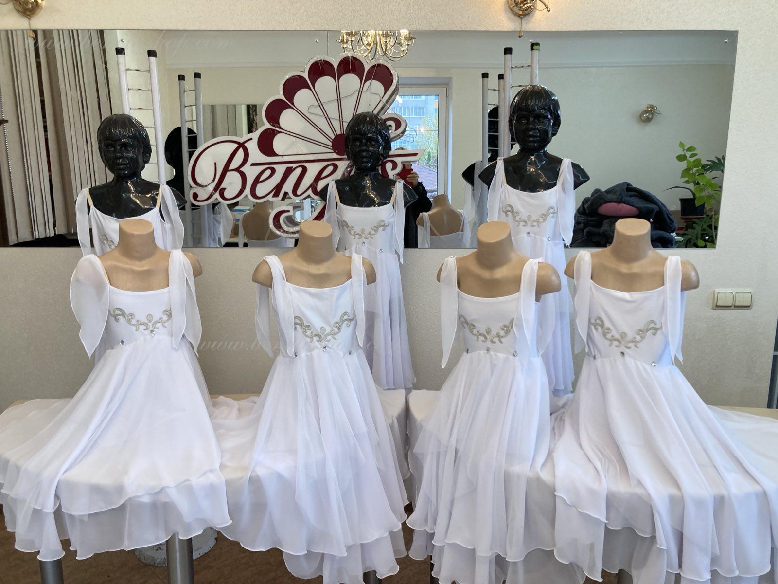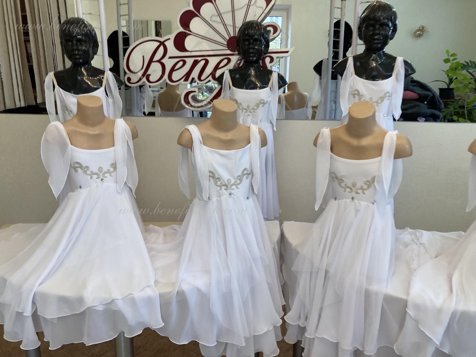 The skirt consists of 2 layers of chiffon. Imitation of chiffon sleeves.
