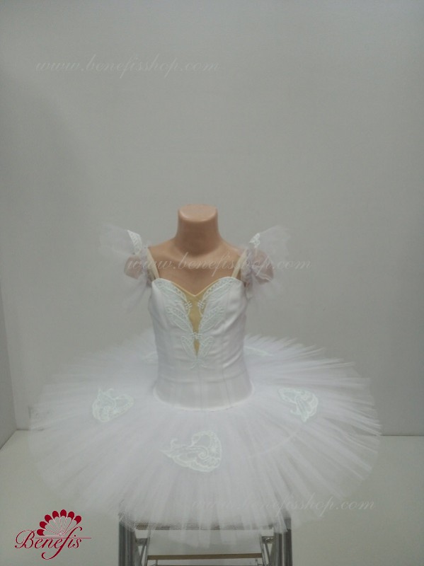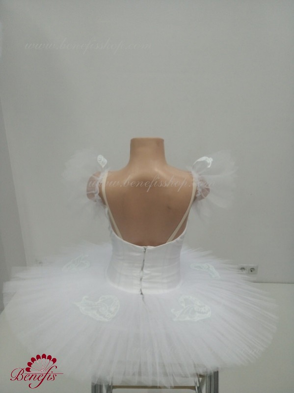 This professional ballet stage costume is made on the basis of a professional basic tutu # T 0001Z (see the section "Basic and rehearsal ballet tutus"). The bodice, with elastic straps and a body insert on the chest, is made of dense semi-elastic fabric.