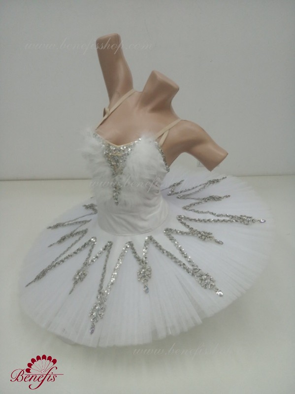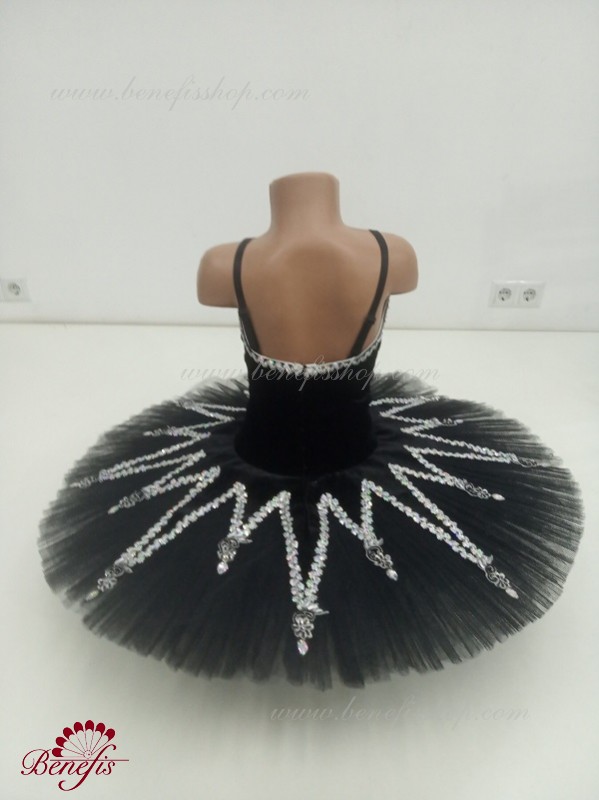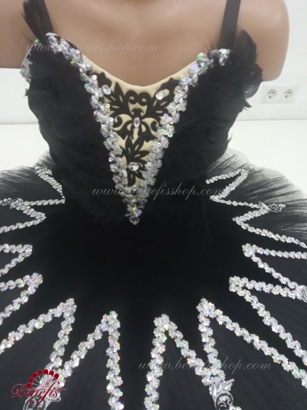 This professional ballet stage costume is made on the basis of a professional basic tutu #T0001B (see the section "Basic and rehearsal ballet tutus") with an attached peplum in the form of long and short triangular shapes. The bodice with elastic straps and a body insert on the chest is made of velvet.