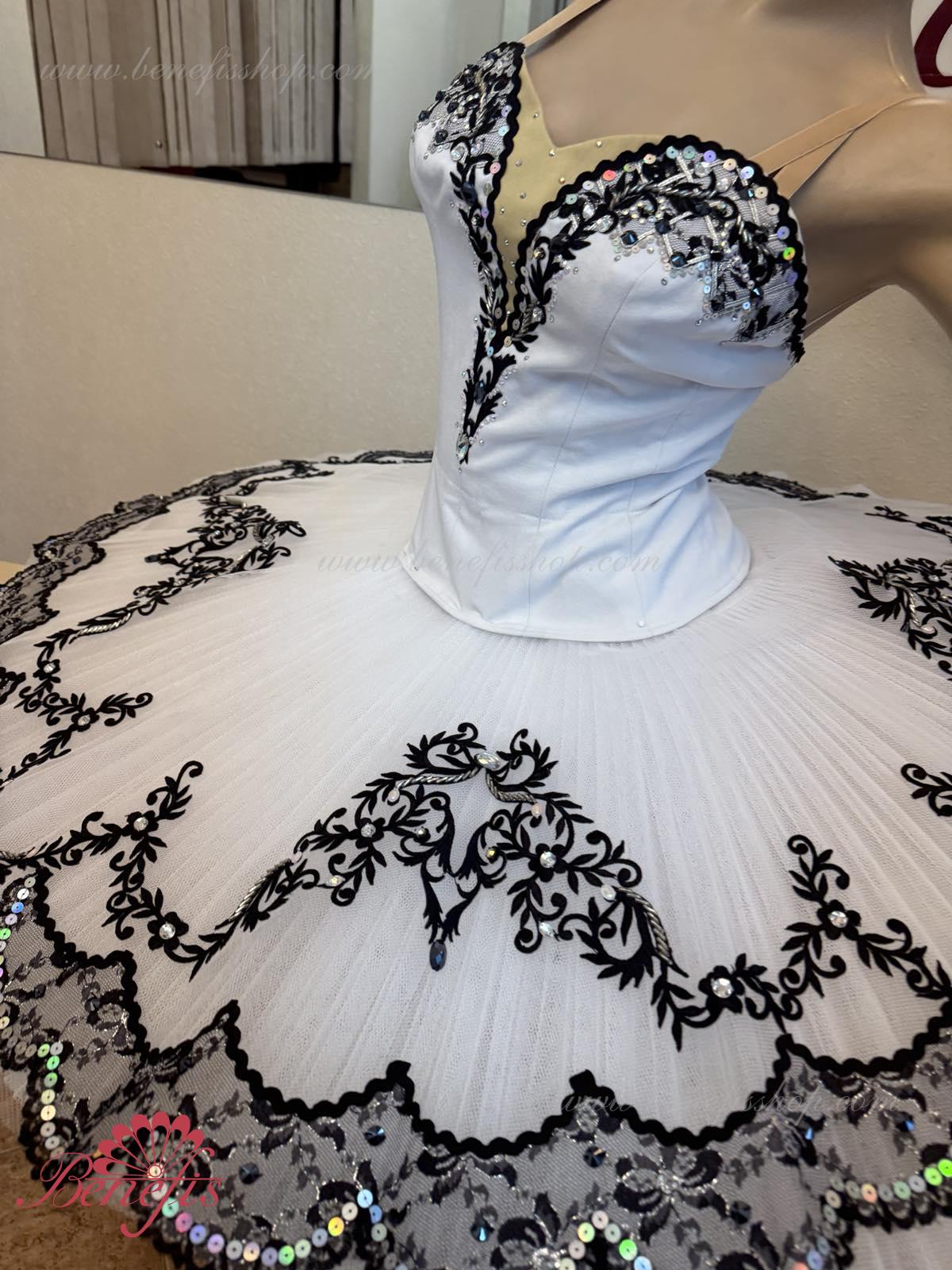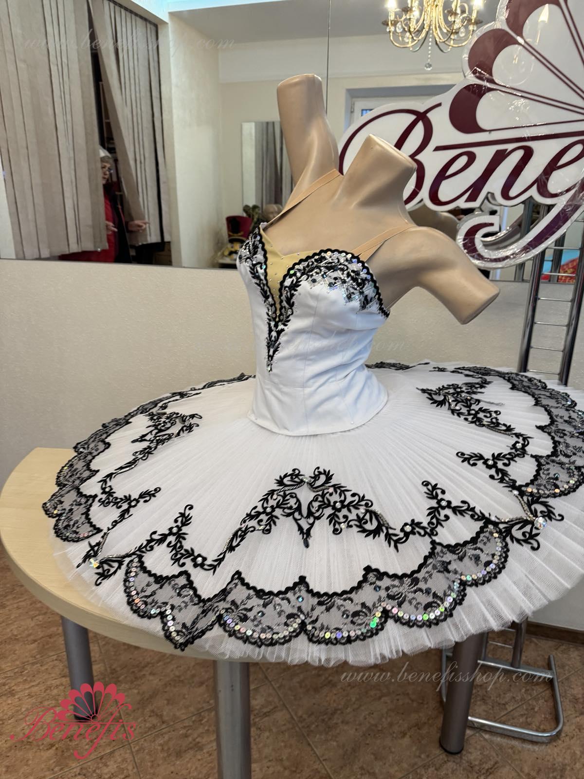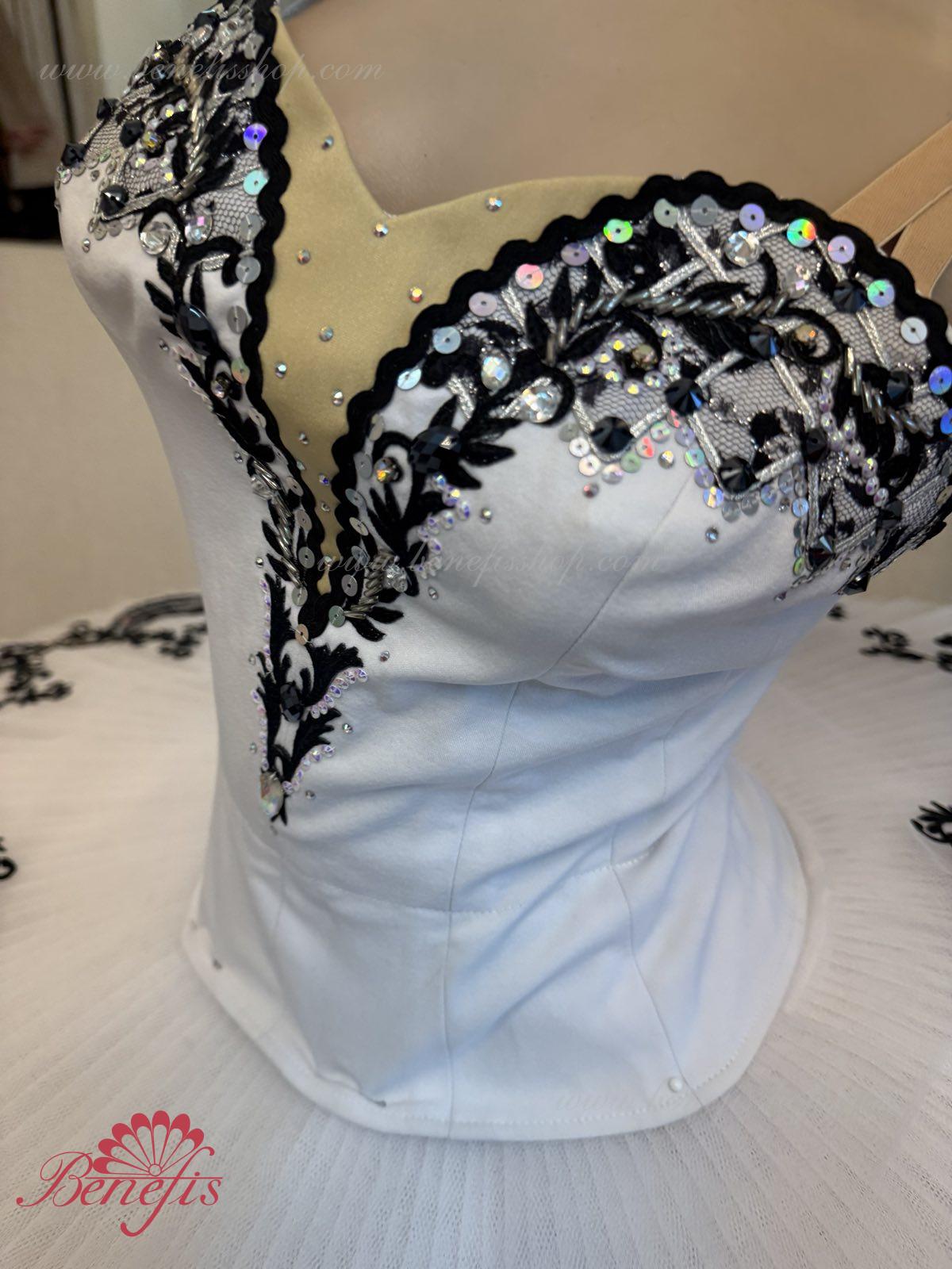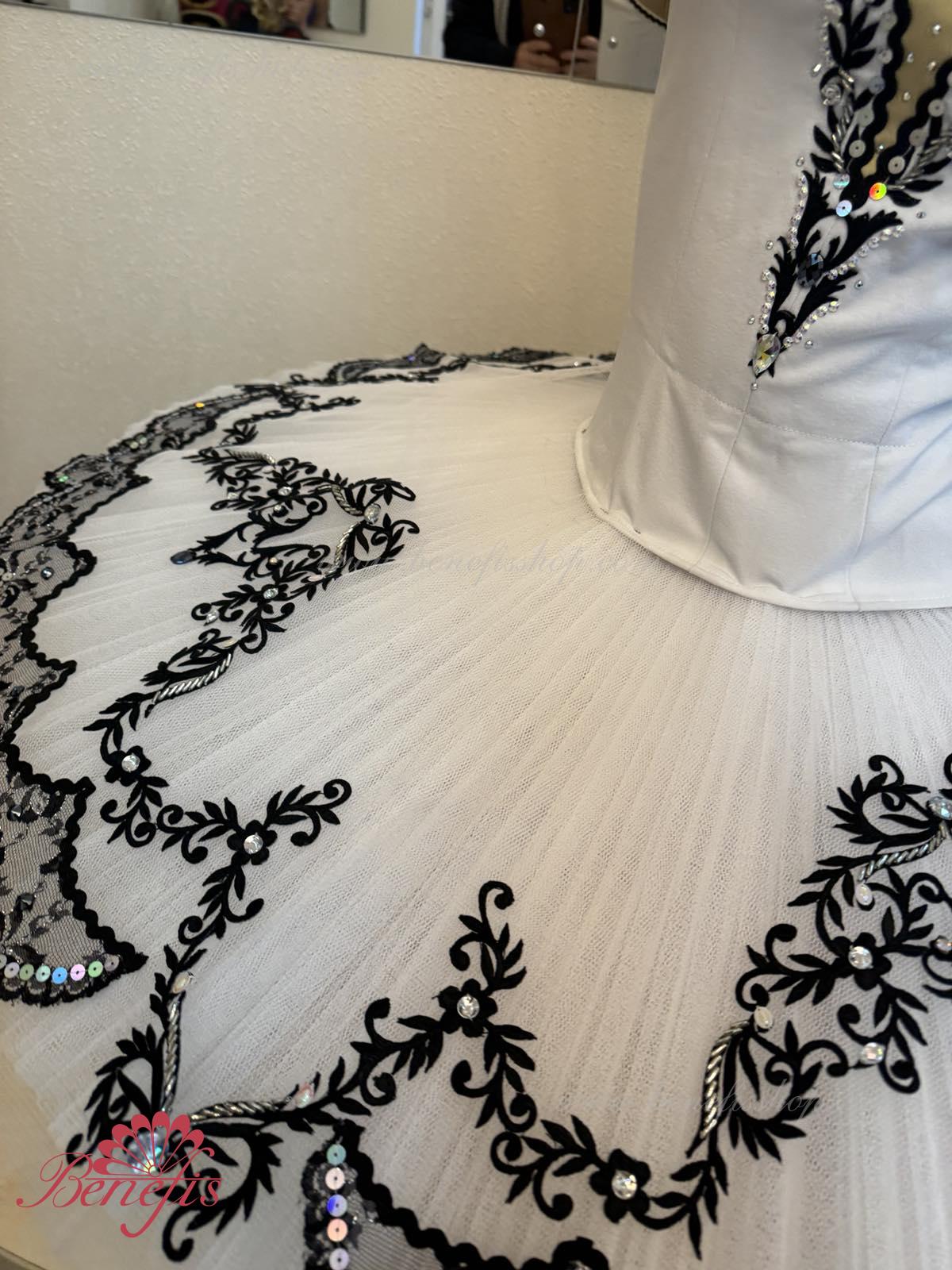 The costume is made on the basis of the professional basic tutu # T 0001B with run-flat edges (see section "Basic tutus").