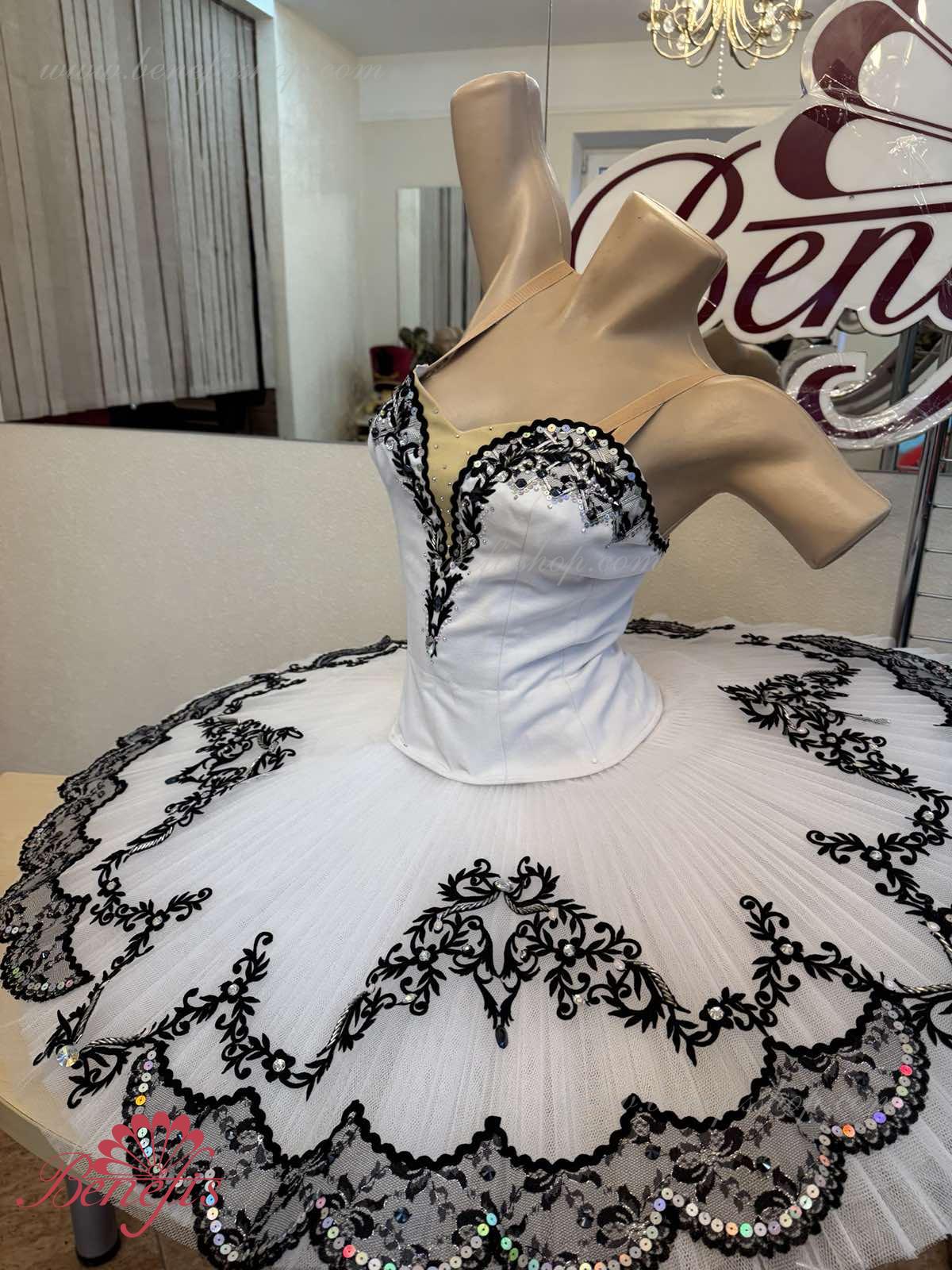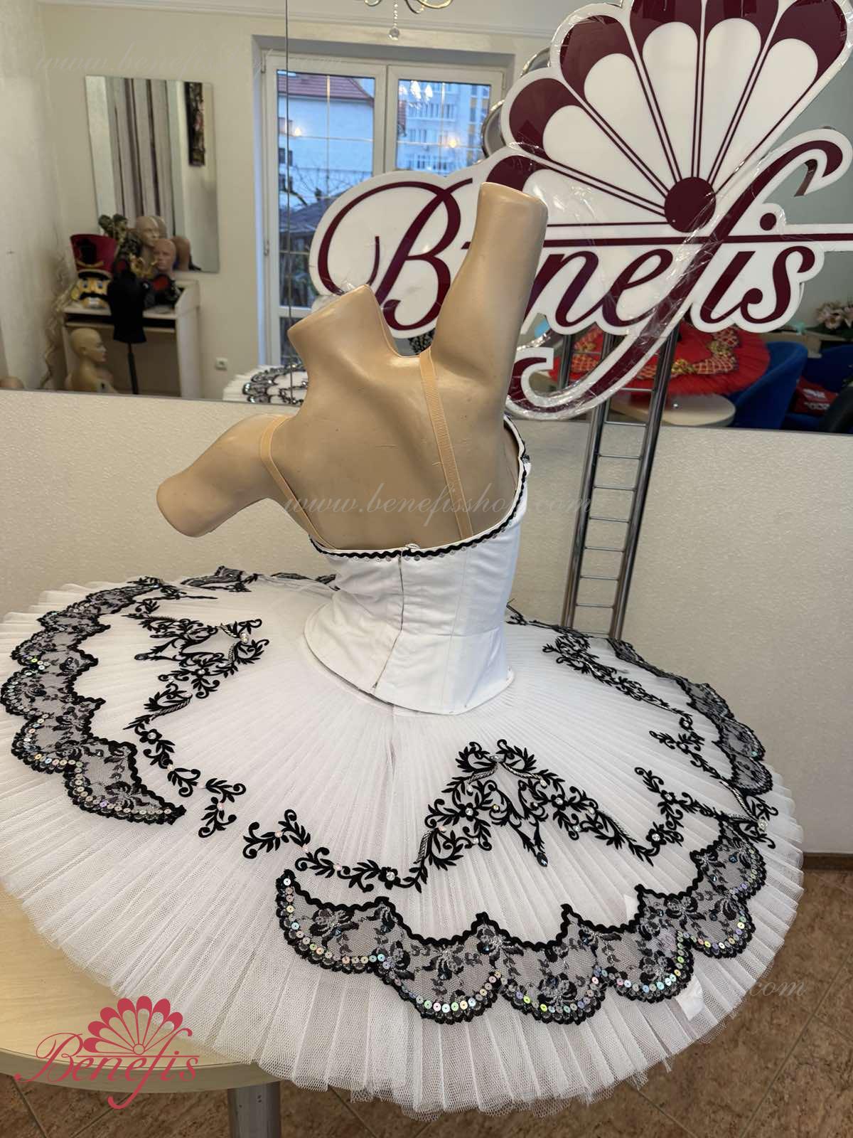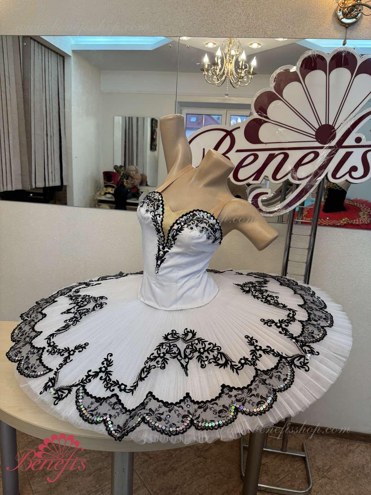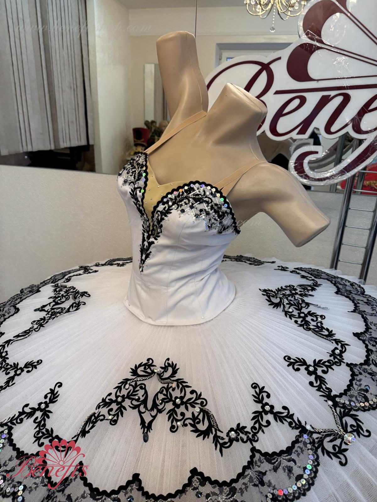 The costume is made on the basis of the professional basic tutu # T 0001B with run-flat edges (see section "Basic tutus").