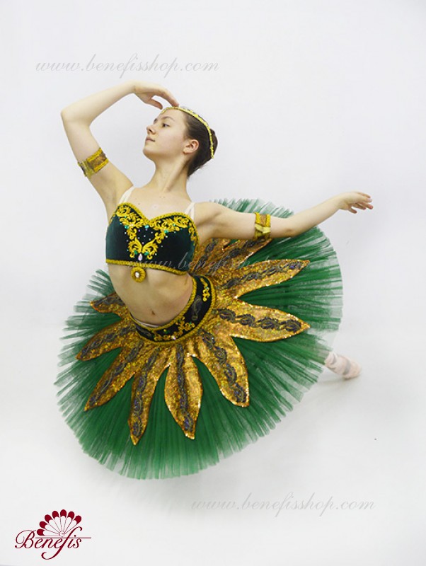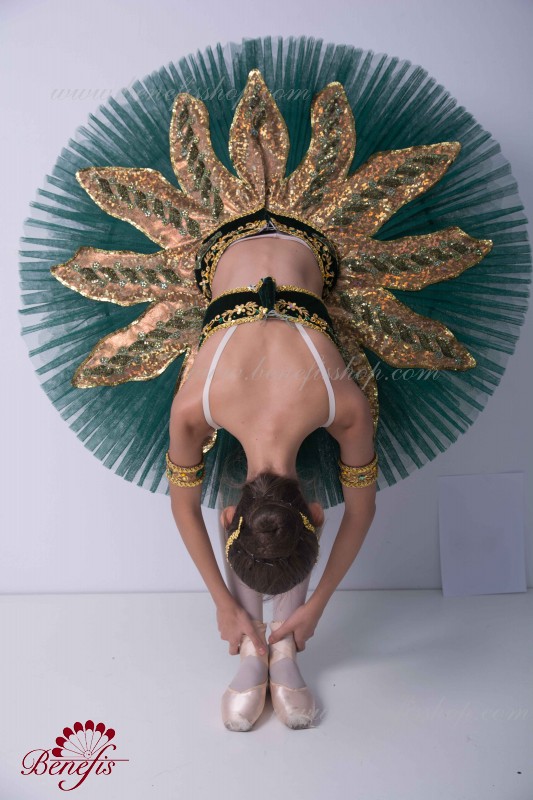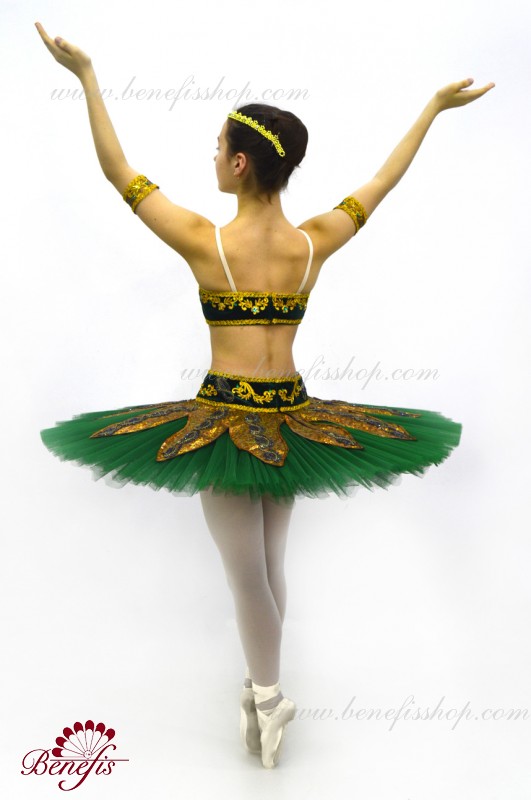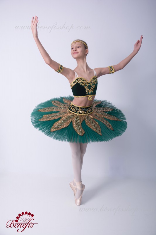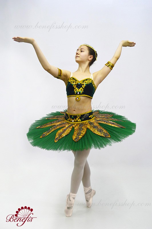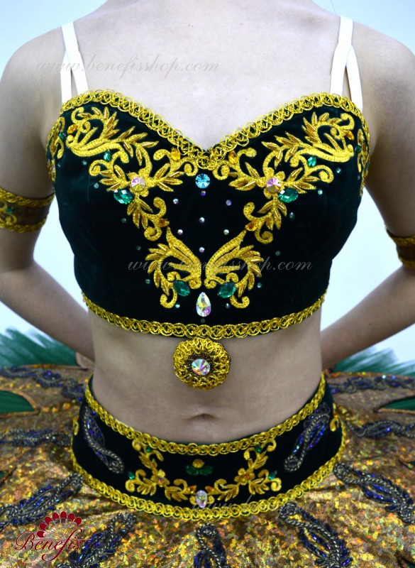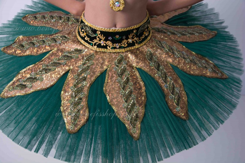 Professional stage costume made on the basis of the basic tutu T0001B. The bodice is made of elastic fabric and two parts such as a cropped bodice and a yoke.