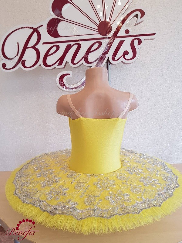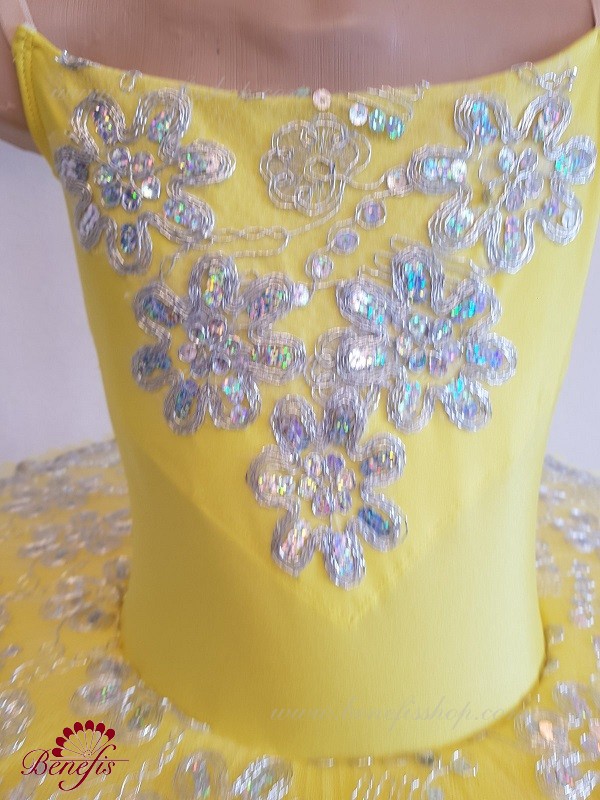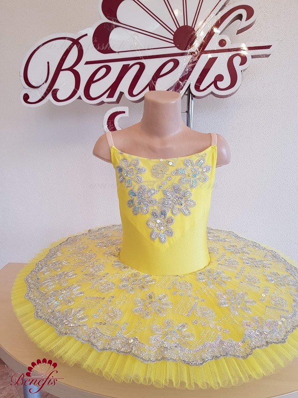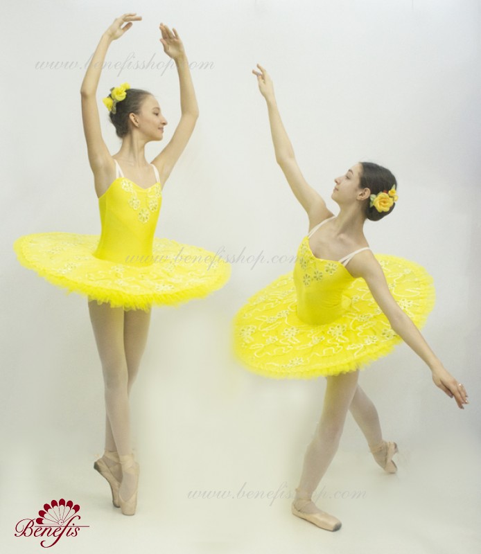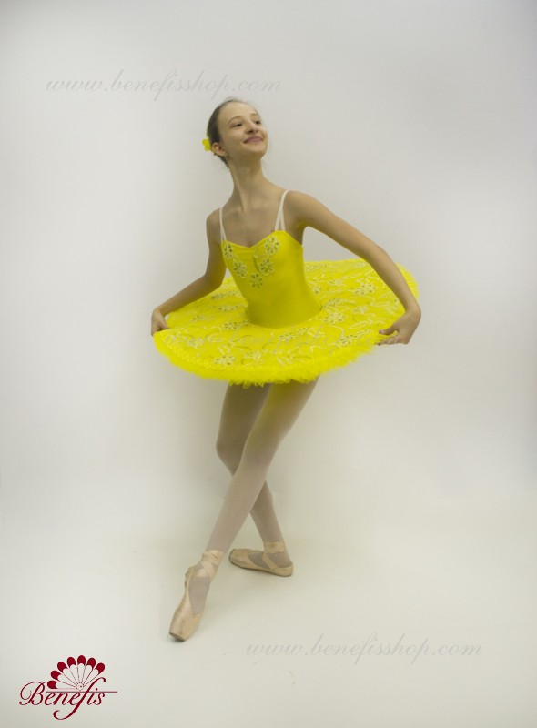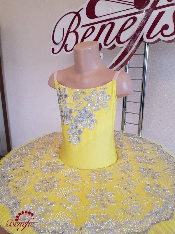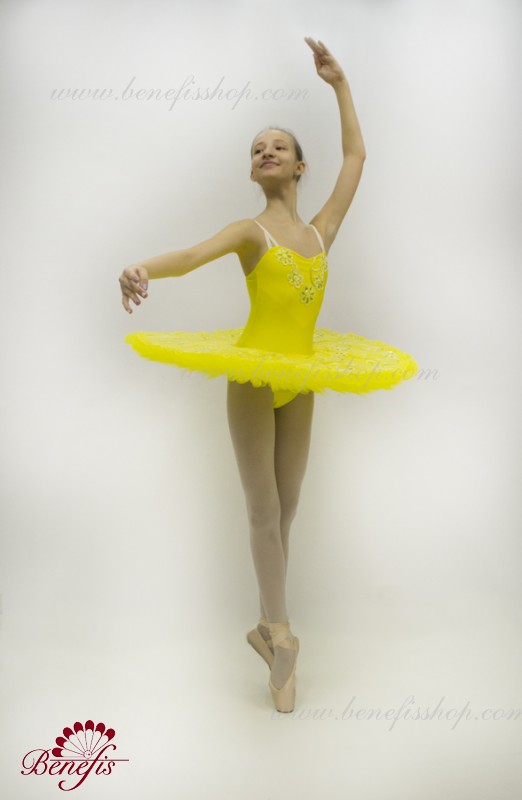 It is a professional stage costume. It is made on the basis of skirt attached to camisole leotard. The tutu is made of 6 layers of net. The top layer of the tutu is folded as top layer of any professional skirt. The length of the layers is different (at the customer’s will) and decreases towards the lower layer of the skirt. There is flounce in the middle of the layers, where the hoop is inserted. Camisole leotard is made of supplex. The bodice, according to the customer’s desire, may be made of velvet and decorated slightly with crystals for an additional payment.