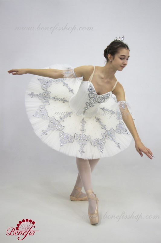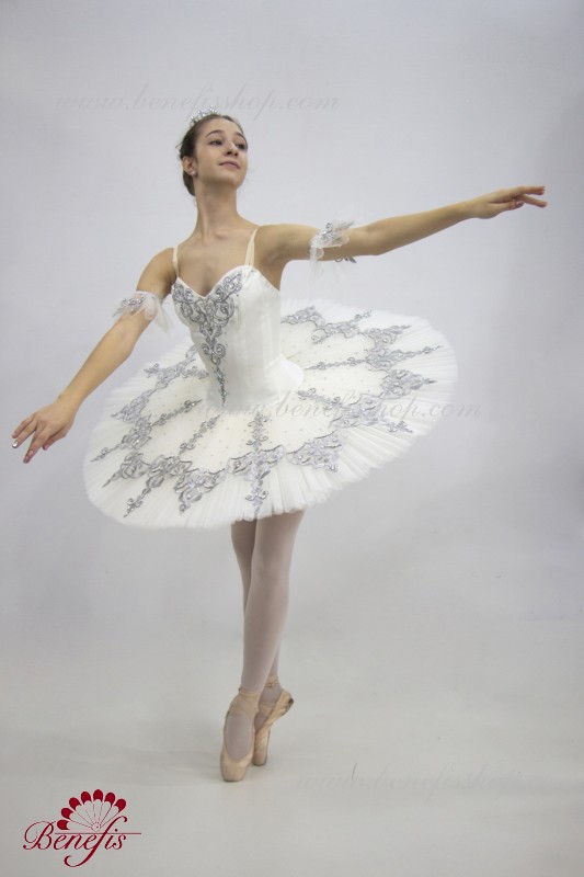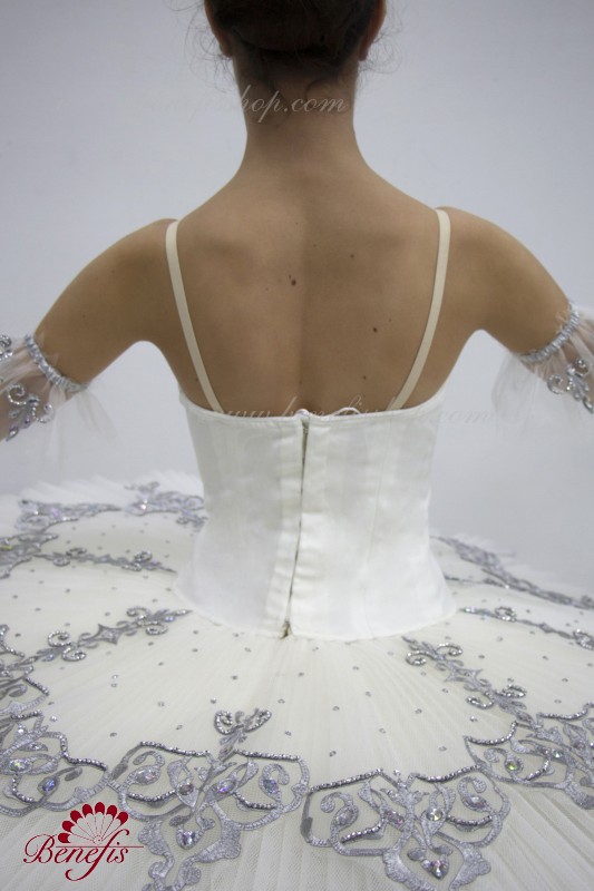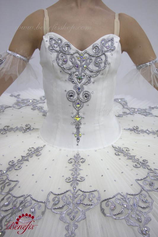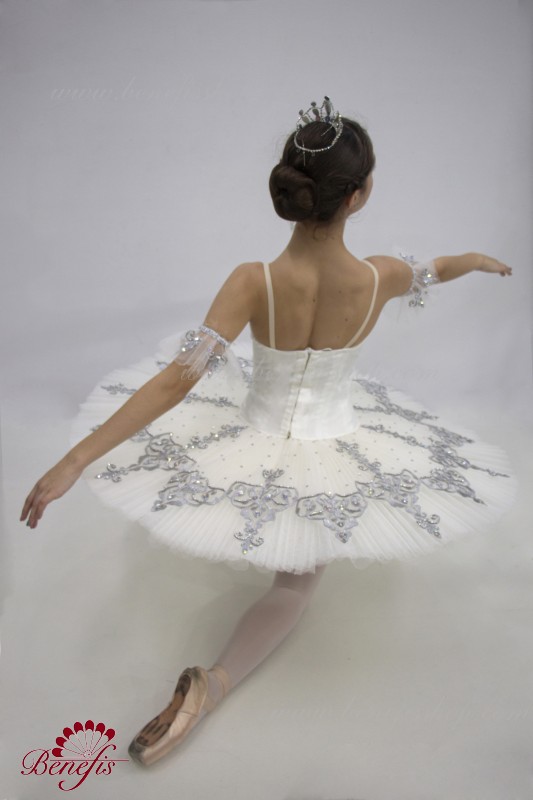 Details: costume + arm ruffles. This professional, stage ballet costume is made on the basis of the T0009 bodice and T0001b basic. Embroidered appliques decorated with rhinestones, stones, sequins are used as a decoration. The costume can be made in any color at the customer's choice. Only professional designers, seamstresses and decorators work on the product.