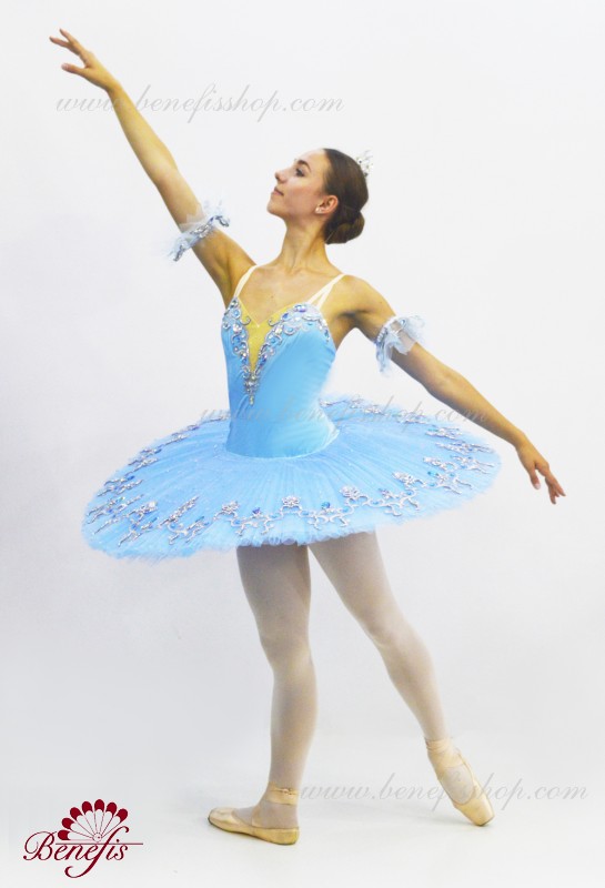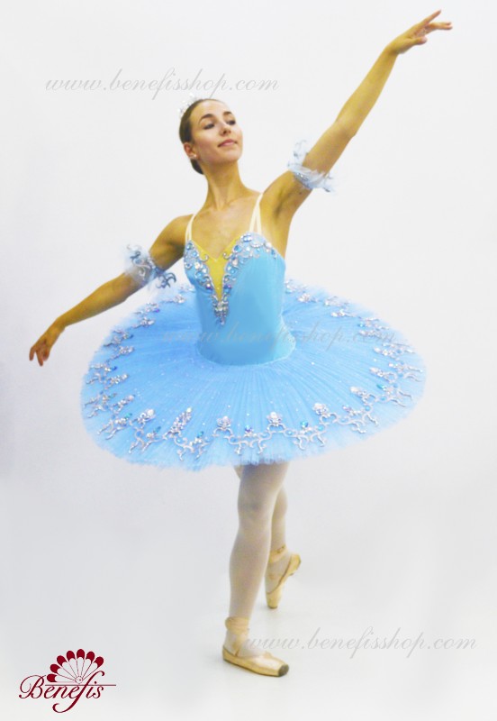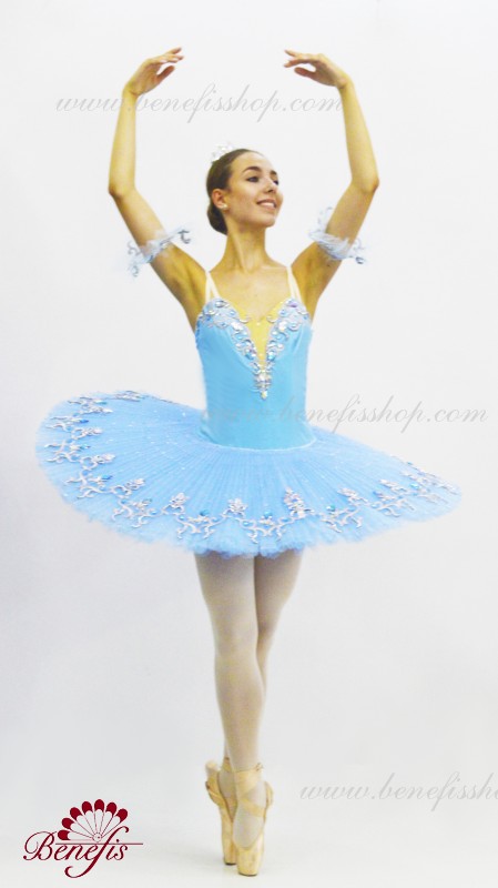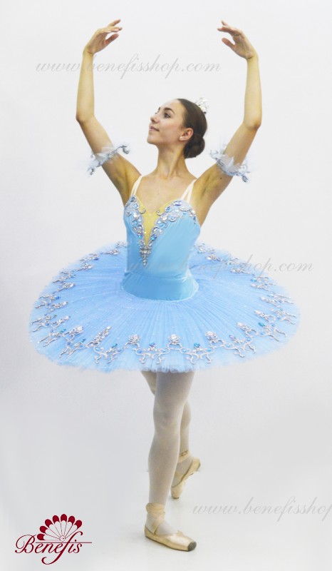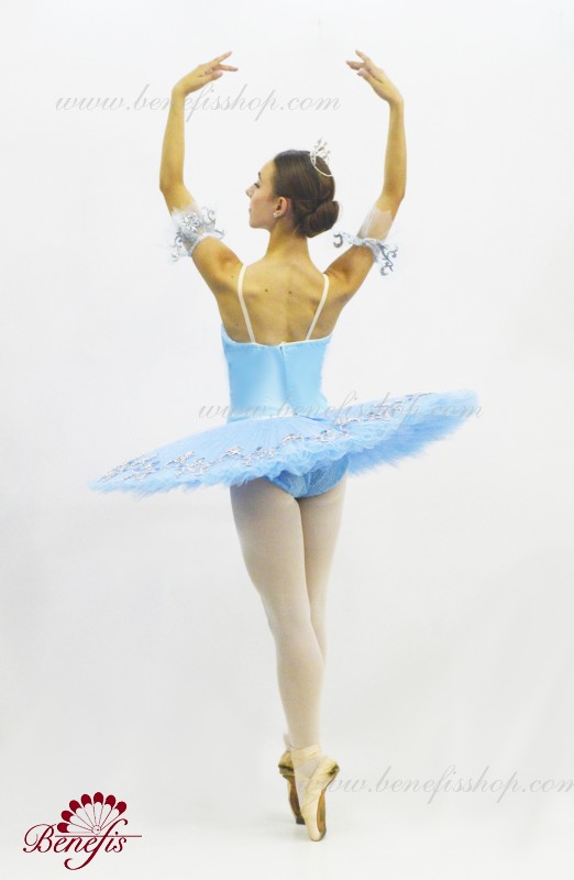 Details: costume and arm ruffles. This is a professional stage, ballet costume. The bodice is based on the basic model T0009 with a flesh toe in front. The basic is based on the basic model T0001B. Appliques, rhinestones, stones are used as decoration.