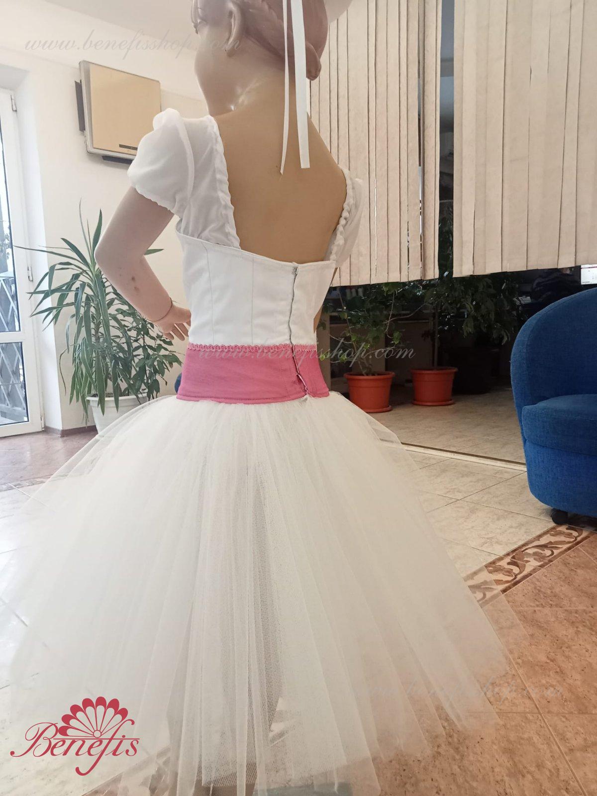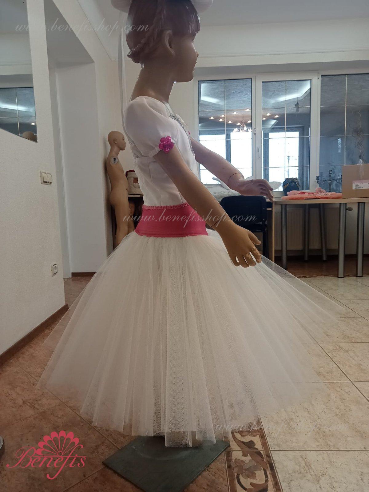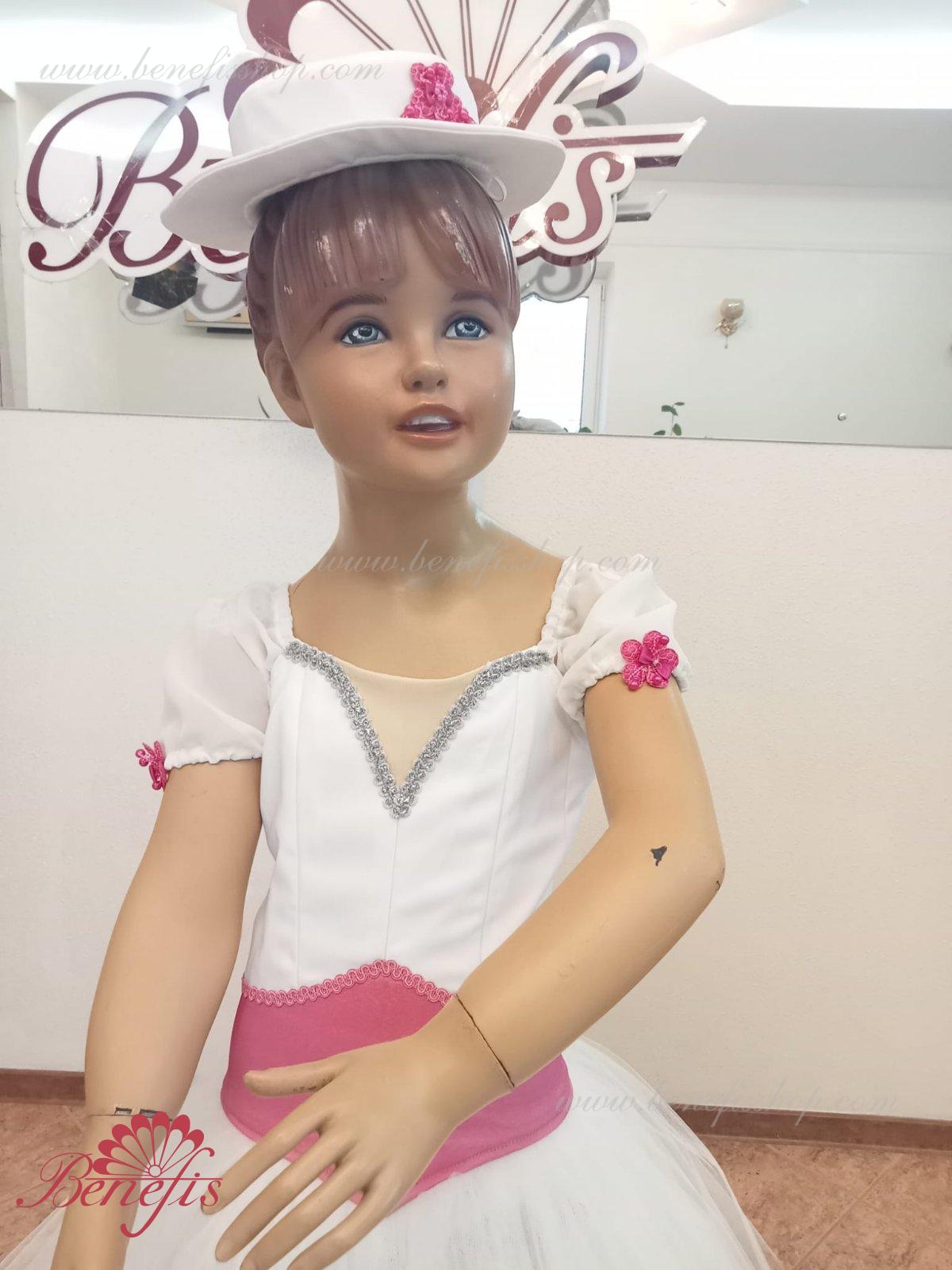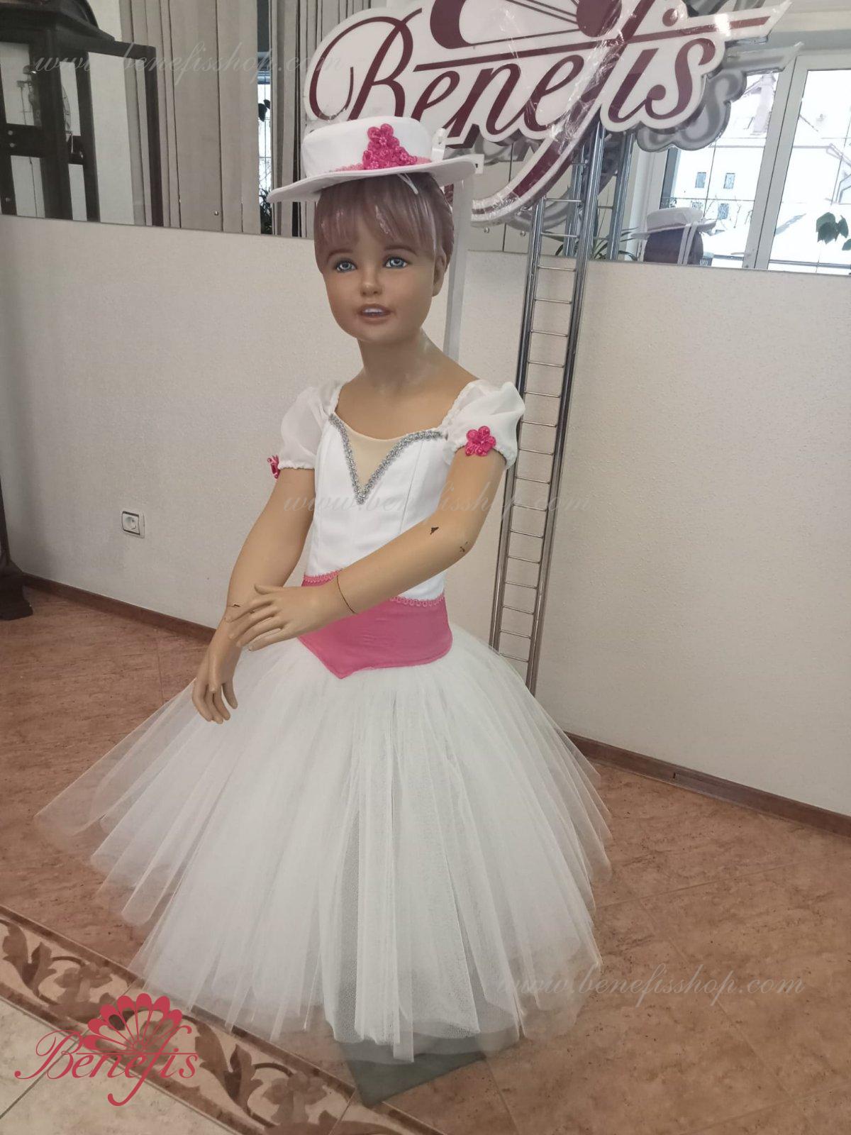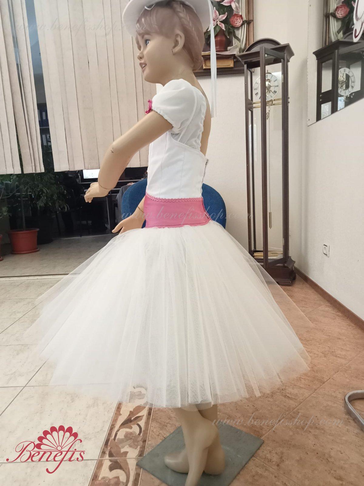 Details: suit, hat. The bodice with blouse, belt and toe, the hat is made of satin. Tulle skirt.