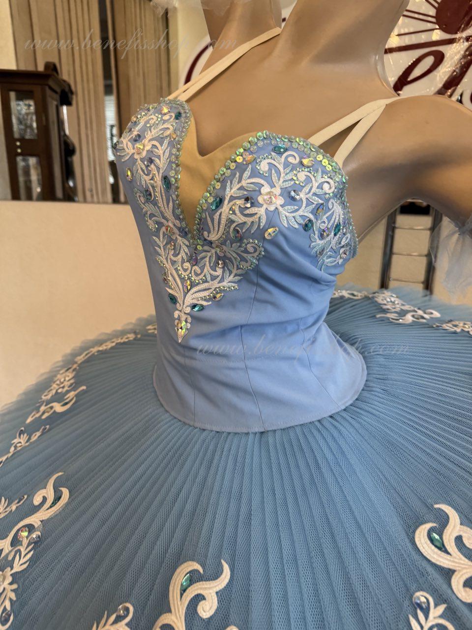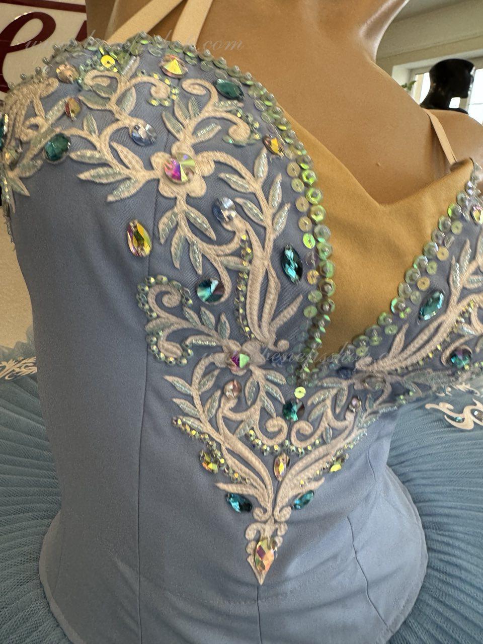 This professional stage costume is made on the basis of a professional base pack #T0001B (see the section "Base packs"). The bodice, with elastic straps and a body insert on the chest, is made of dense semi-elastic fabric.