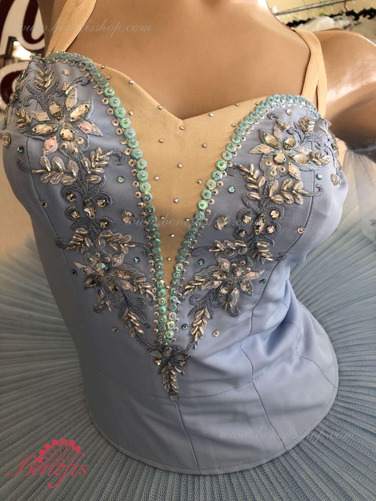 The stage costume is made on the basis of T0009 bodice and T00013 basic, with delicate arm-ruffles. Used as decoration: appliques, sequins, rhinestones.