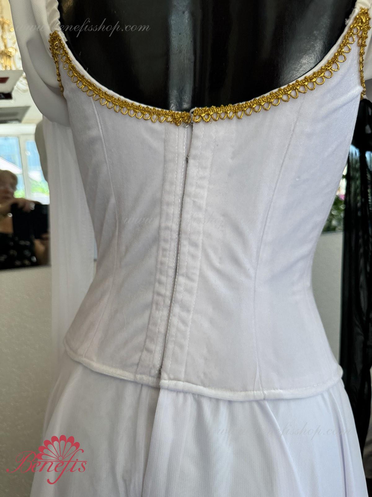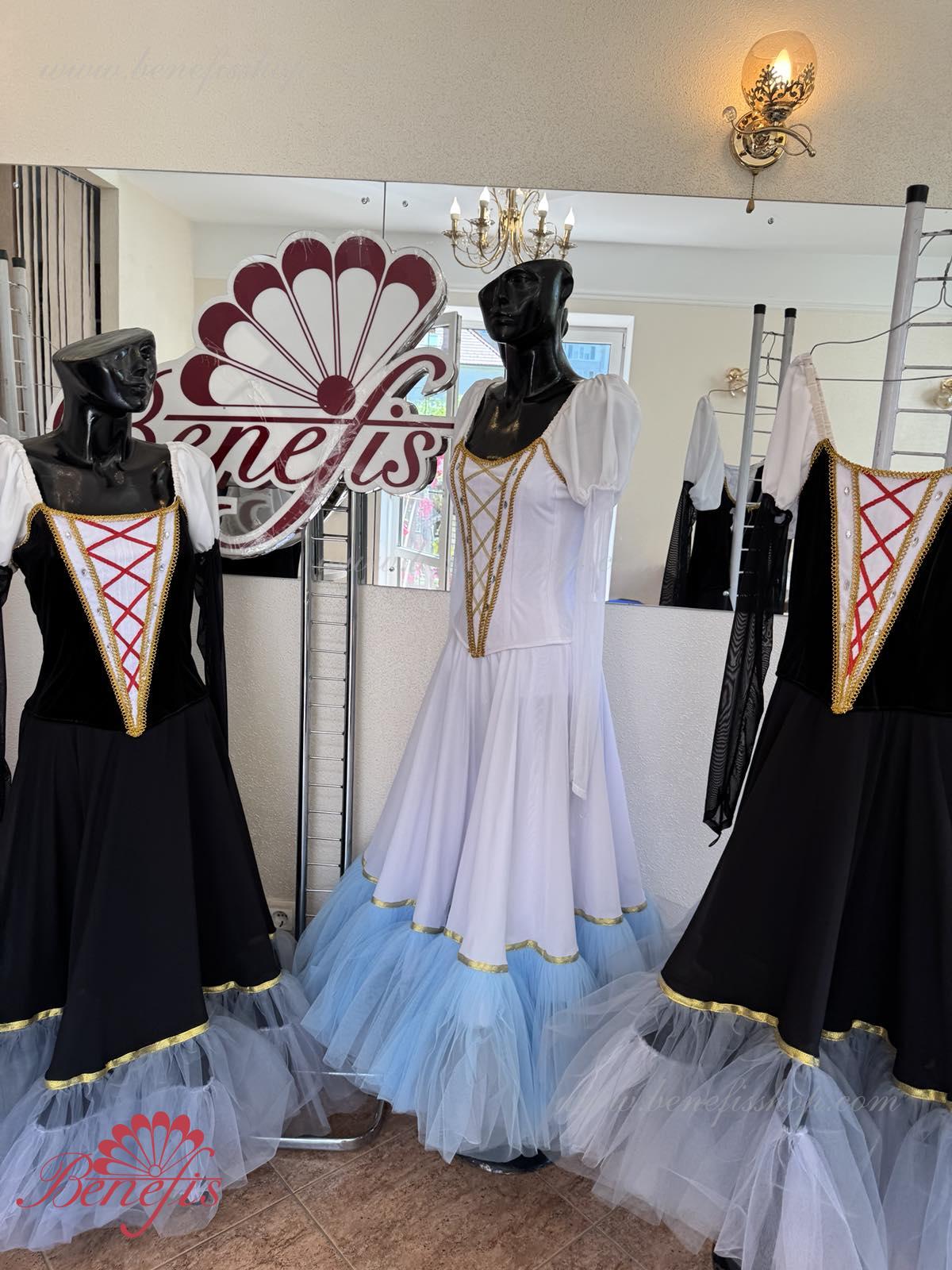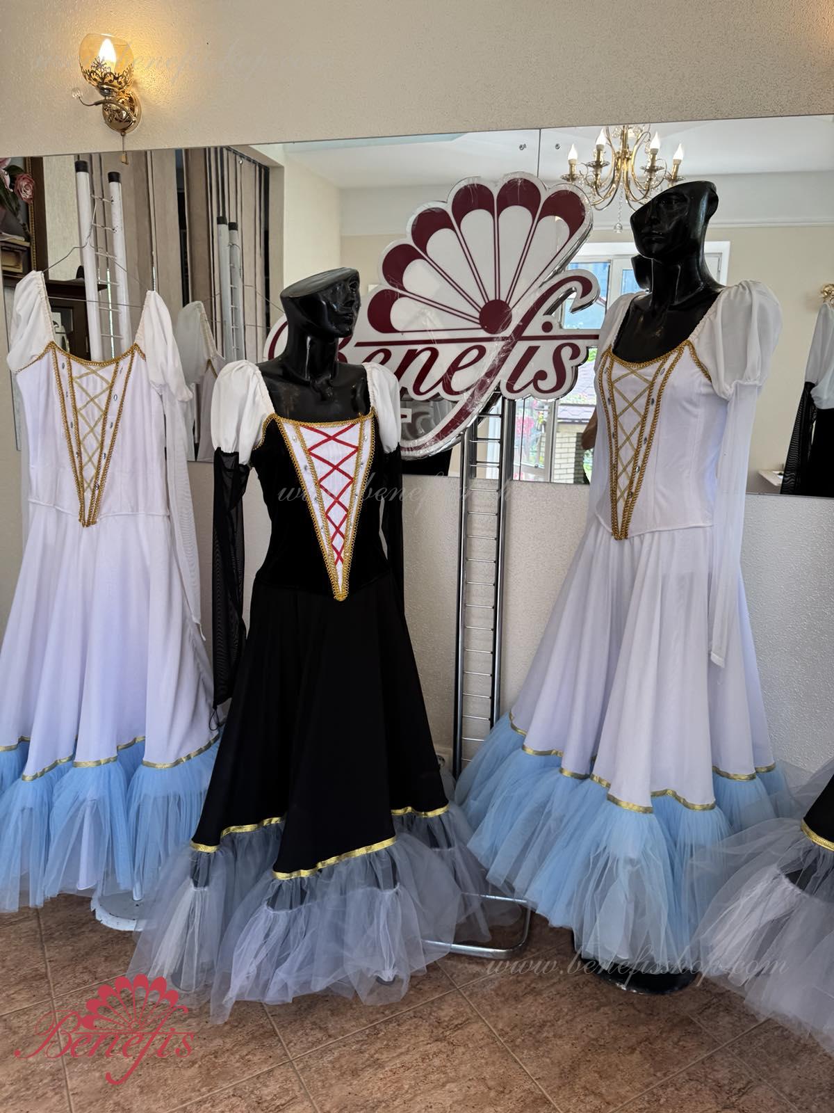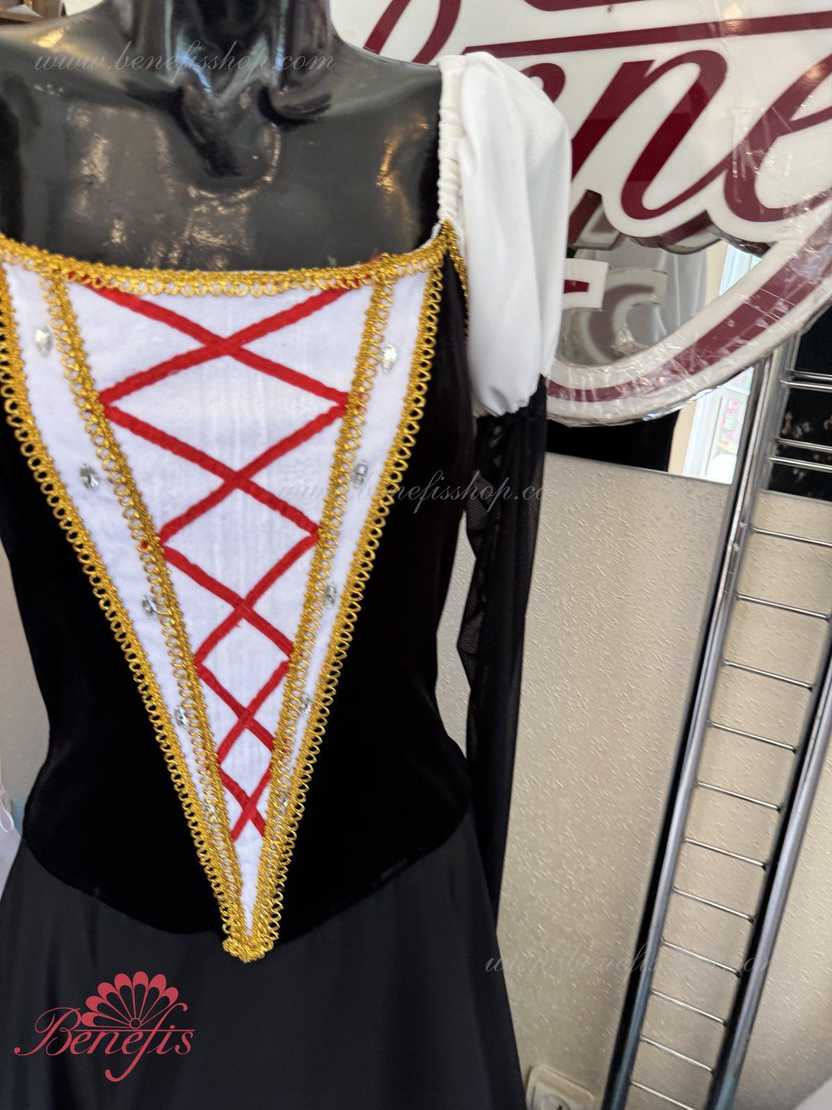 Details: costume. The bodice is made of velvet with an ear, a cape and sleeves. 2 Skirts are made of ankle-length chiffon. Decor: gold braid, rhinestones. All these delicate décor elements are selected in accordance with the costume’s tint and impart a magnificent look to the costume. For a better safety of this costume and transportation facility, You can purchase a tutu bag. See \"Accessories\" section, code S0001.