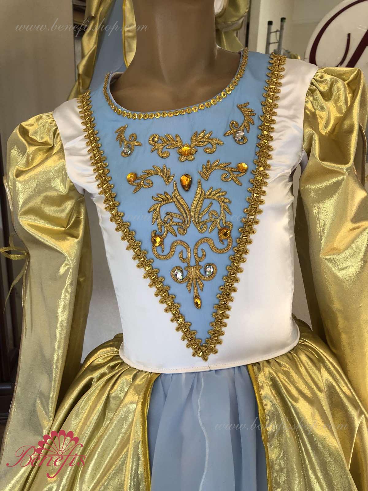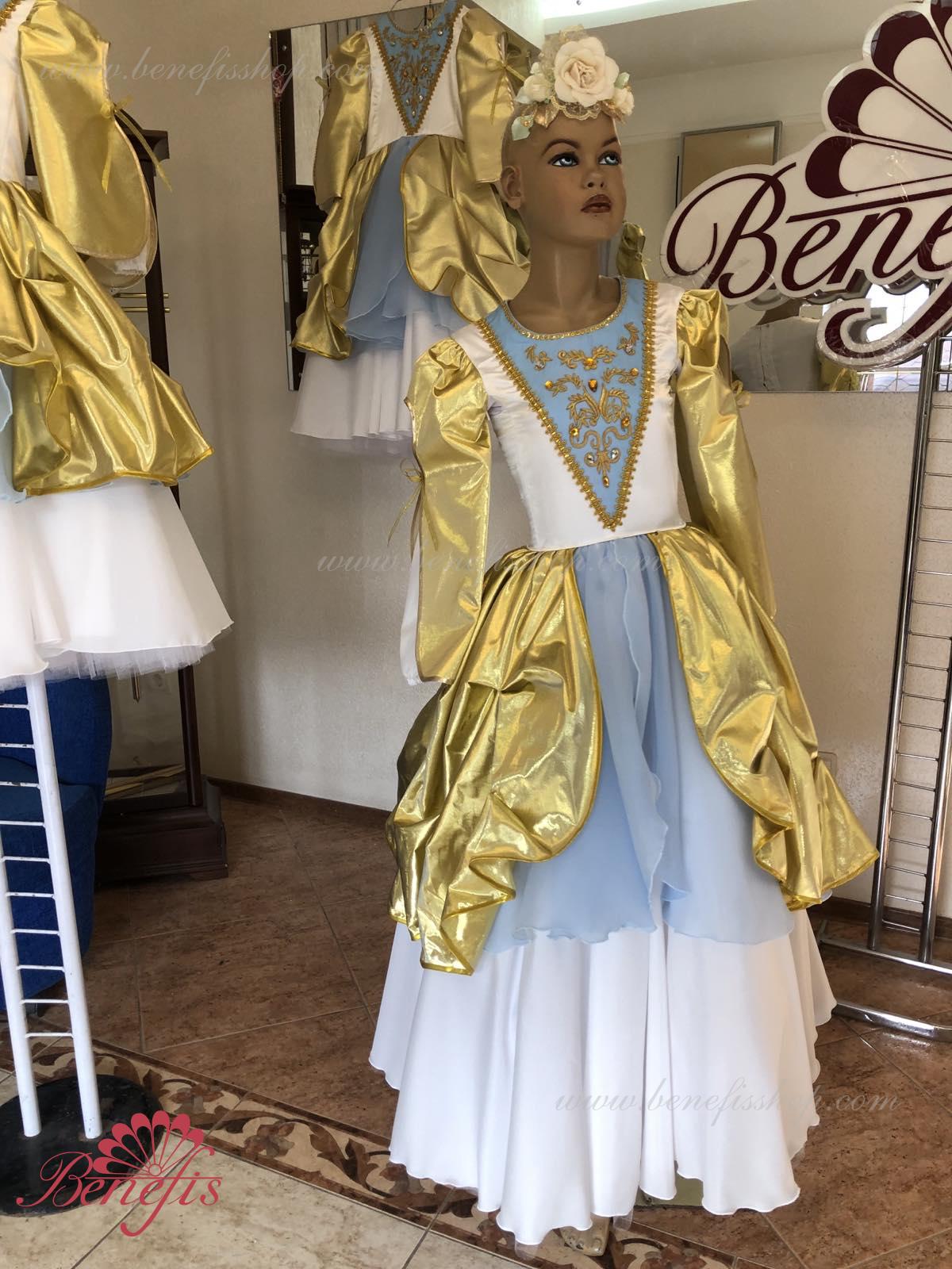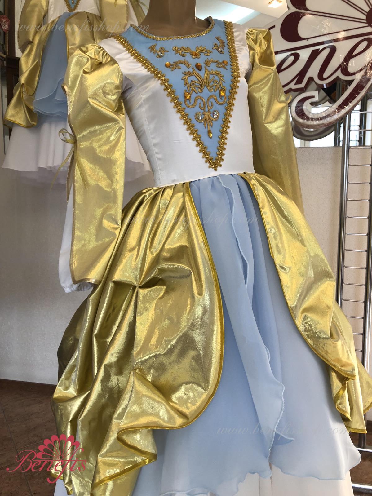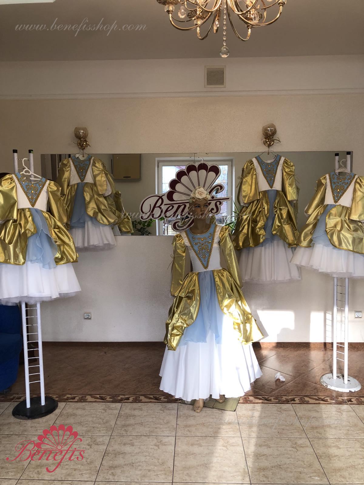 Acest costum profesional de scena constă dintr-un corset și o fustă. Corsetul este confectionat din tesatura semi-stretch cu maneca dubla. Fusta este confectionata din doua straturi de tul, un strat de viscoza.