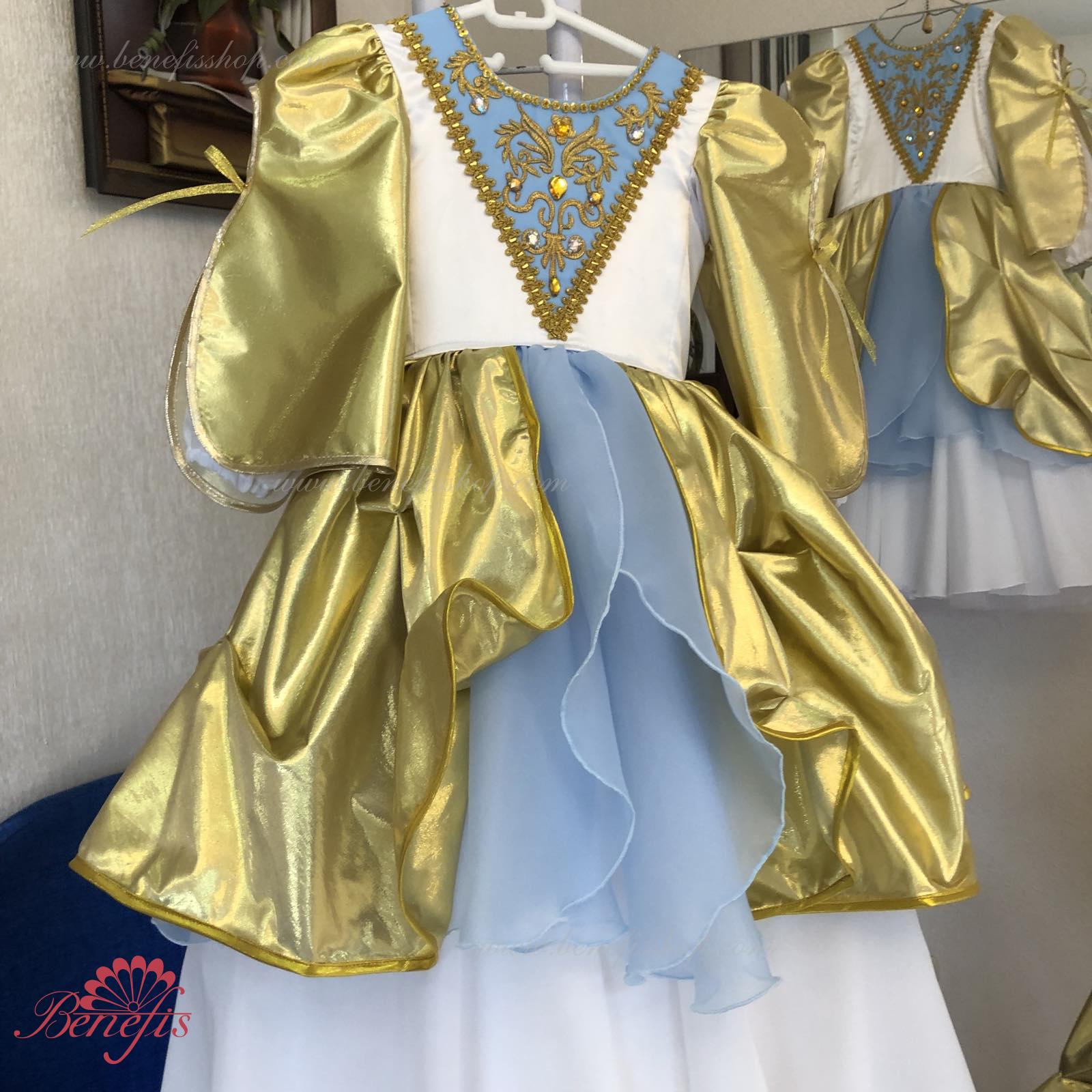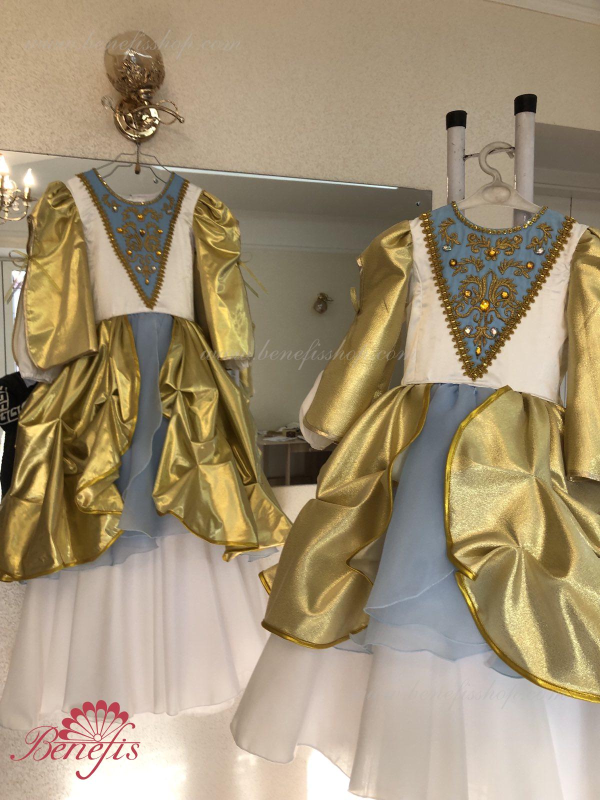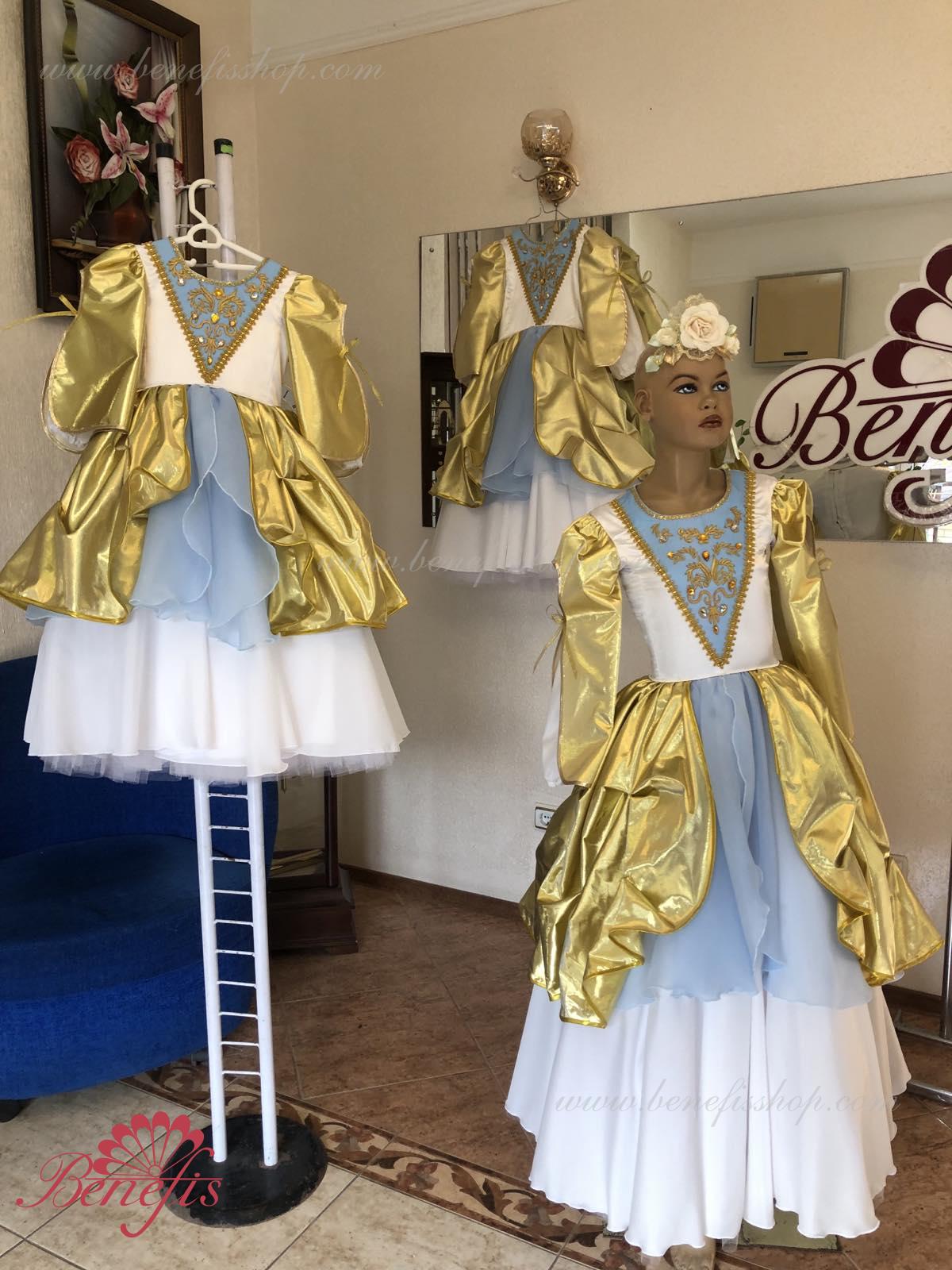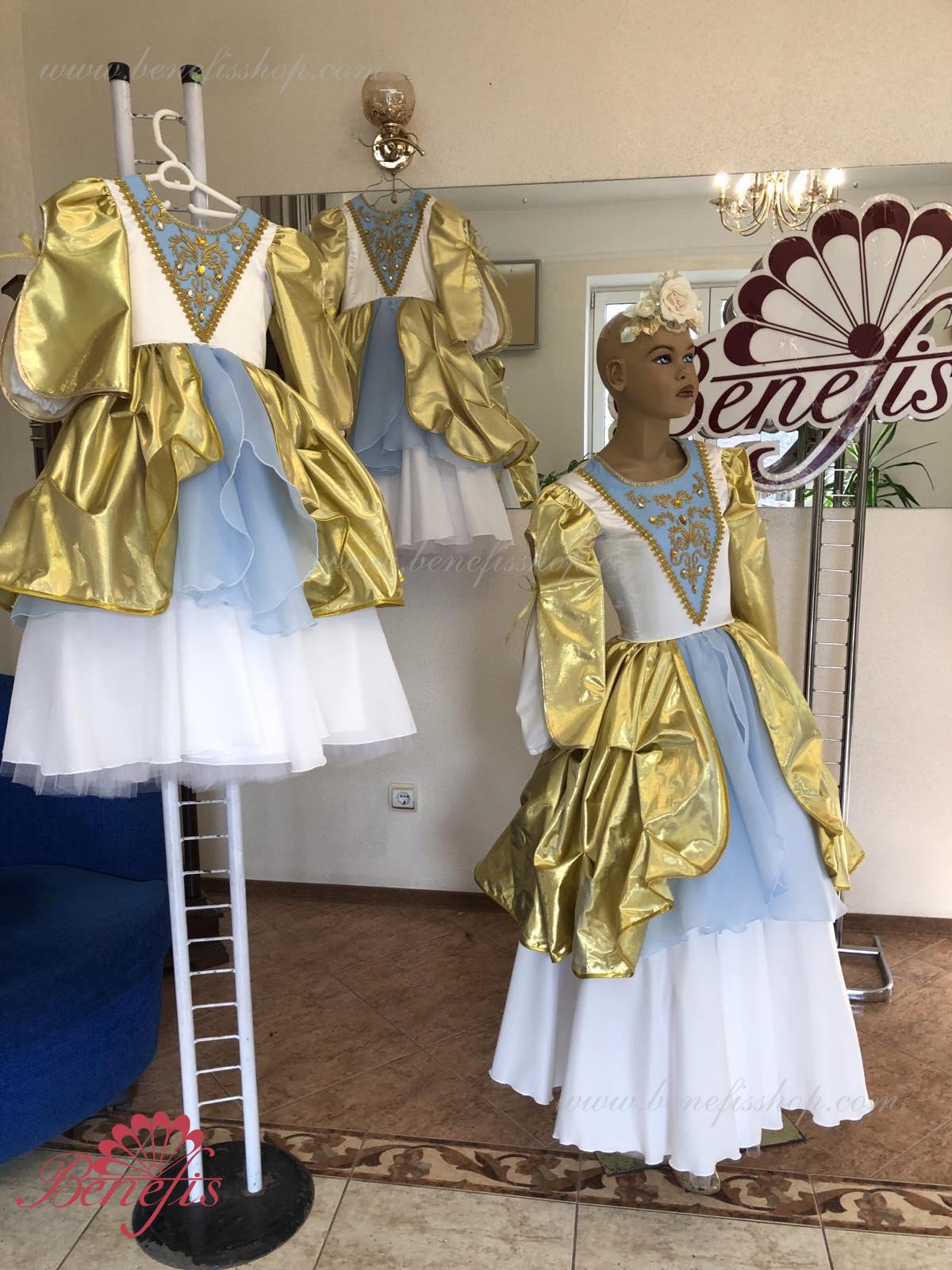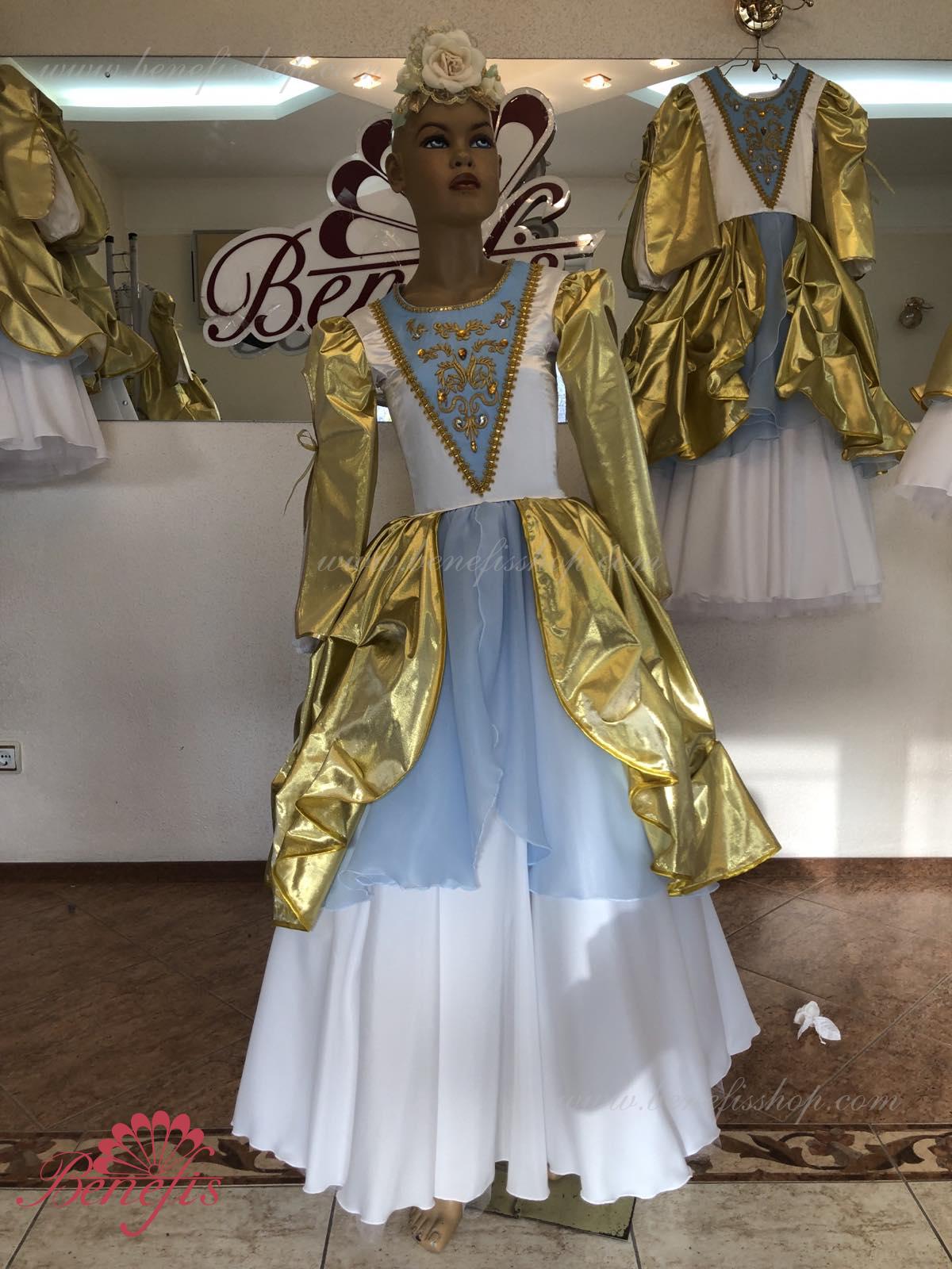 Acest costum profesional de scena constă dintr-un corset și o fustă. Corsetul este confectionat din tesatura semi-stretch cu maneca dubla. Fusta este confectionata din doua straturi de tul, un strat de viscoza.