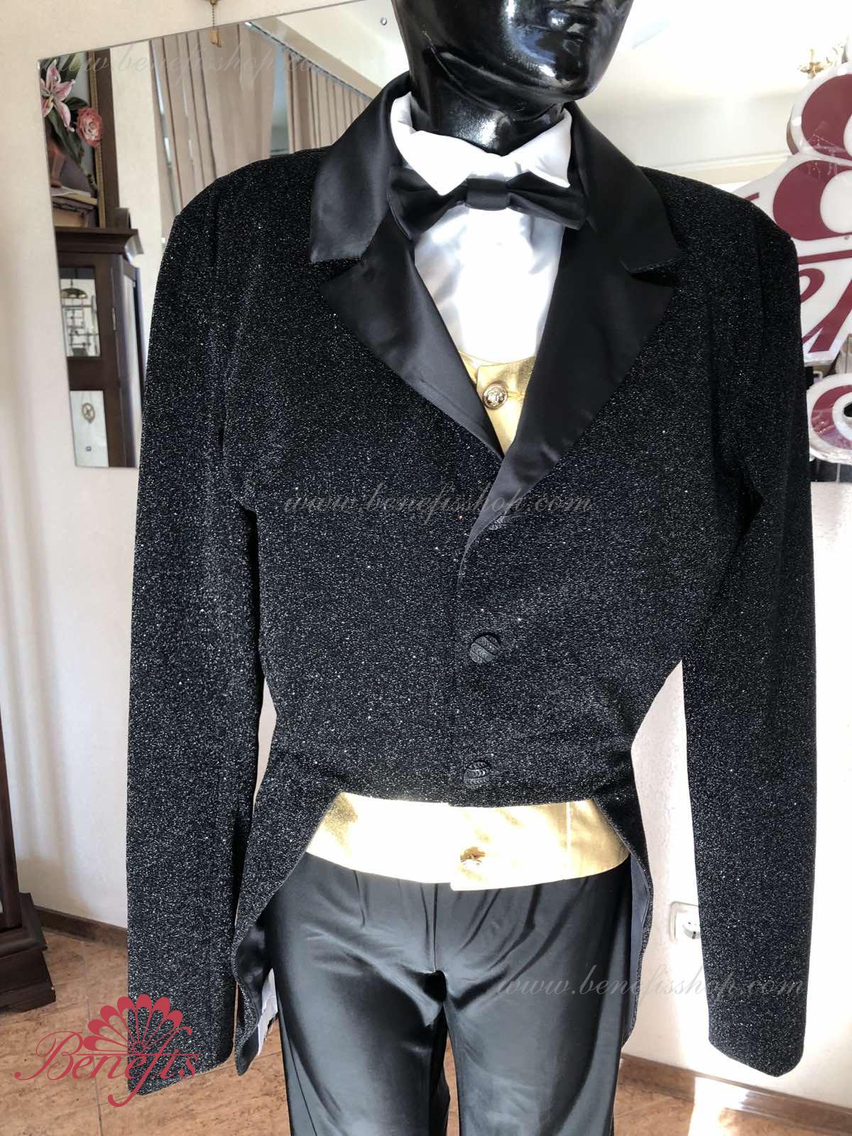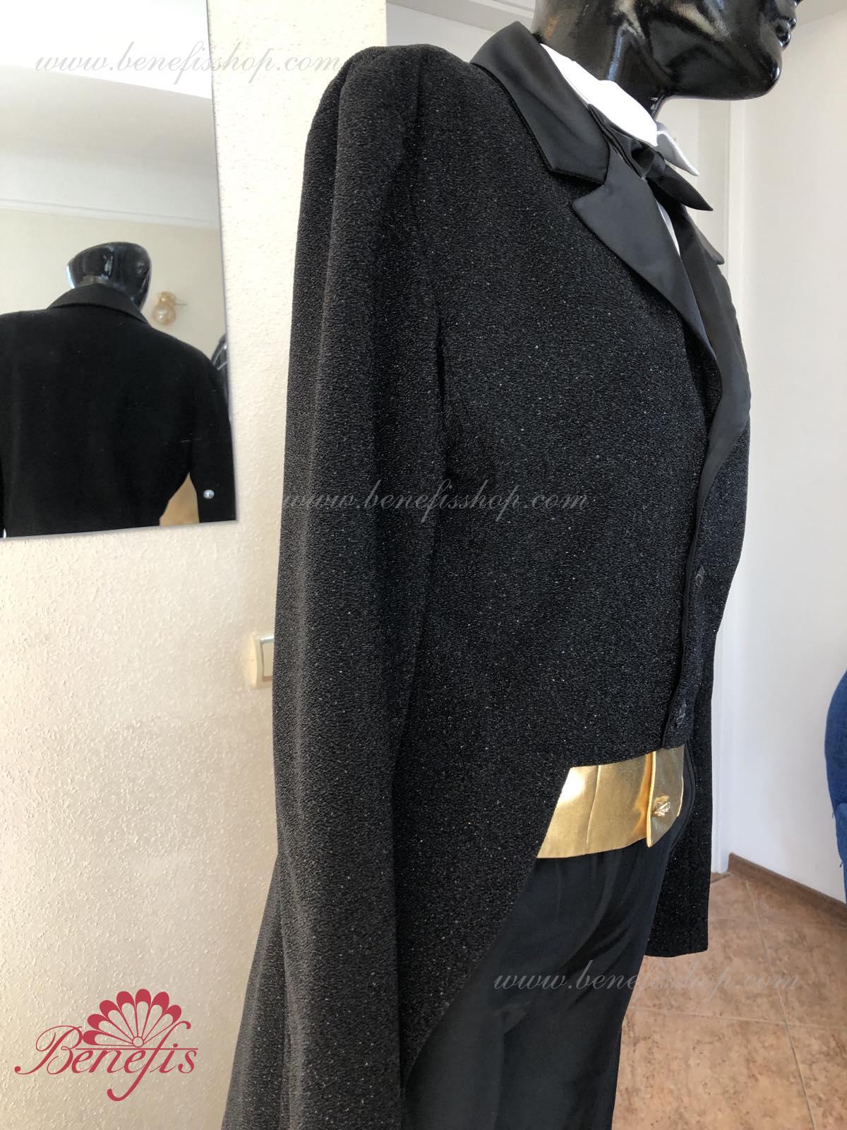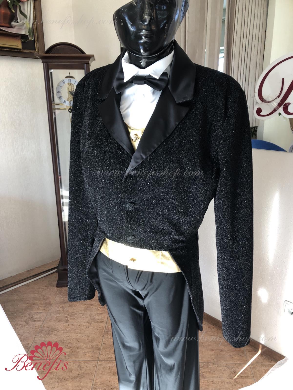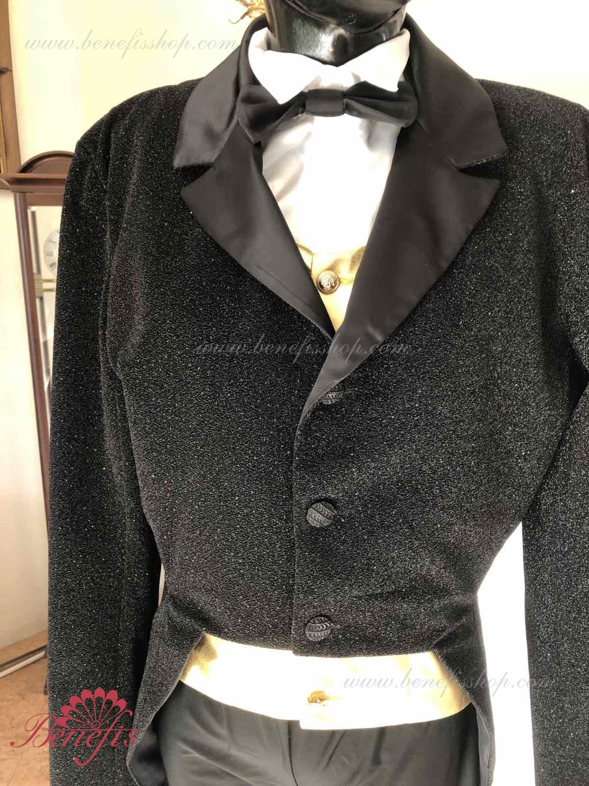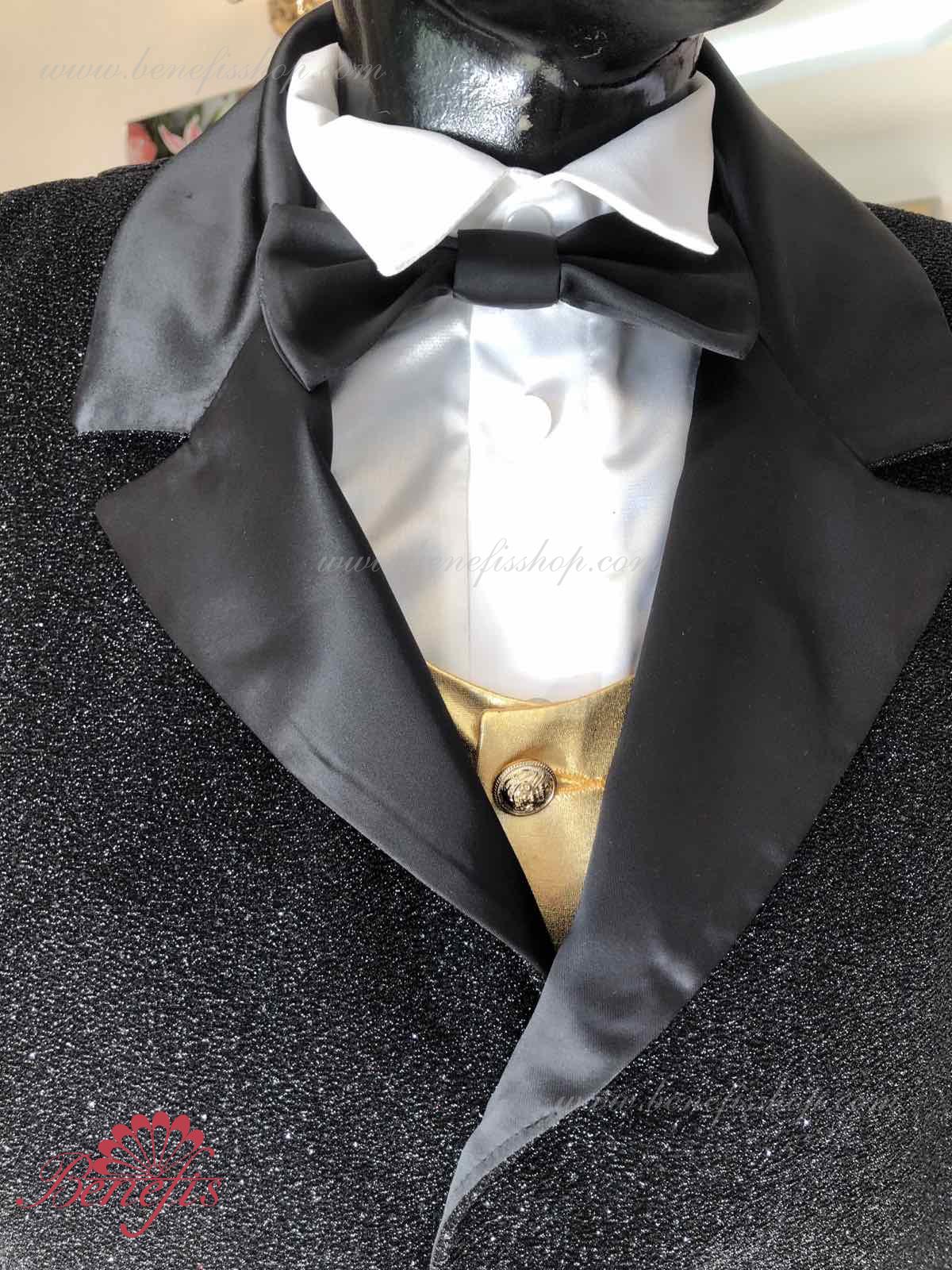 Details: Tuxedo. Tuxedo with shirt front and bow tie.