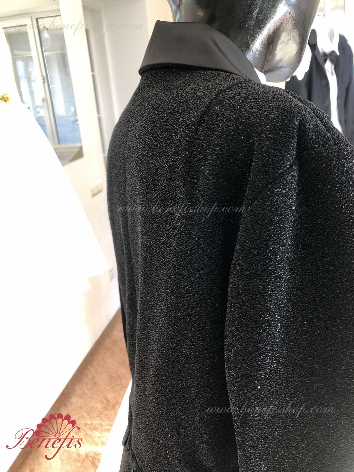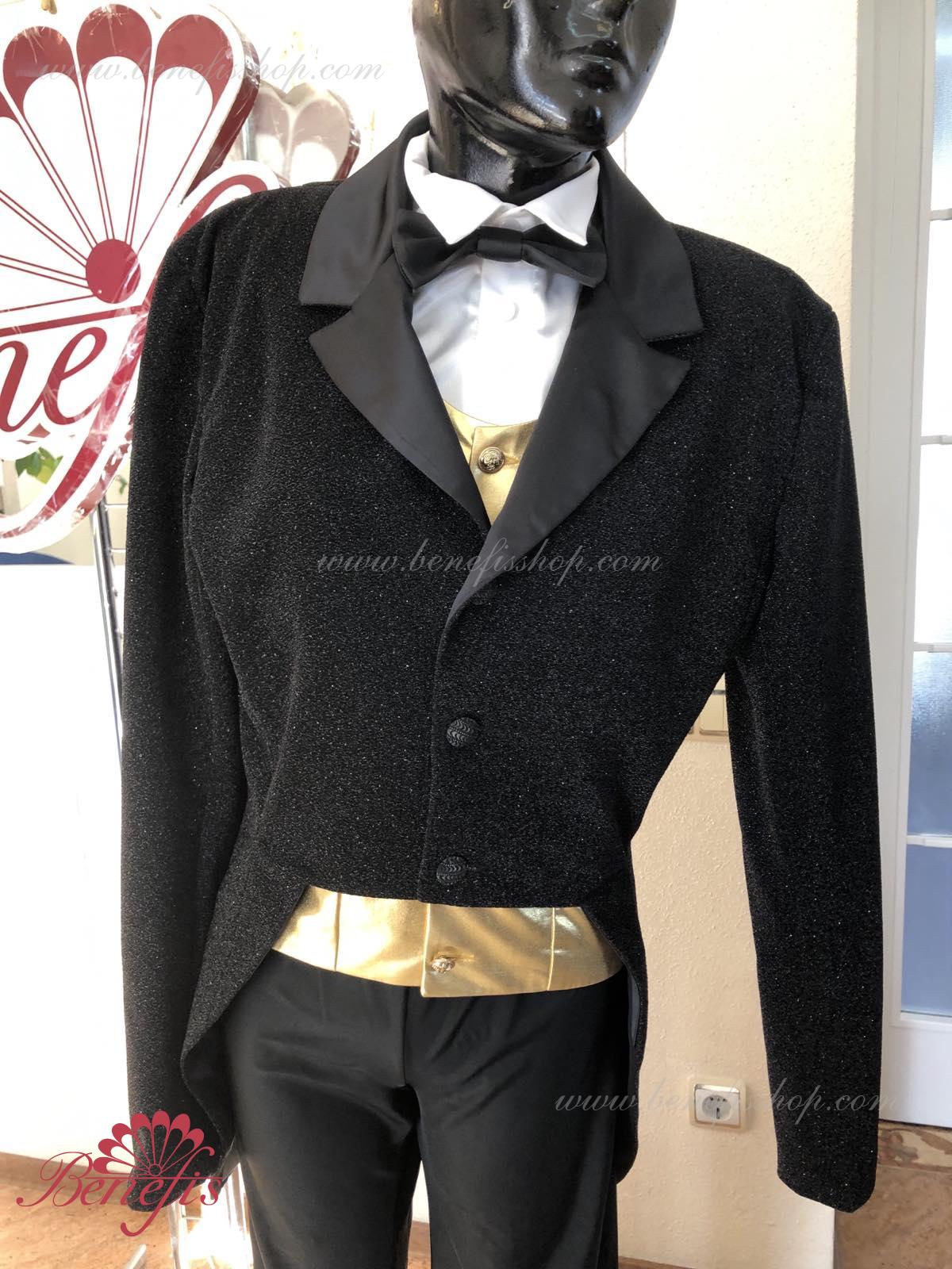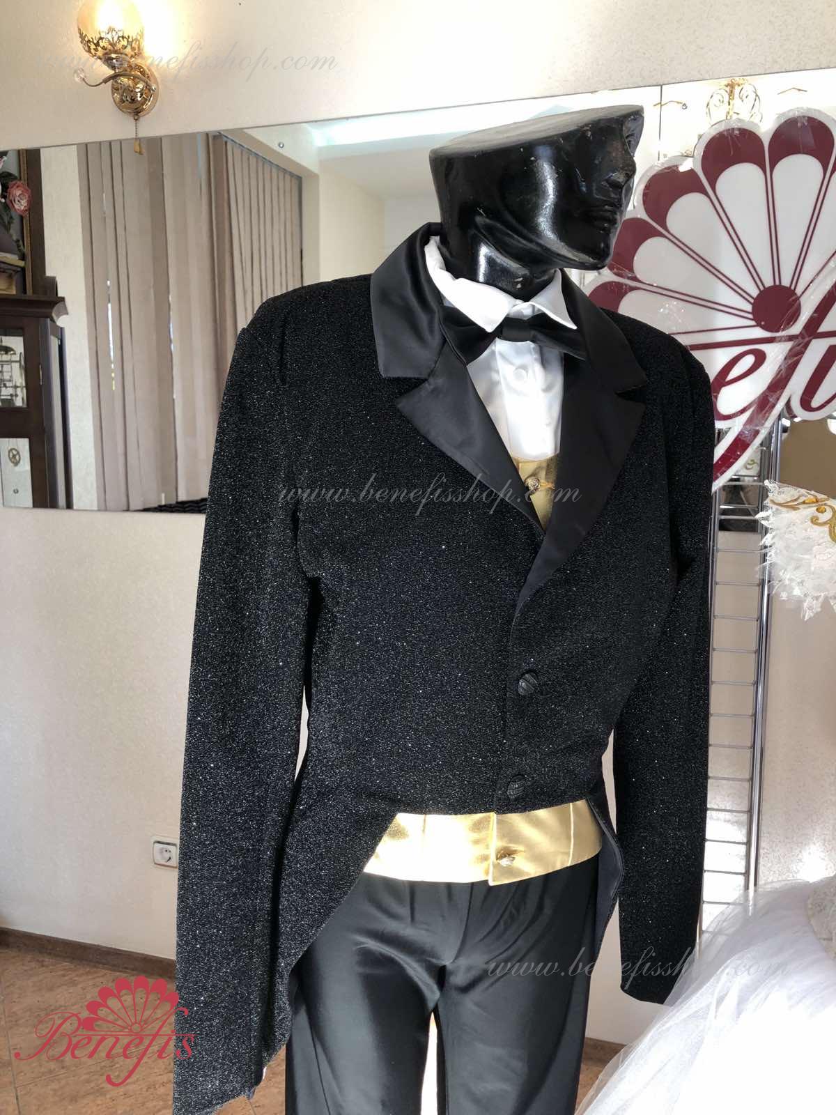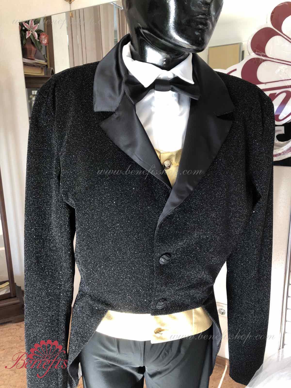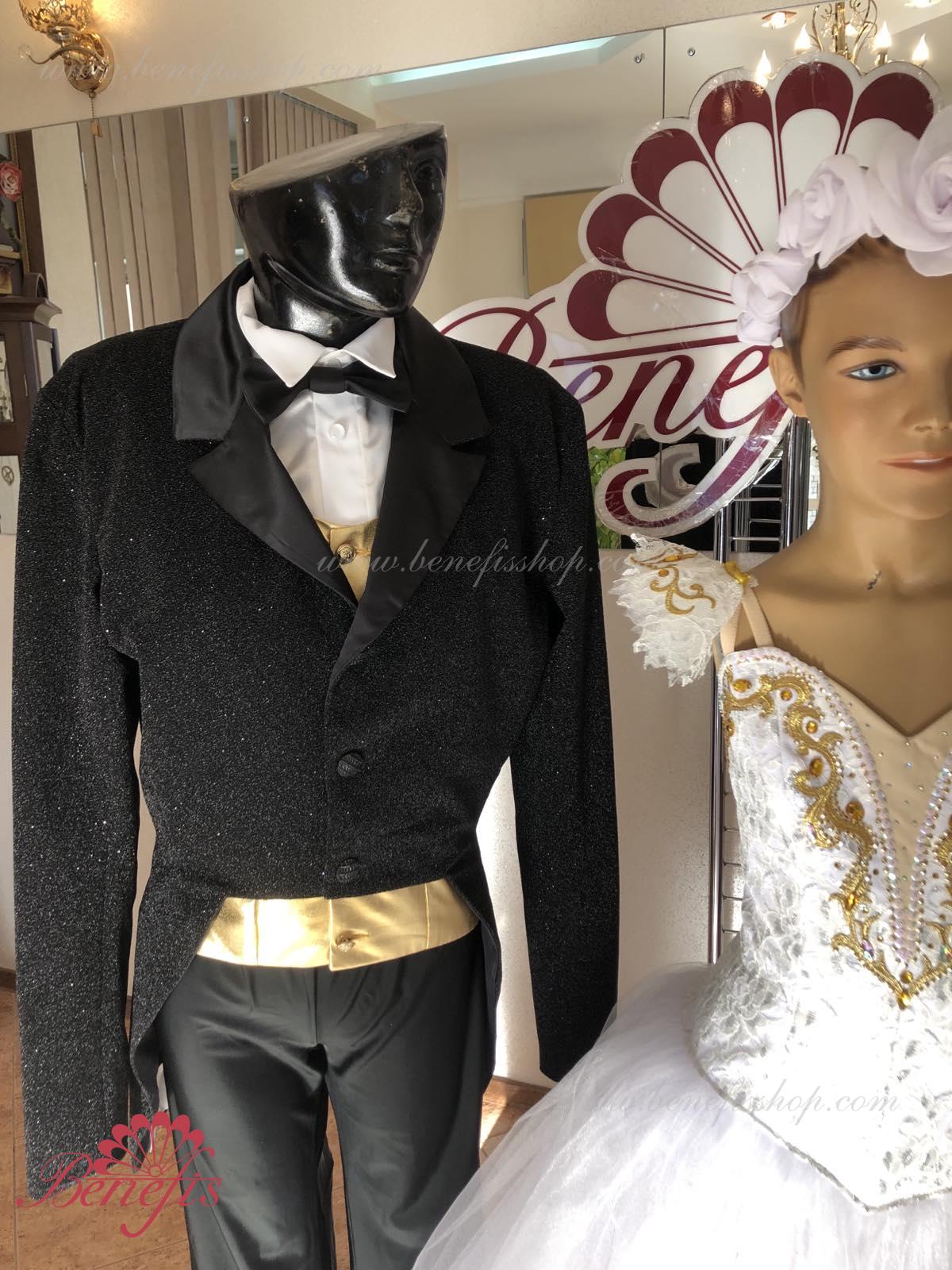Details: Tuxedo. Tuxedo with shirt front and bow tie.