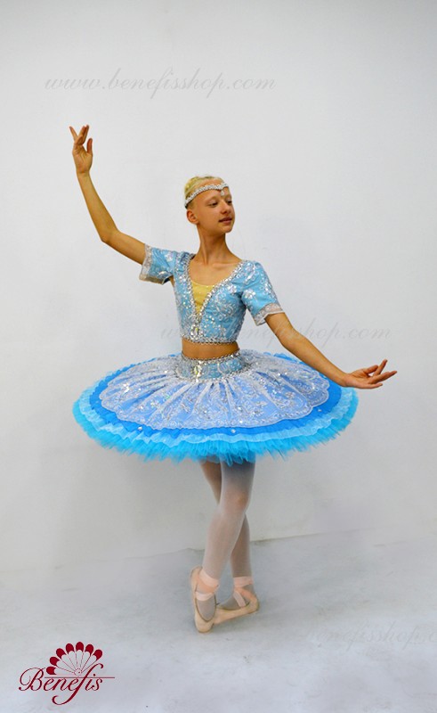 The multilayered lid on the skirt is made of fabrics of different texture. The costume looks particularly colorful and perfectly suits for the role of Odalisque in “Le Corsaire” and “La Bayadere” ballets.