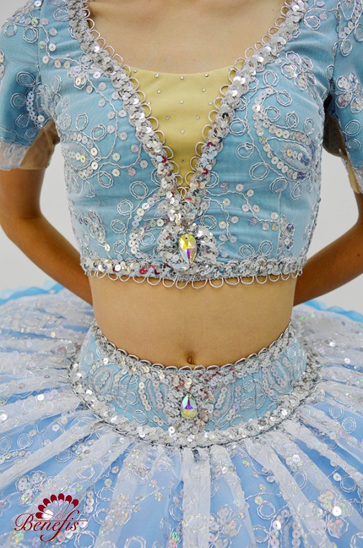 This exquisite oriental costume consists of a short bodice and a tutu which is to be worn on hips.