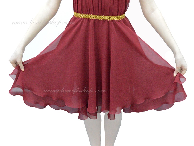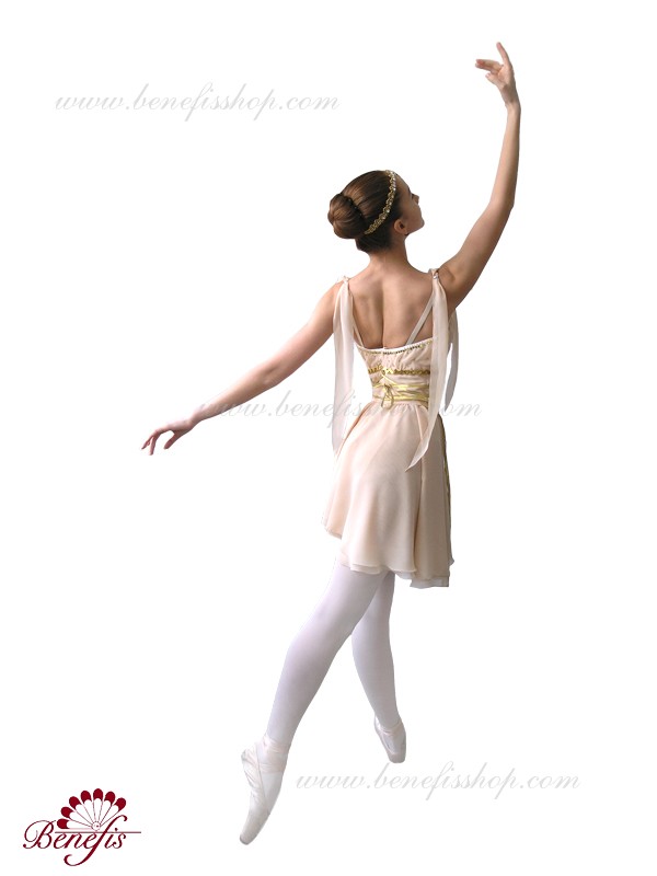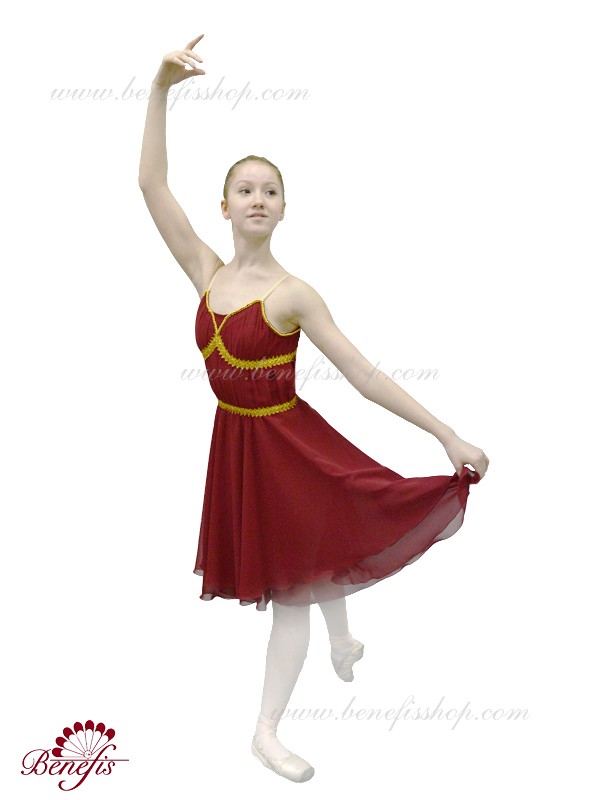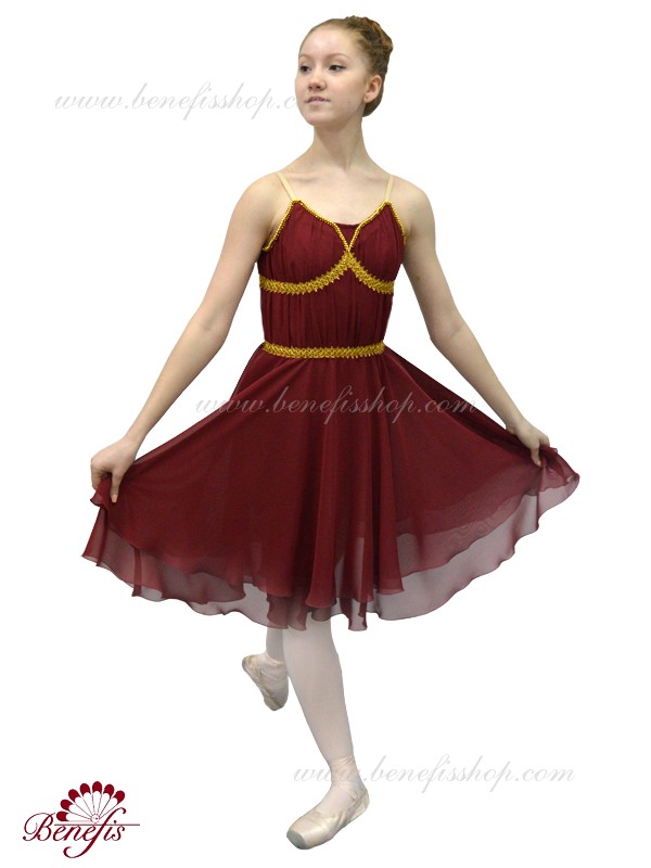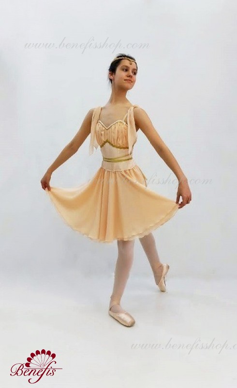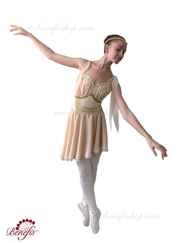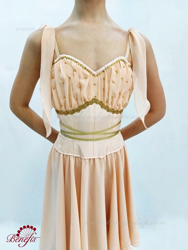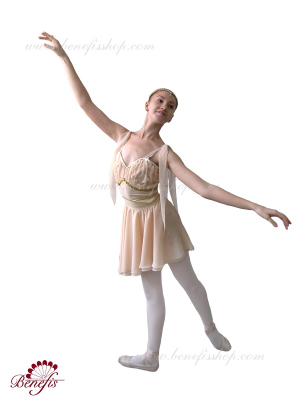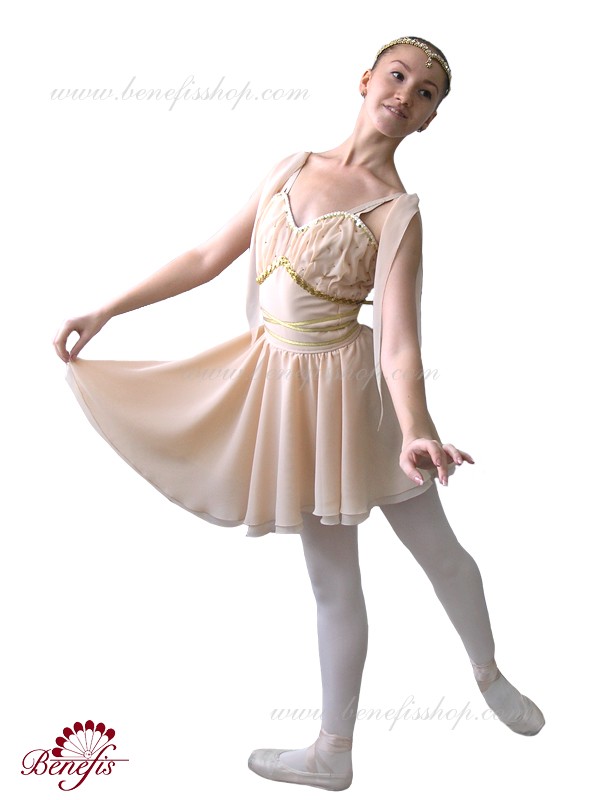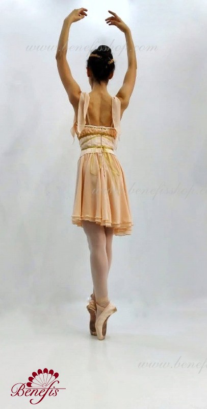 The bodice on flesh-colored straps is made of the semi-stretched dense fabric.