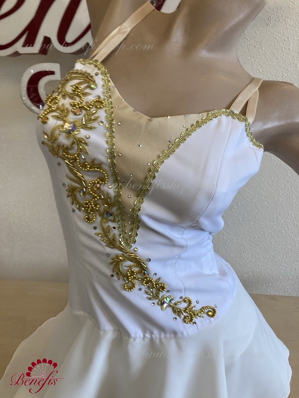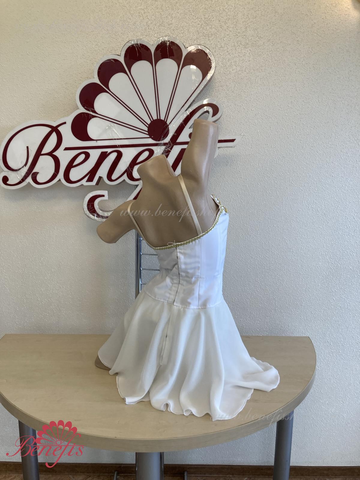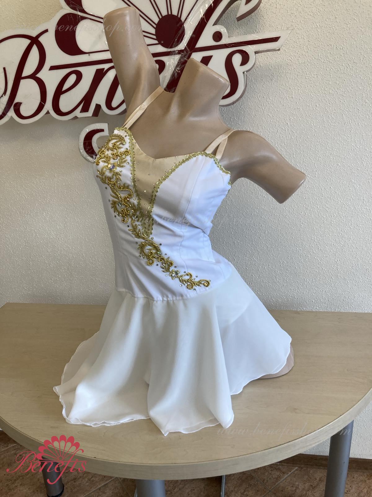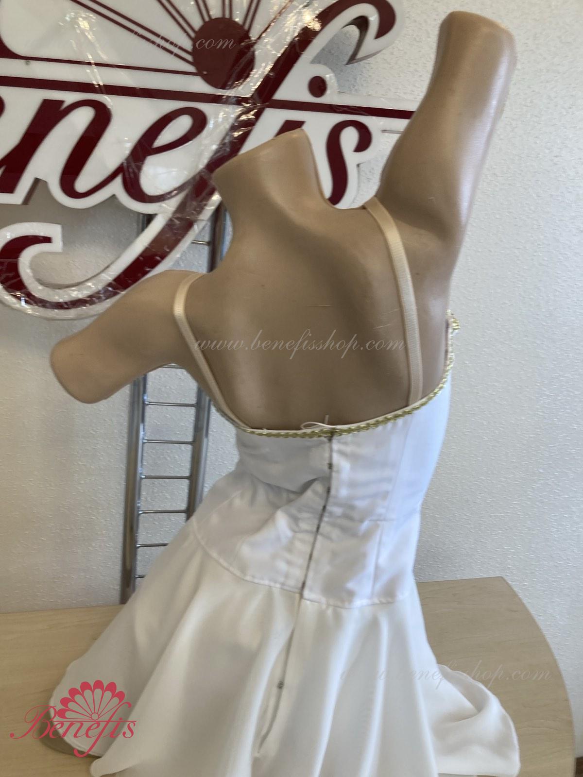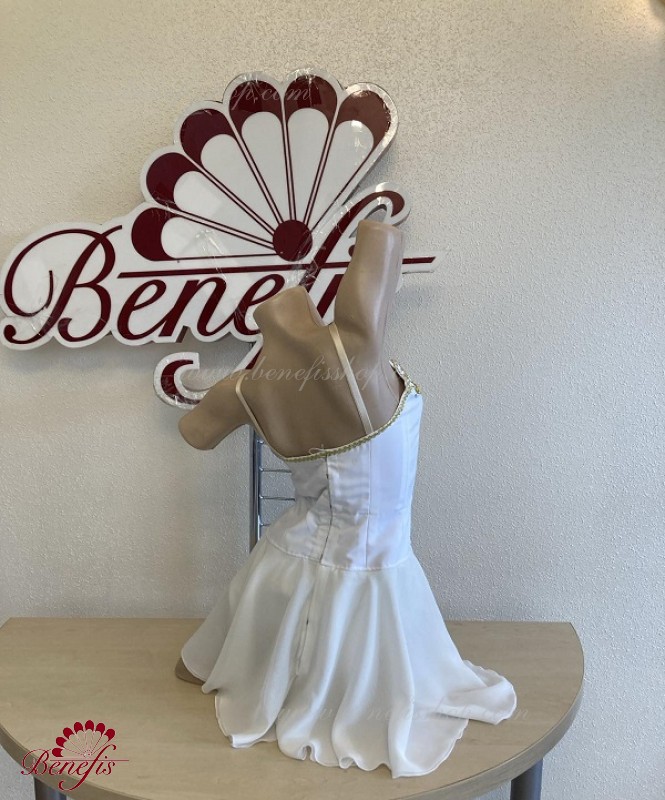 The bodice on flesh-colored straps is made of the semi-stretched dense fabric.